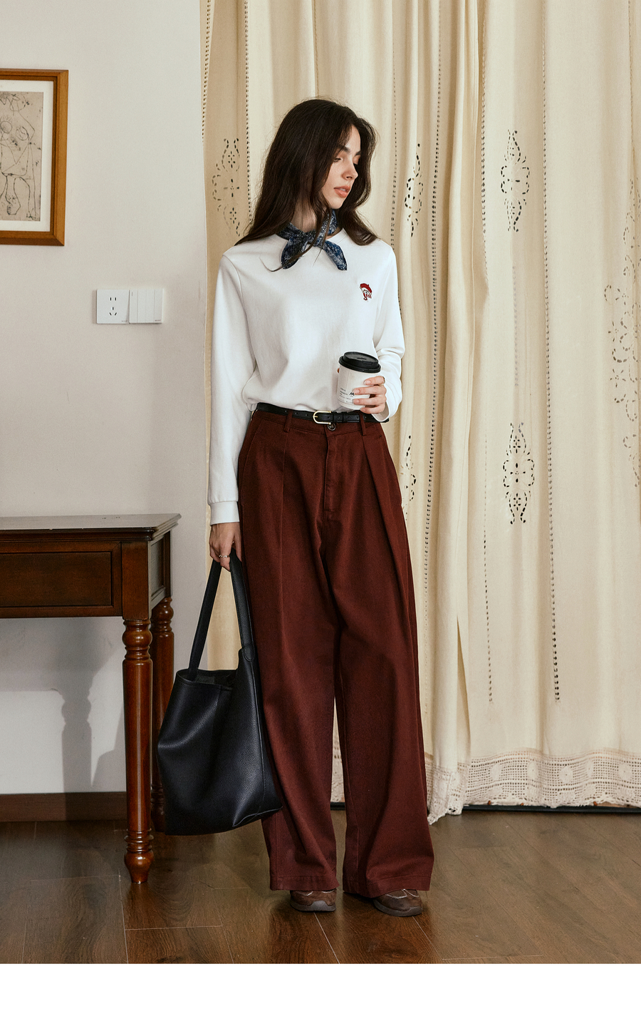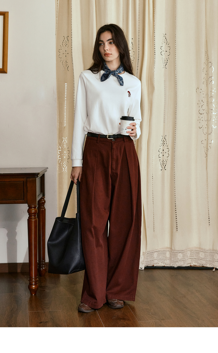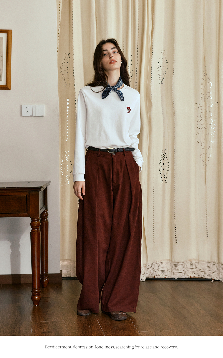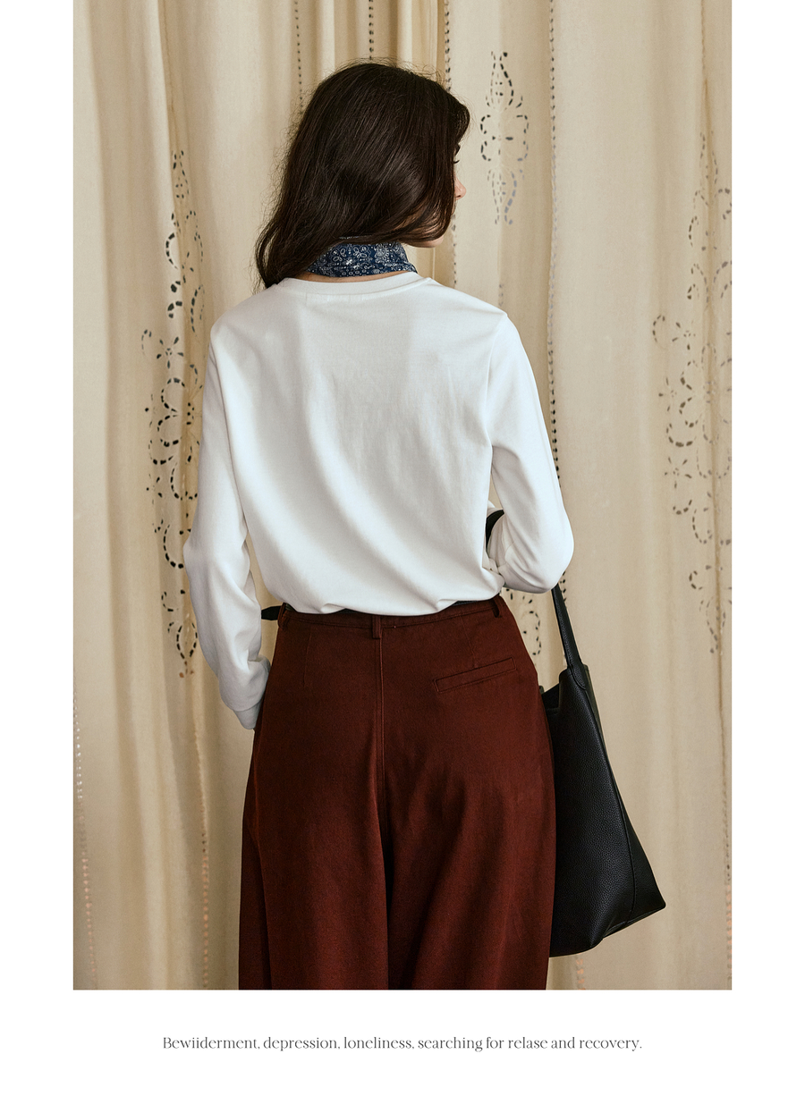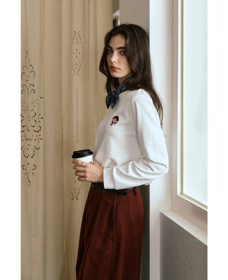 OLrain欧芮儿法式刺绣宽松长袖T恤女秋季2025新款休闲针织上衣