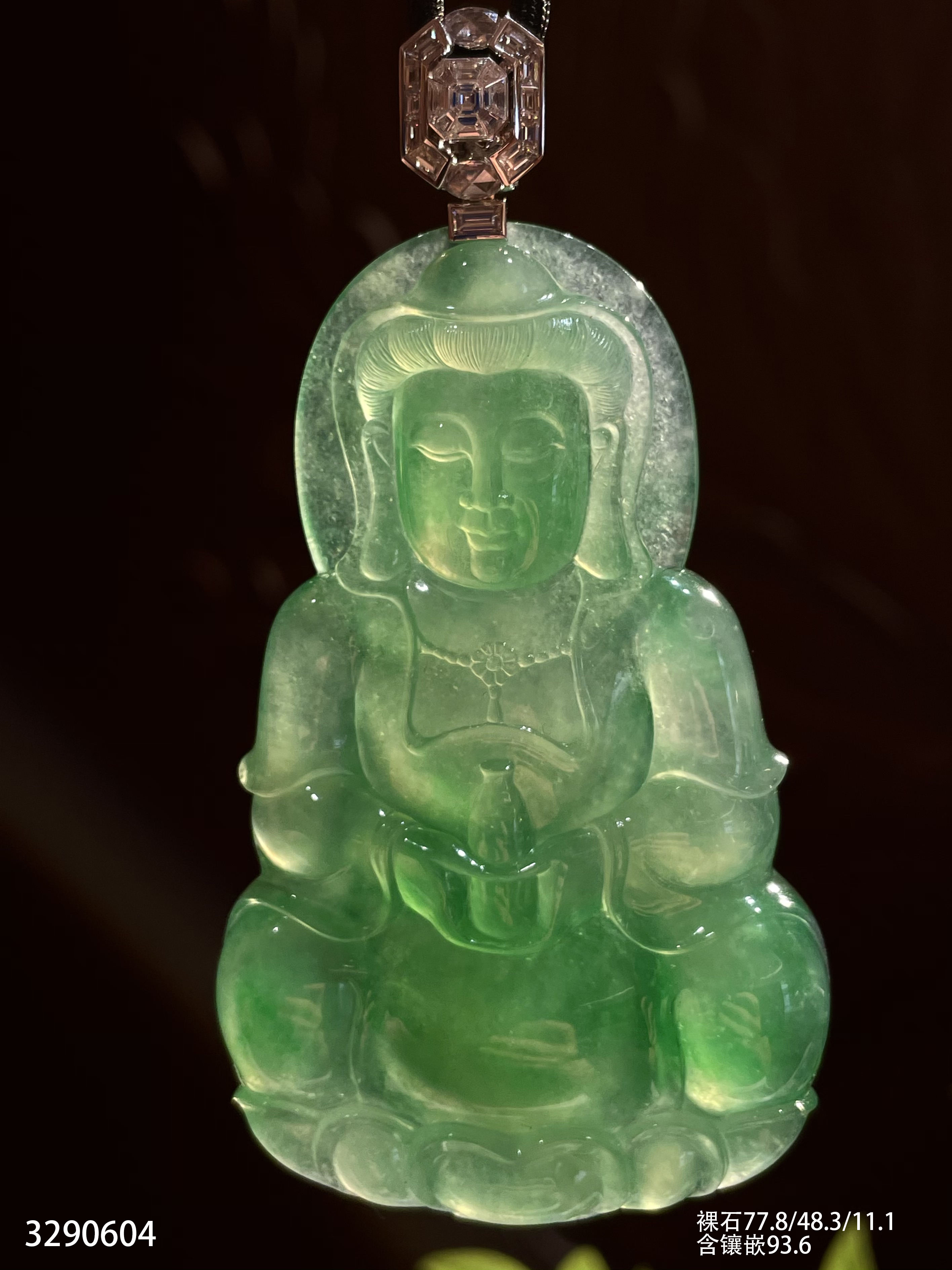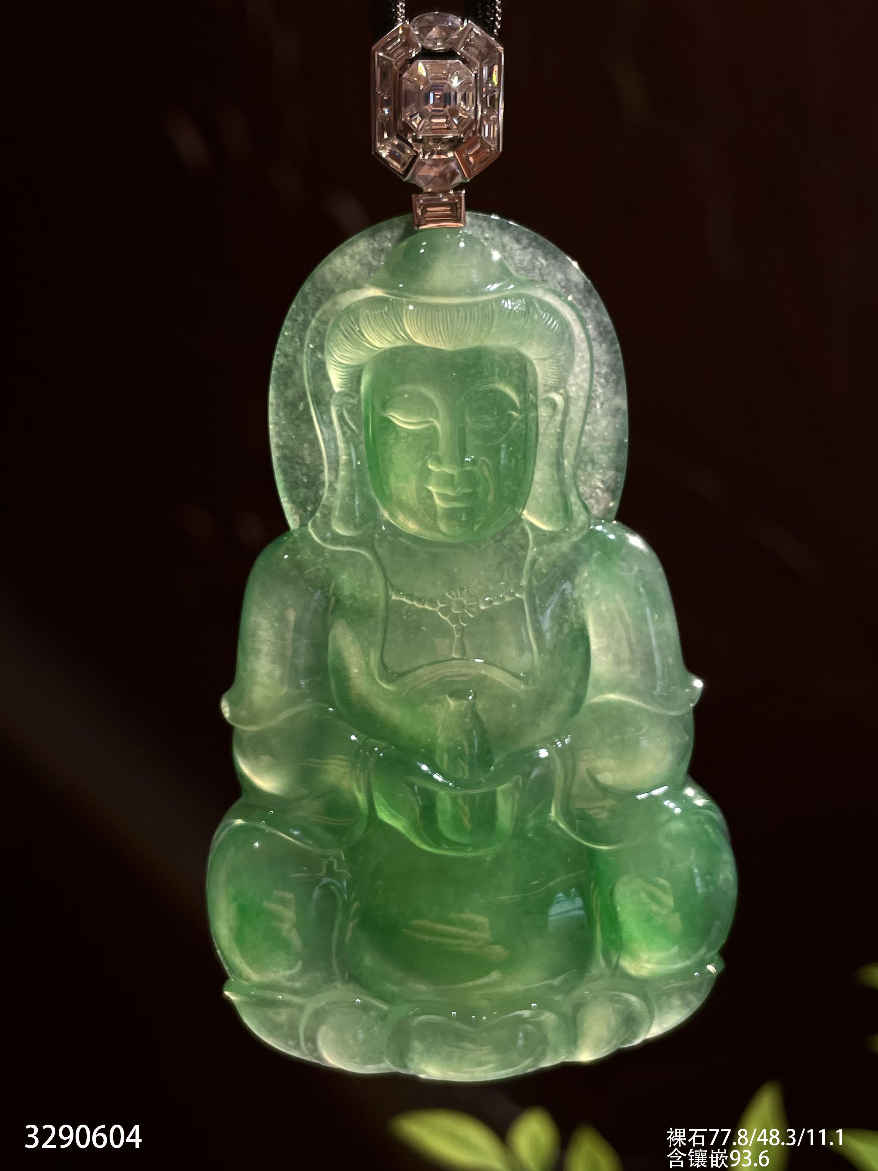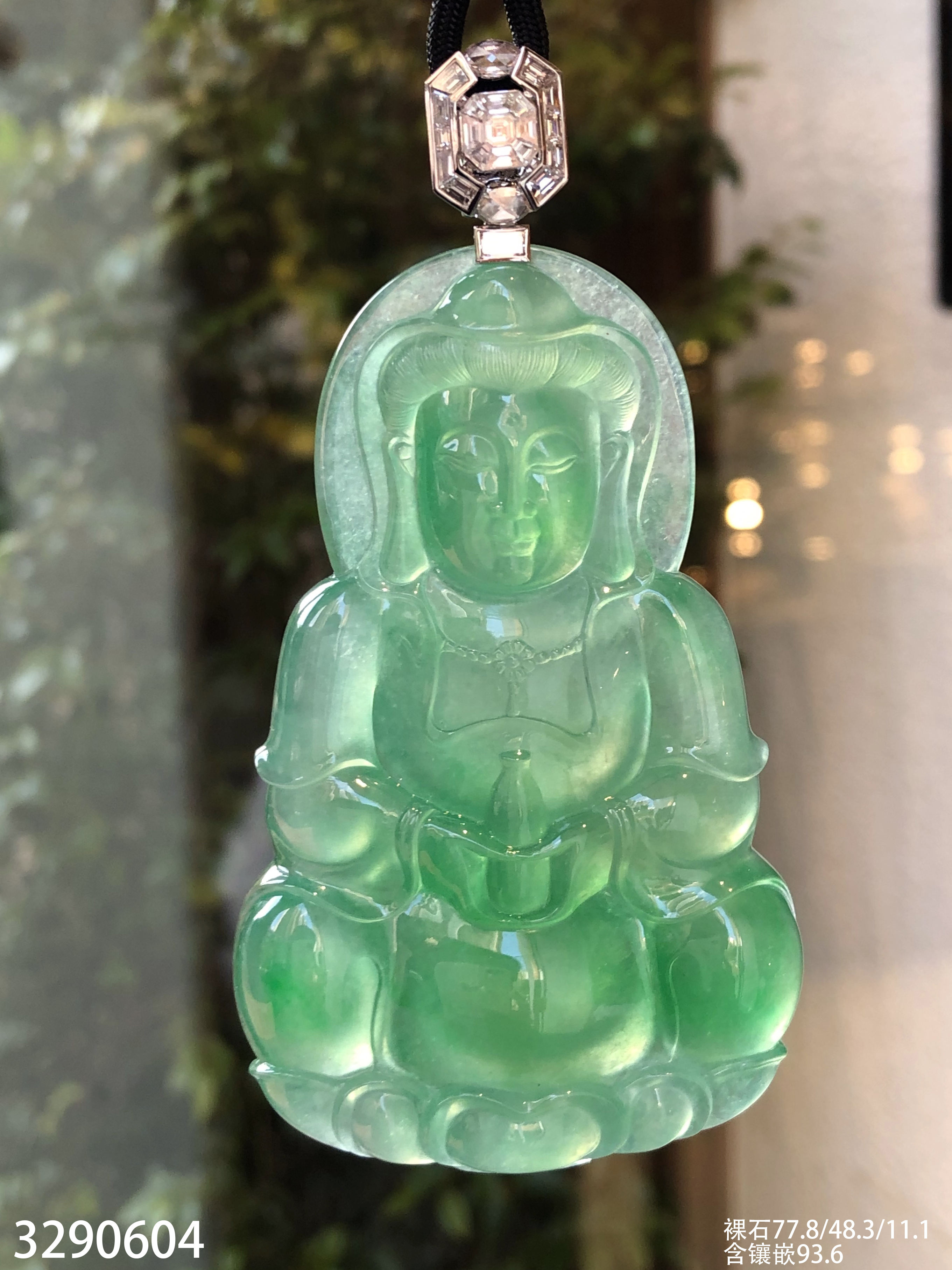 玻璃种艳绿观音吊坠【3290604】具体价格微信咨询