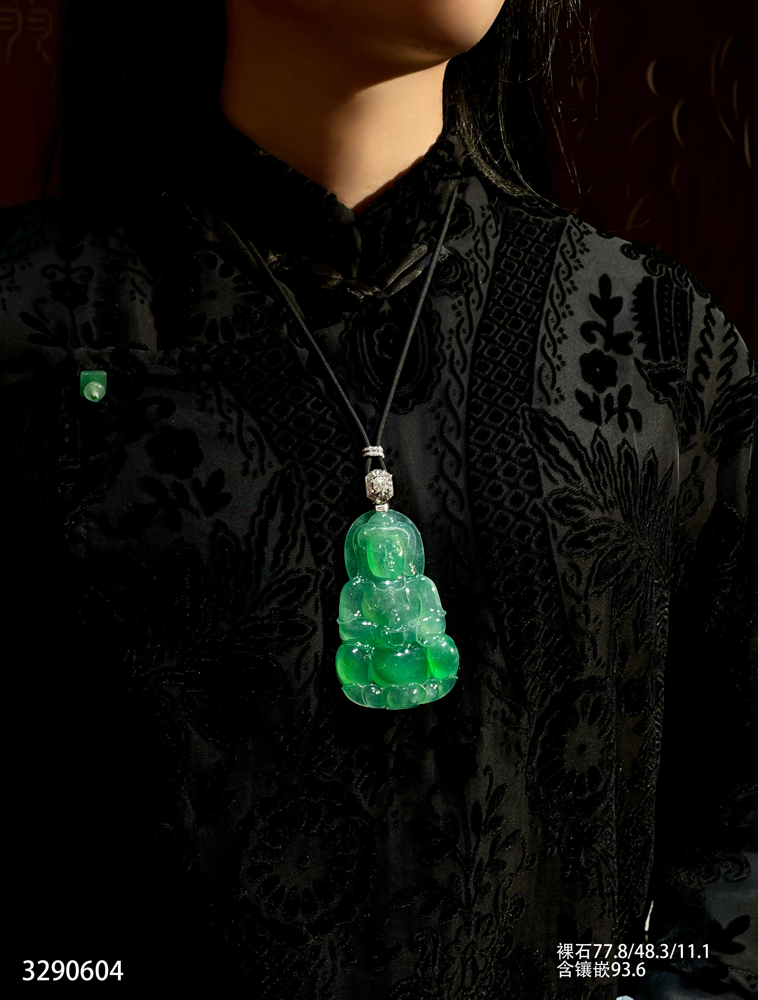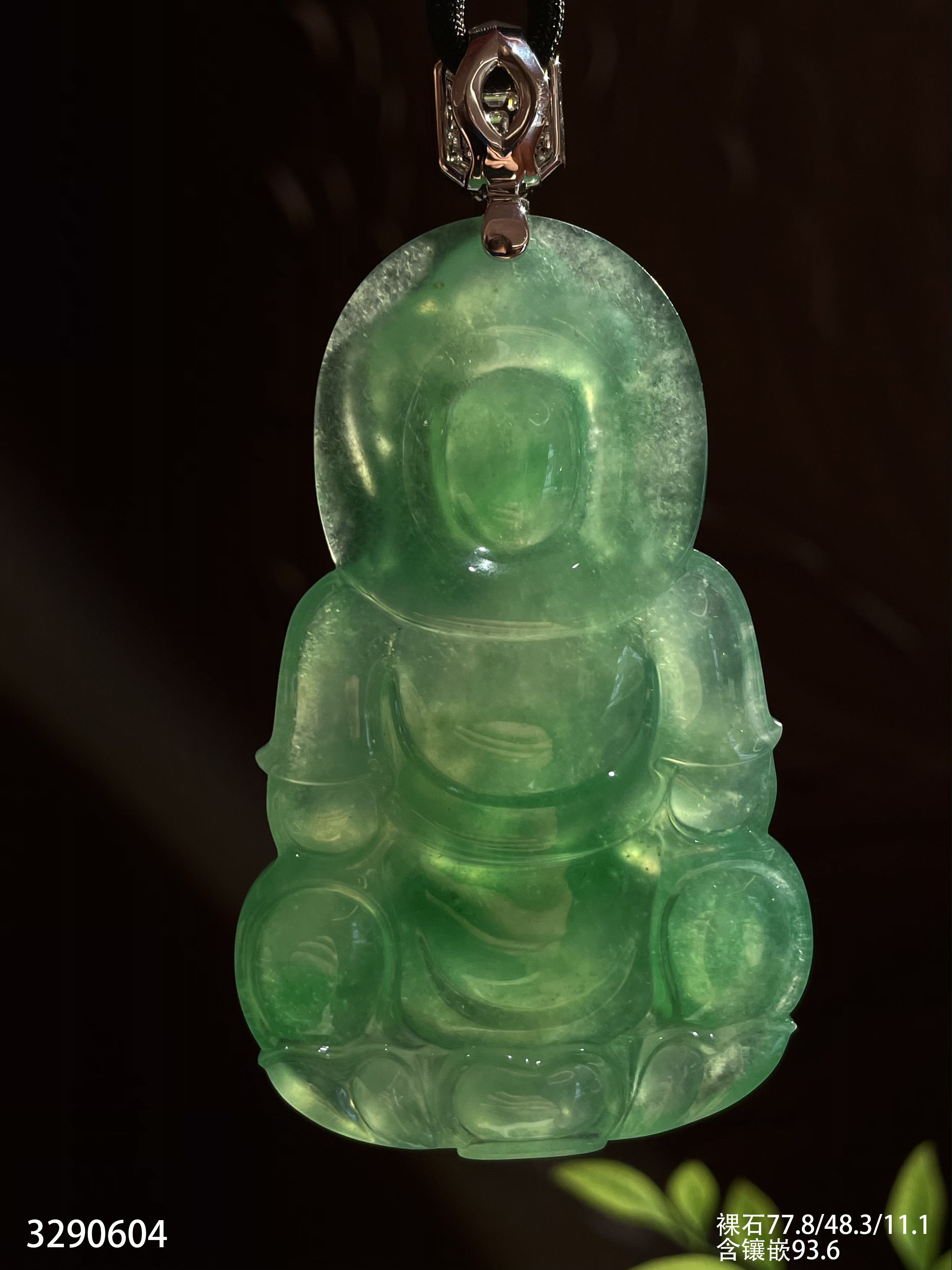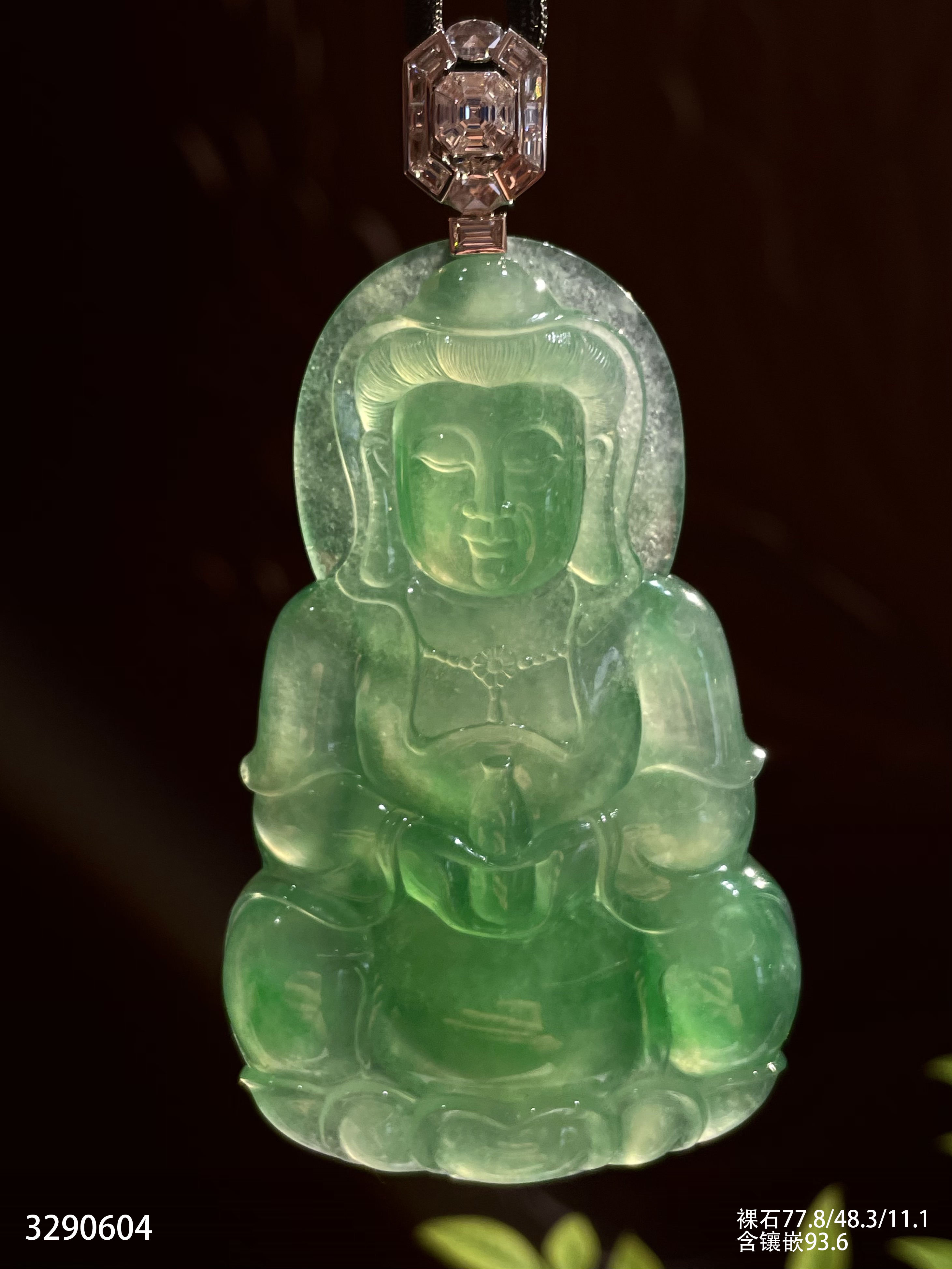玻璃种艳绿观音吊坠【3290604】具体价格微信咨询