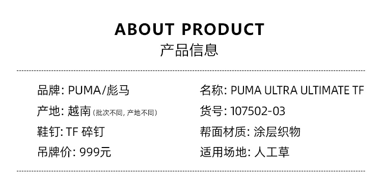 SFS 彪马Puma ULTRA ULTIMATE 高端TF碎钉足球鞋男 107502-03