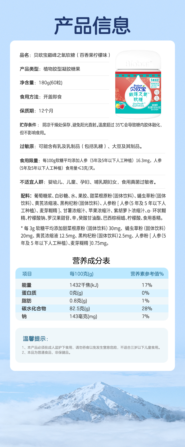 贝欧宝巅峰之氧软糖180克/瓶
