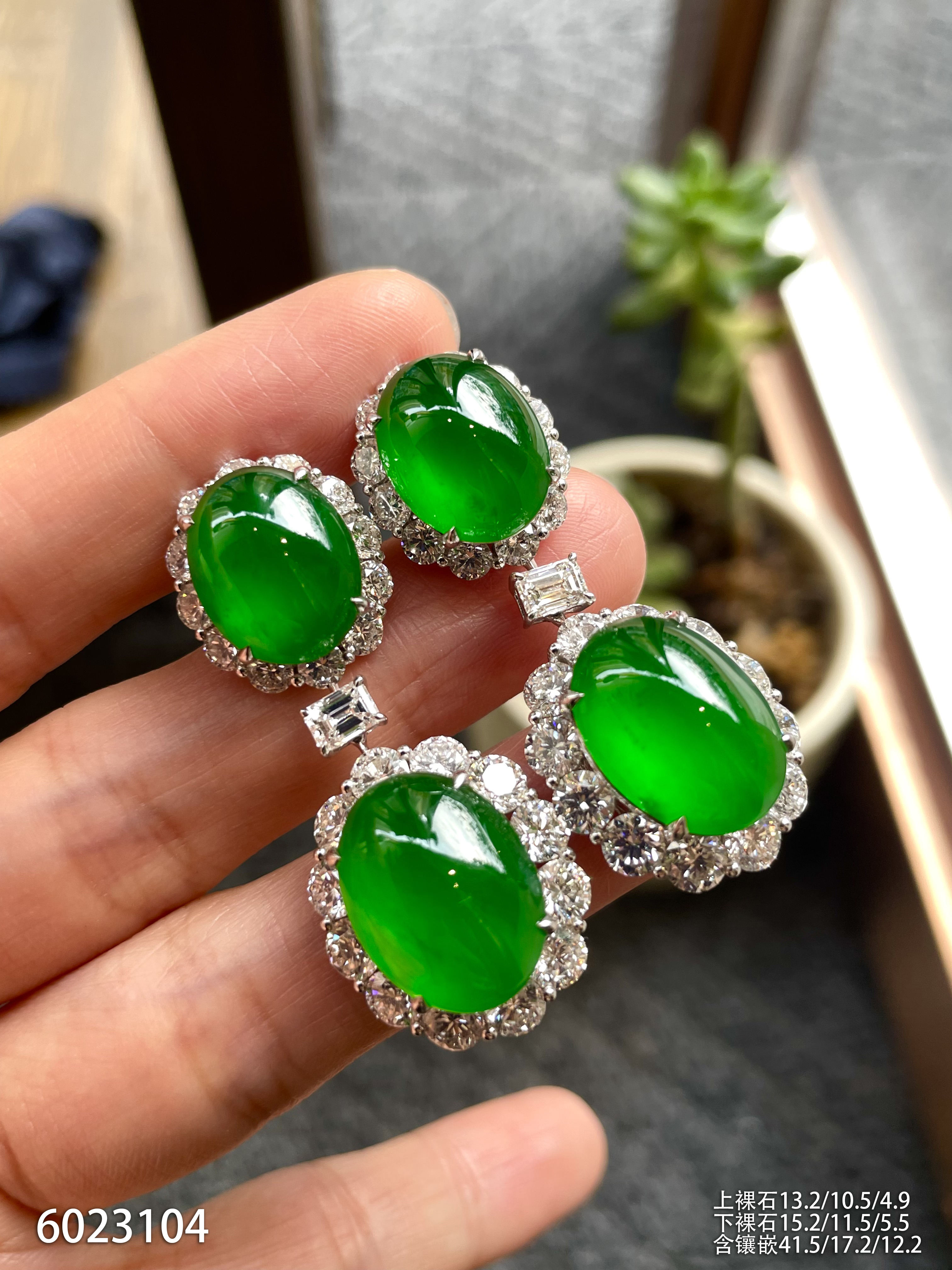 玻璃种帝王绿蛋面耳坠【6023104】具体价格微信咨询