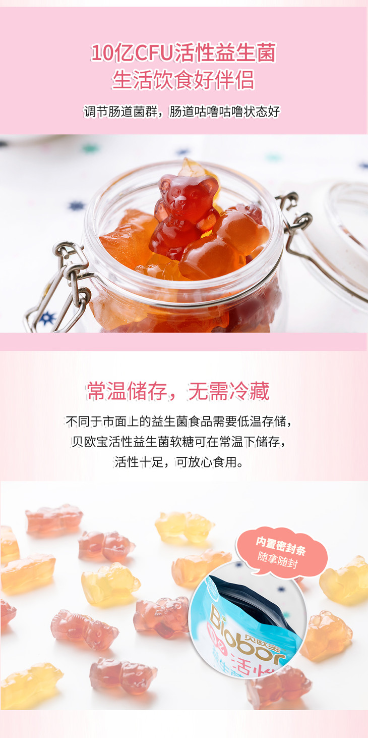 贝欧宝biobor 益生菌酸奶软糖 45g/袋 休闲零食水果汁混合口味软糖 富含10亿活性益生菌