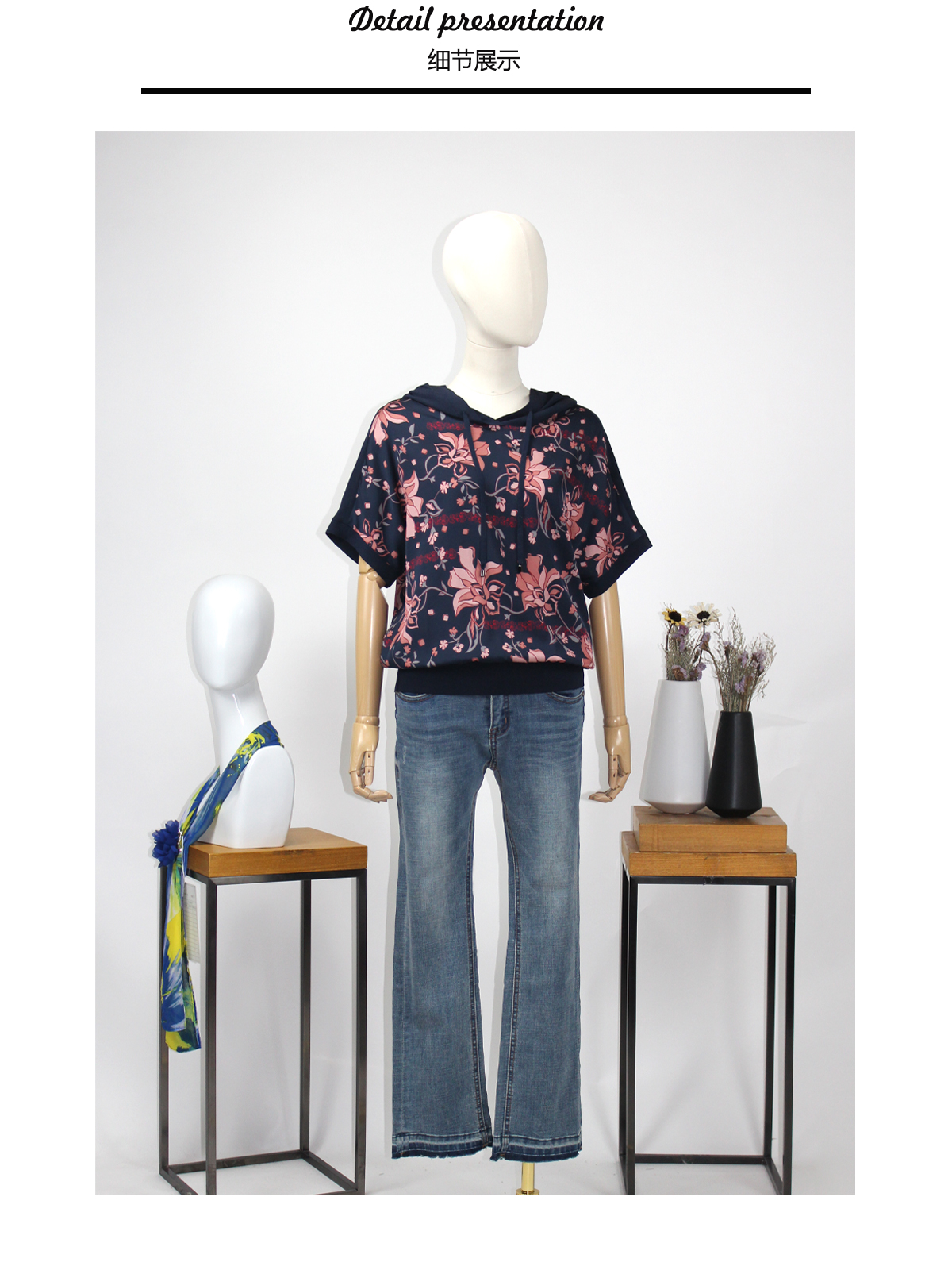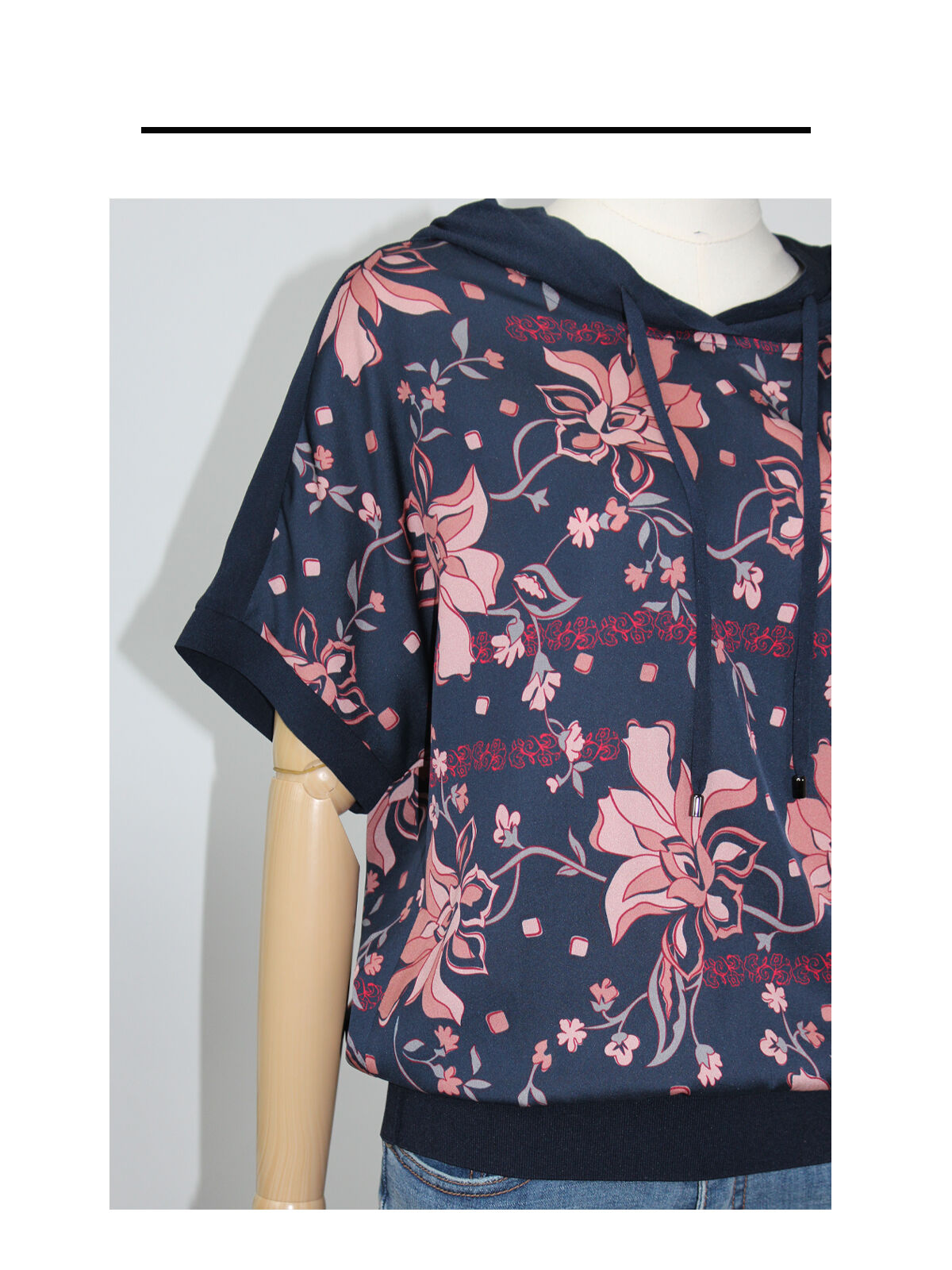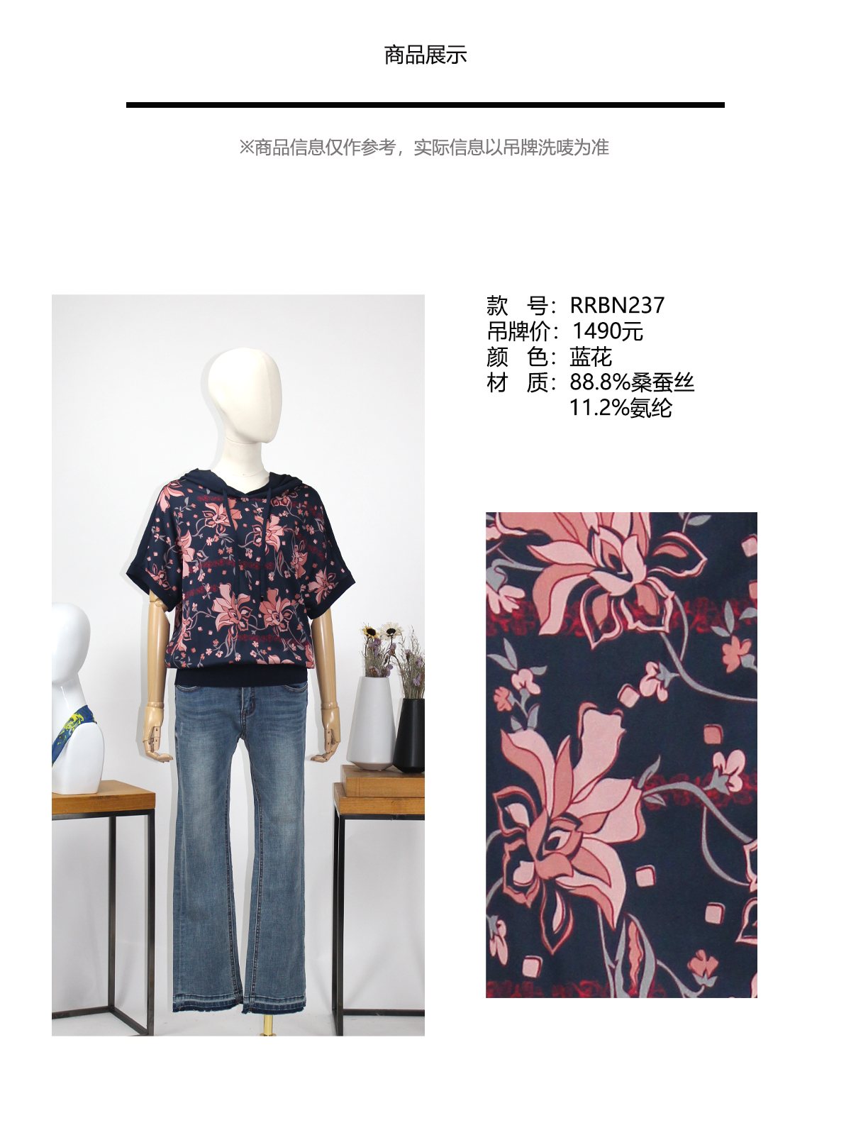 FOCALS女装夏季新款桑蚕丝连帽拼接套头印花衬衫上衣FRRBN237BV