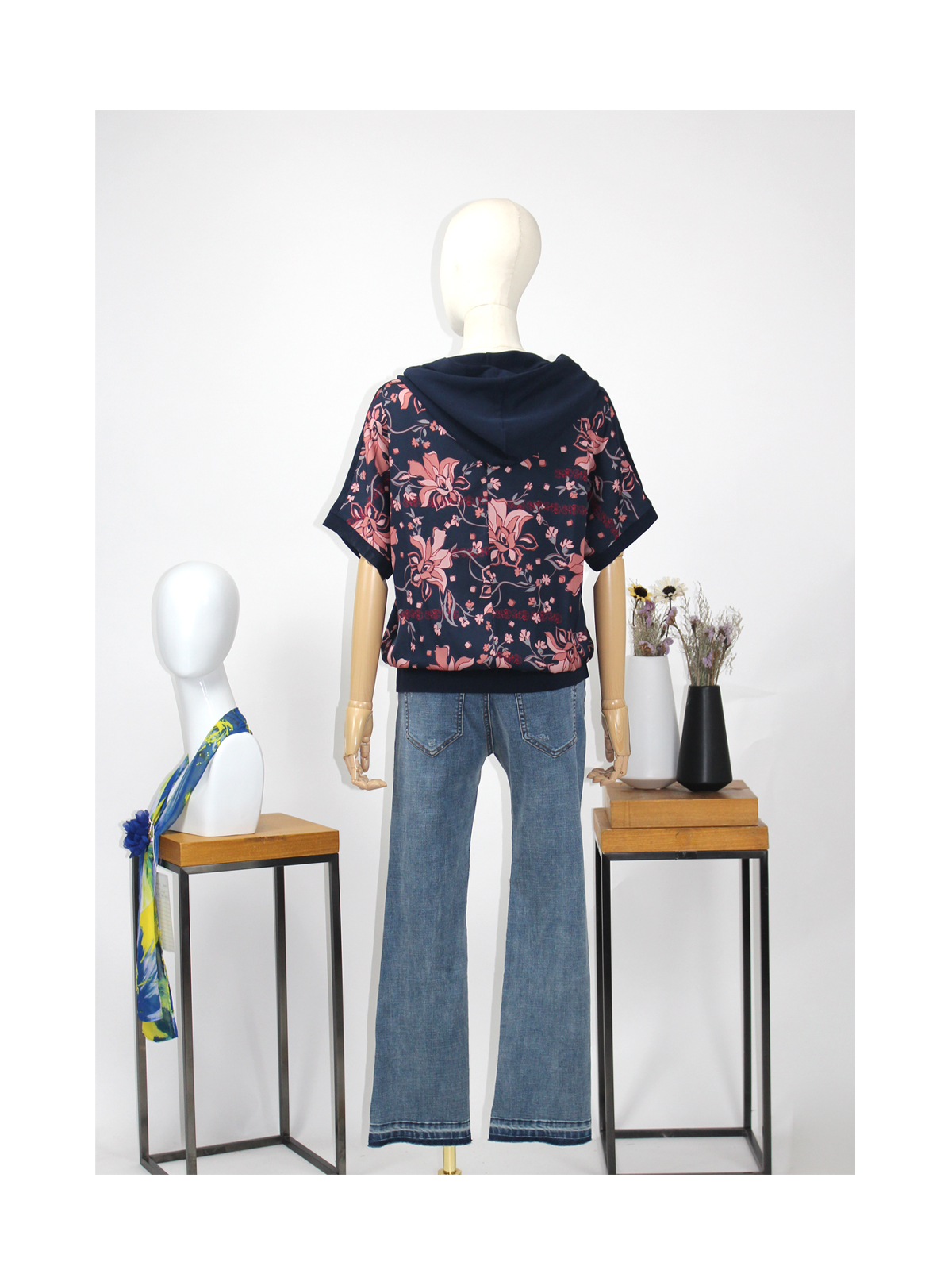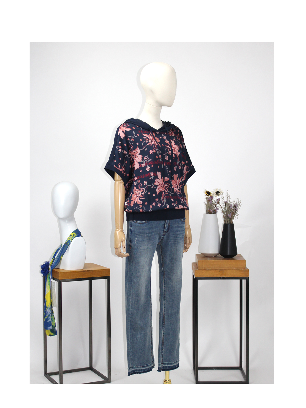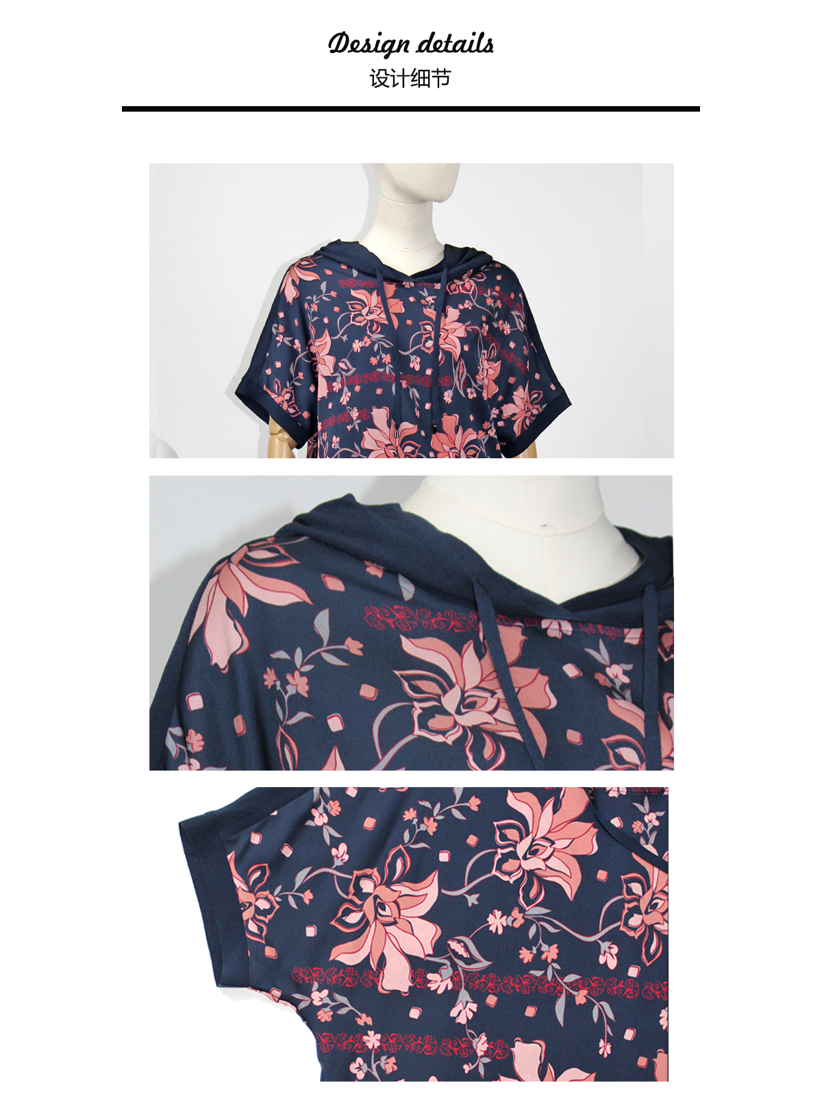 FOCALS女装夏季新款桑蚕丝连帽拼接套头印花衬衫上衣FRRBN237BV