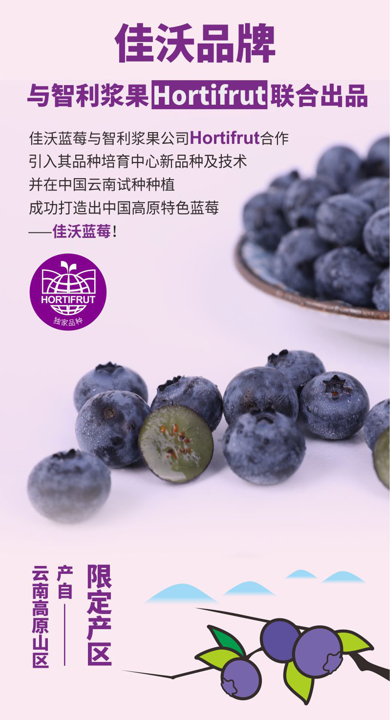 佳沃云南山地蓝莓20mm+超大果盒礼盒装 当季限定顺丰包邮