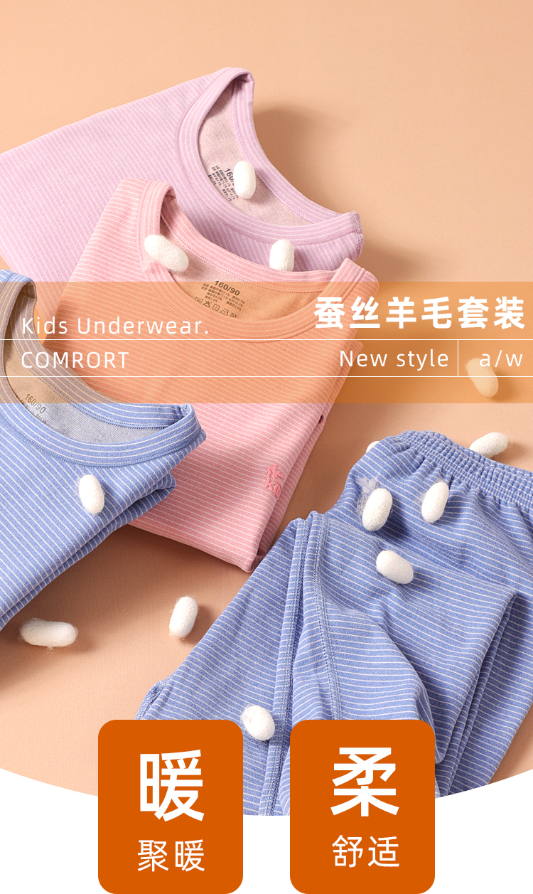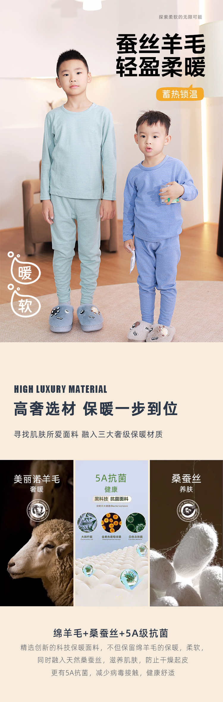 【每满2套减10元】A类抗菌儿童保暖内衣套装蚕丝羊毛!超软!超暖!