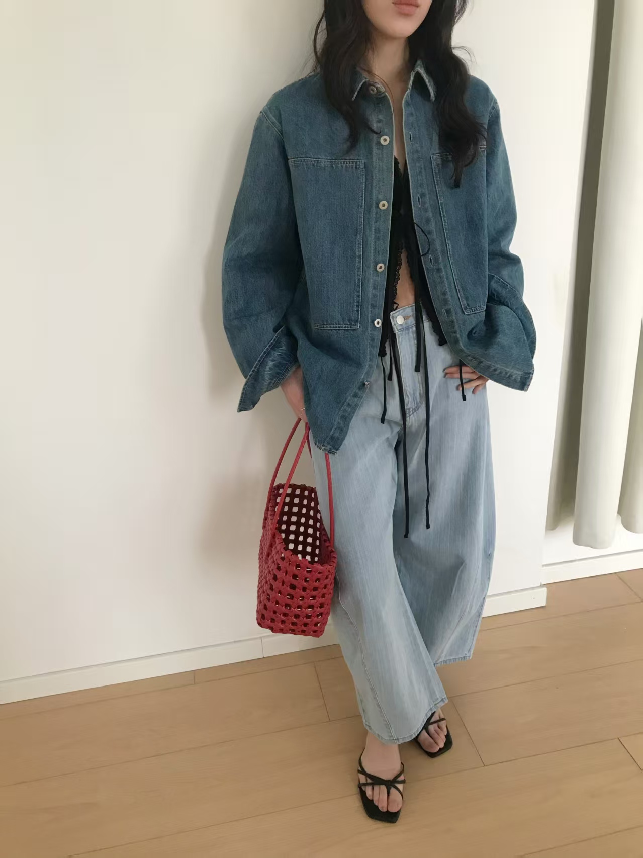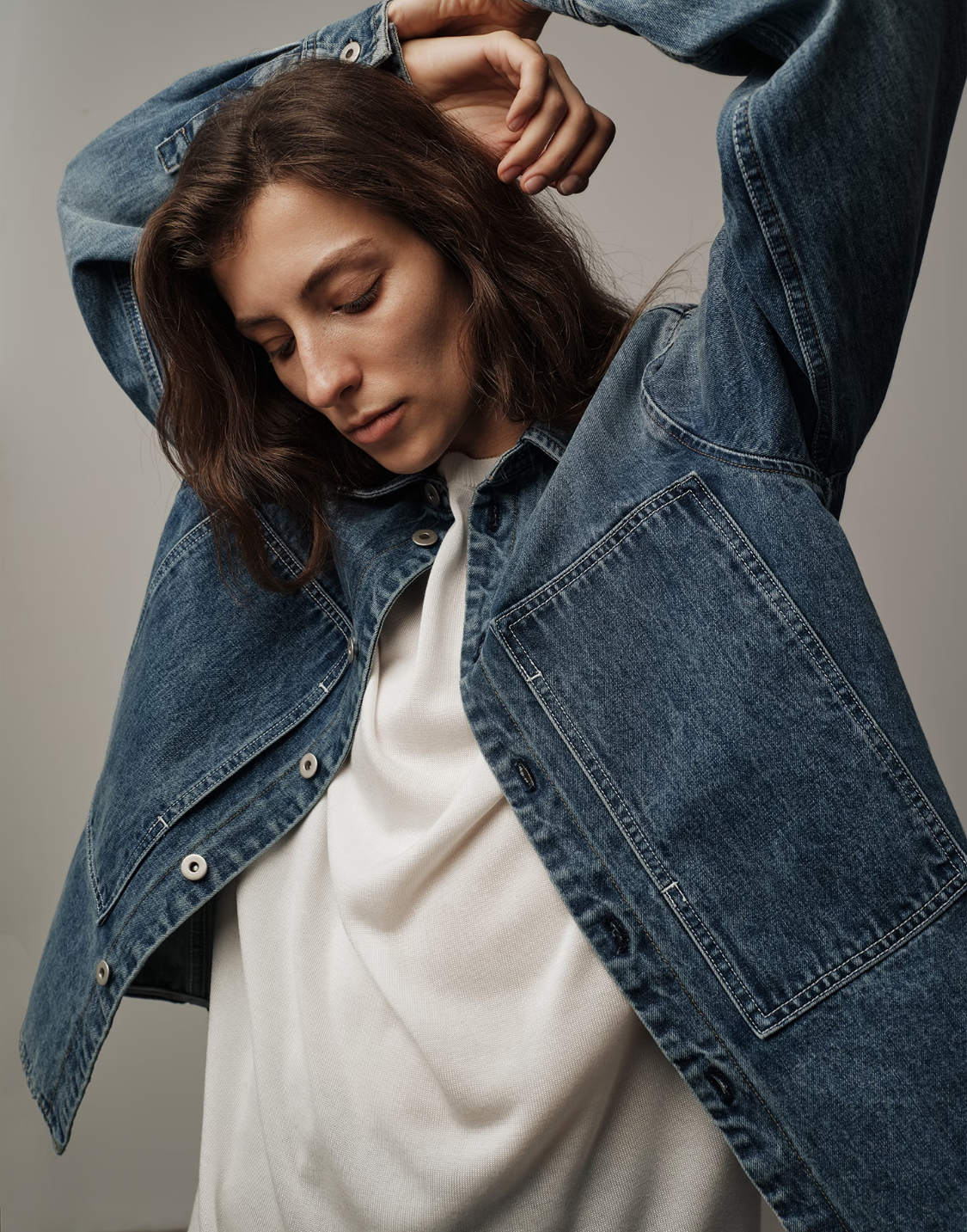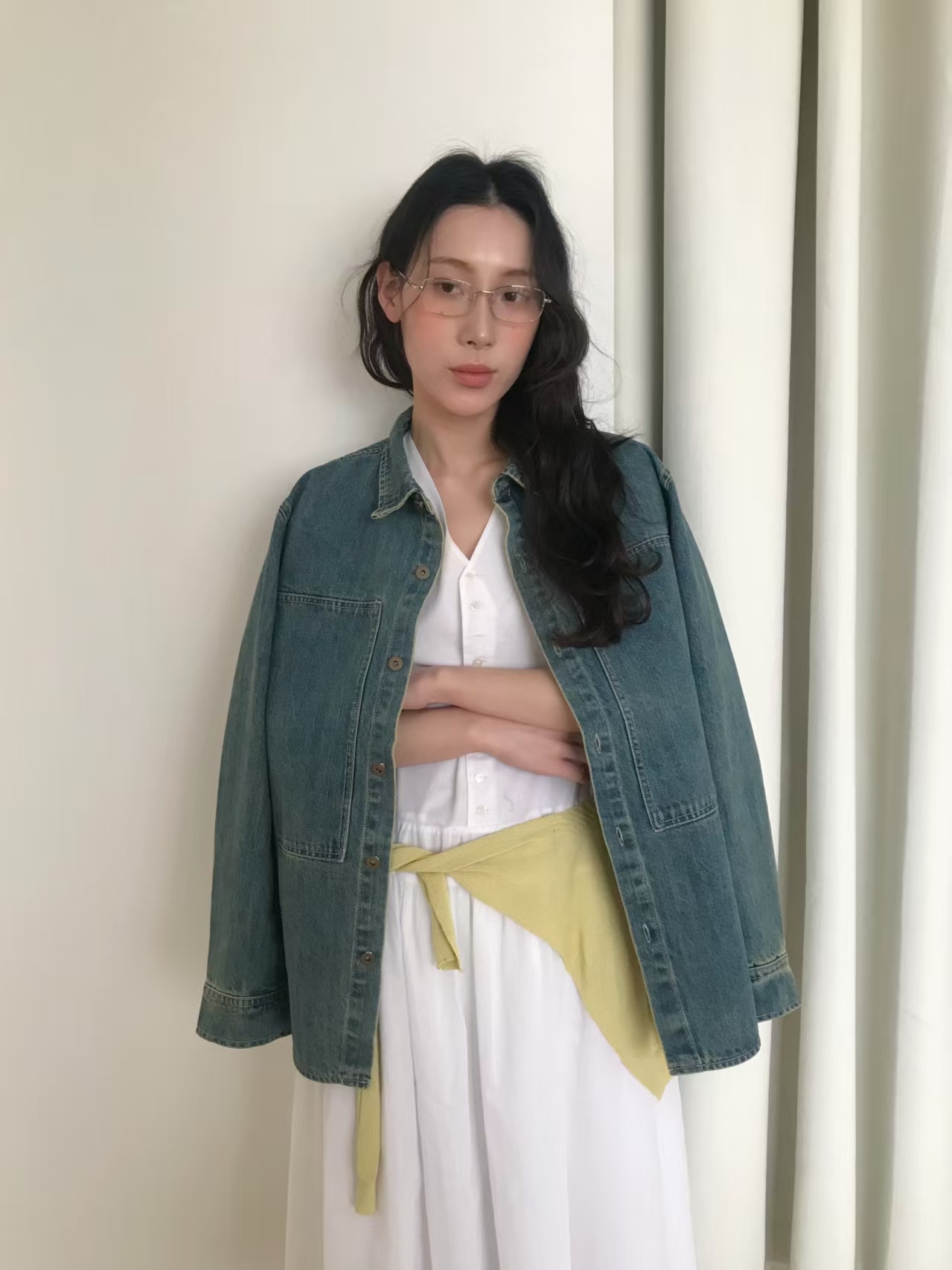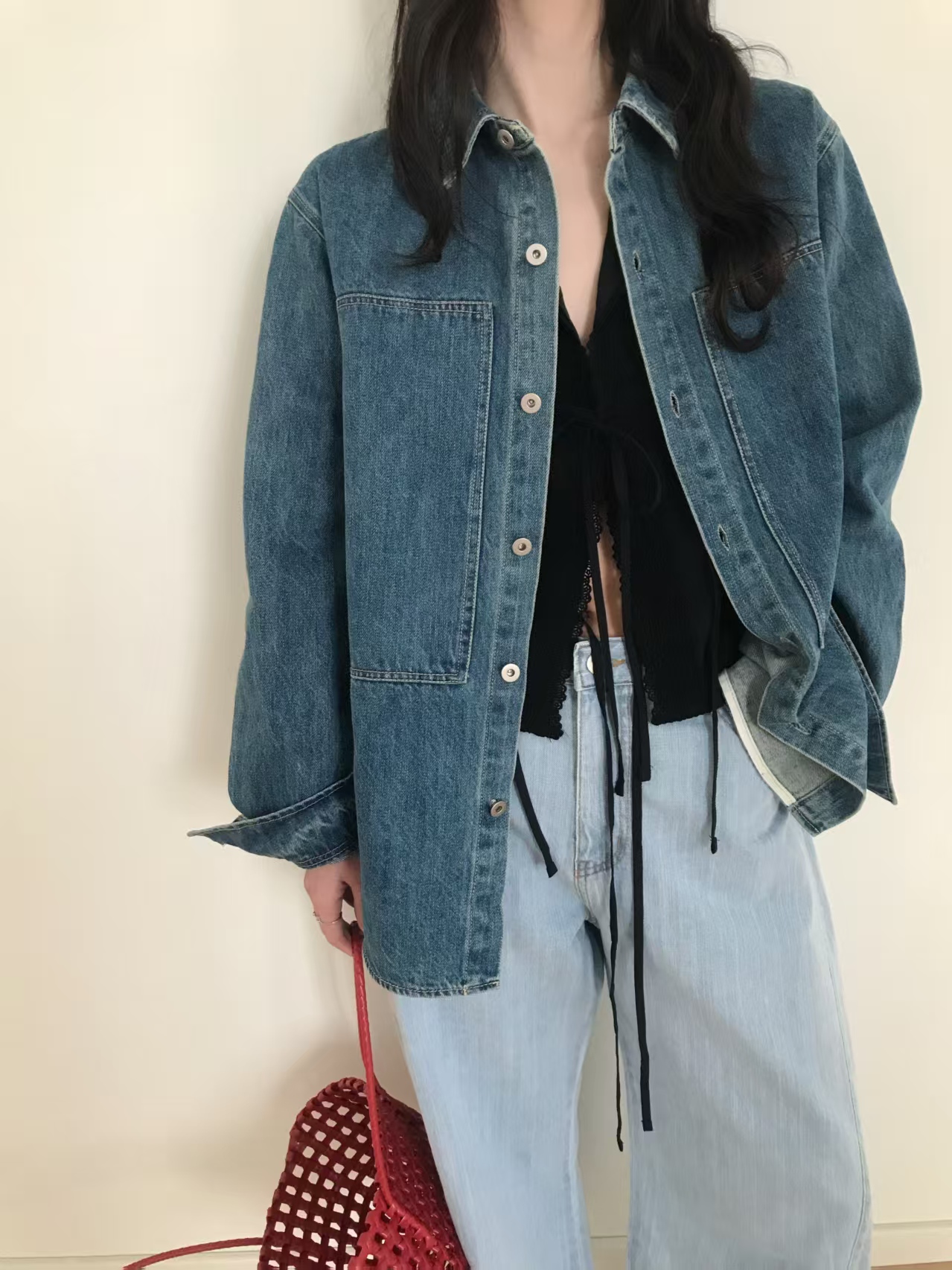 春天到啦,这样一款小有厚度的衬衫式牛仔,
