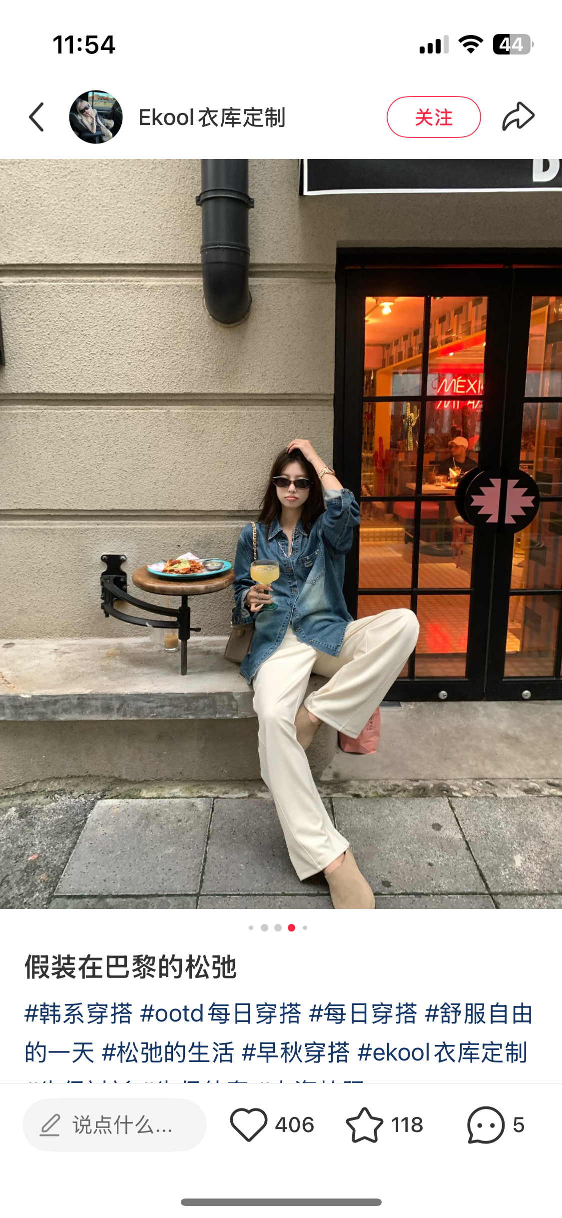 内搭白T+浅色牛仔直筒裤,显瘦,慵懒,超有范~