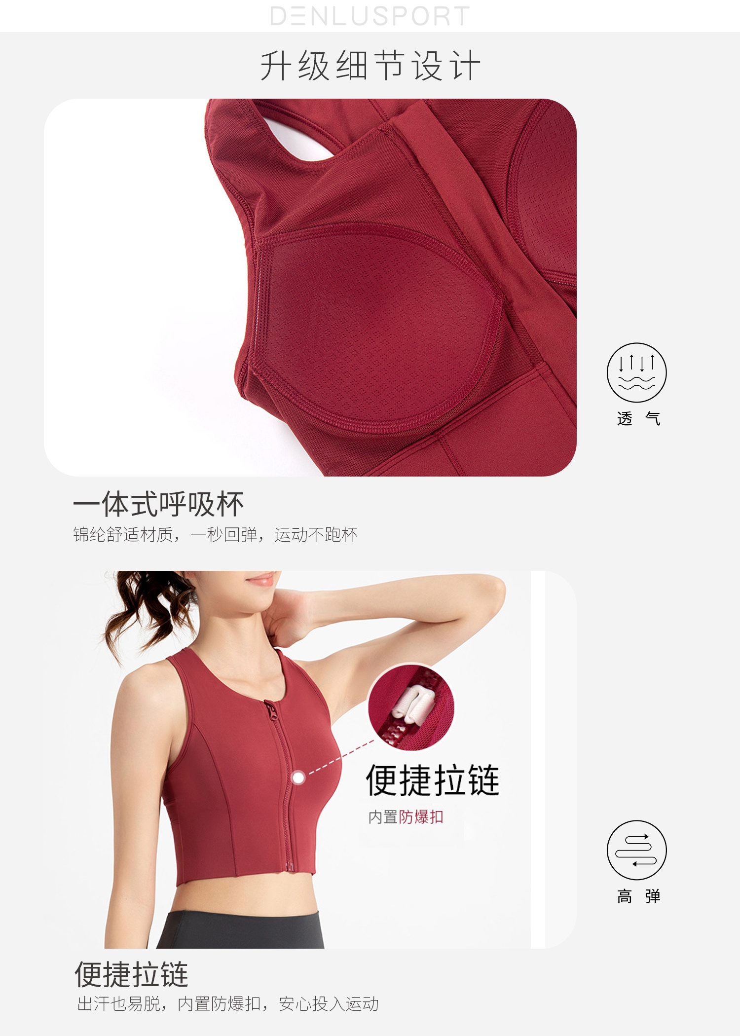 高强度运动内衣女前拉链瑜伽背心防震跑步健身文胸外穿 DY66188