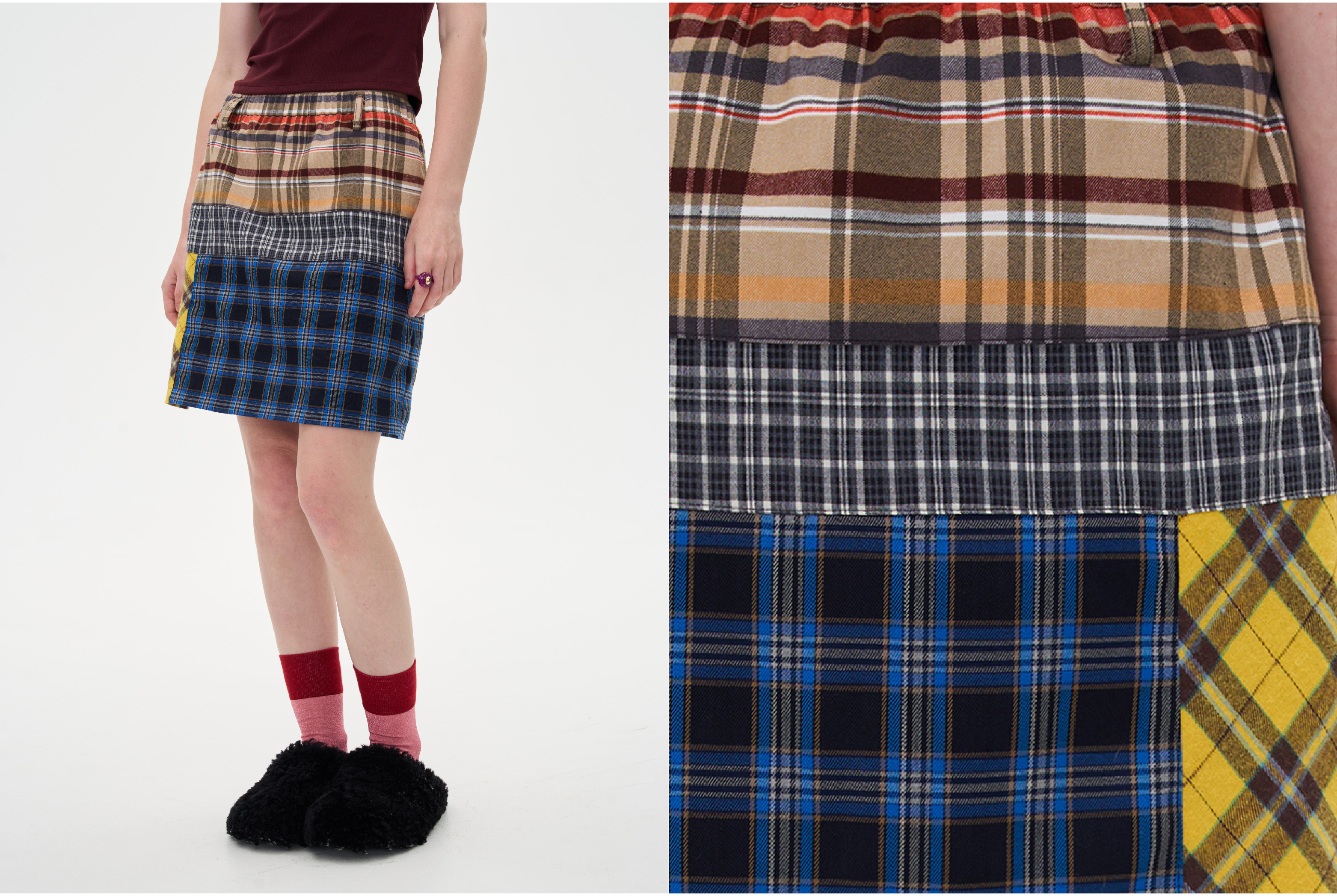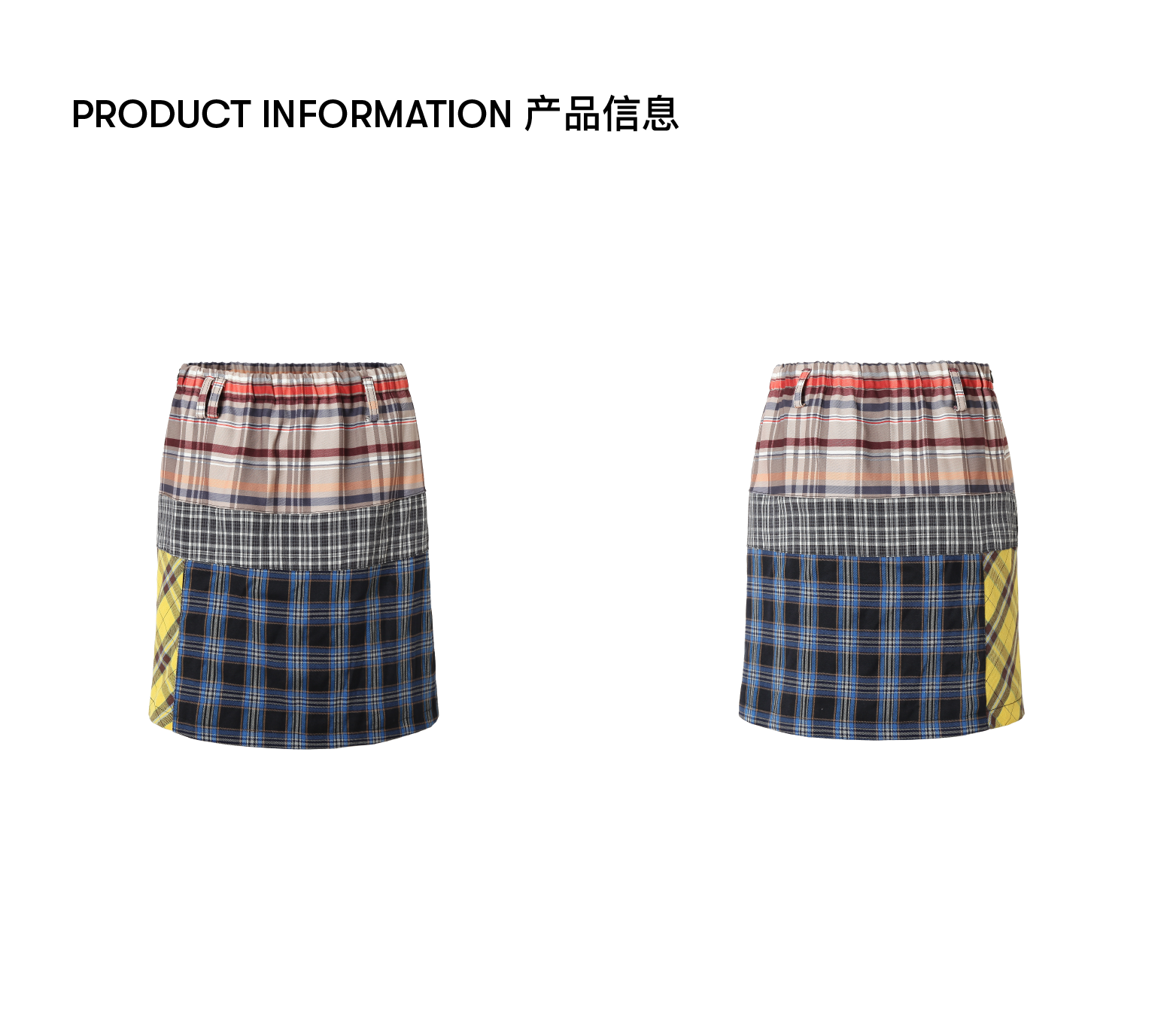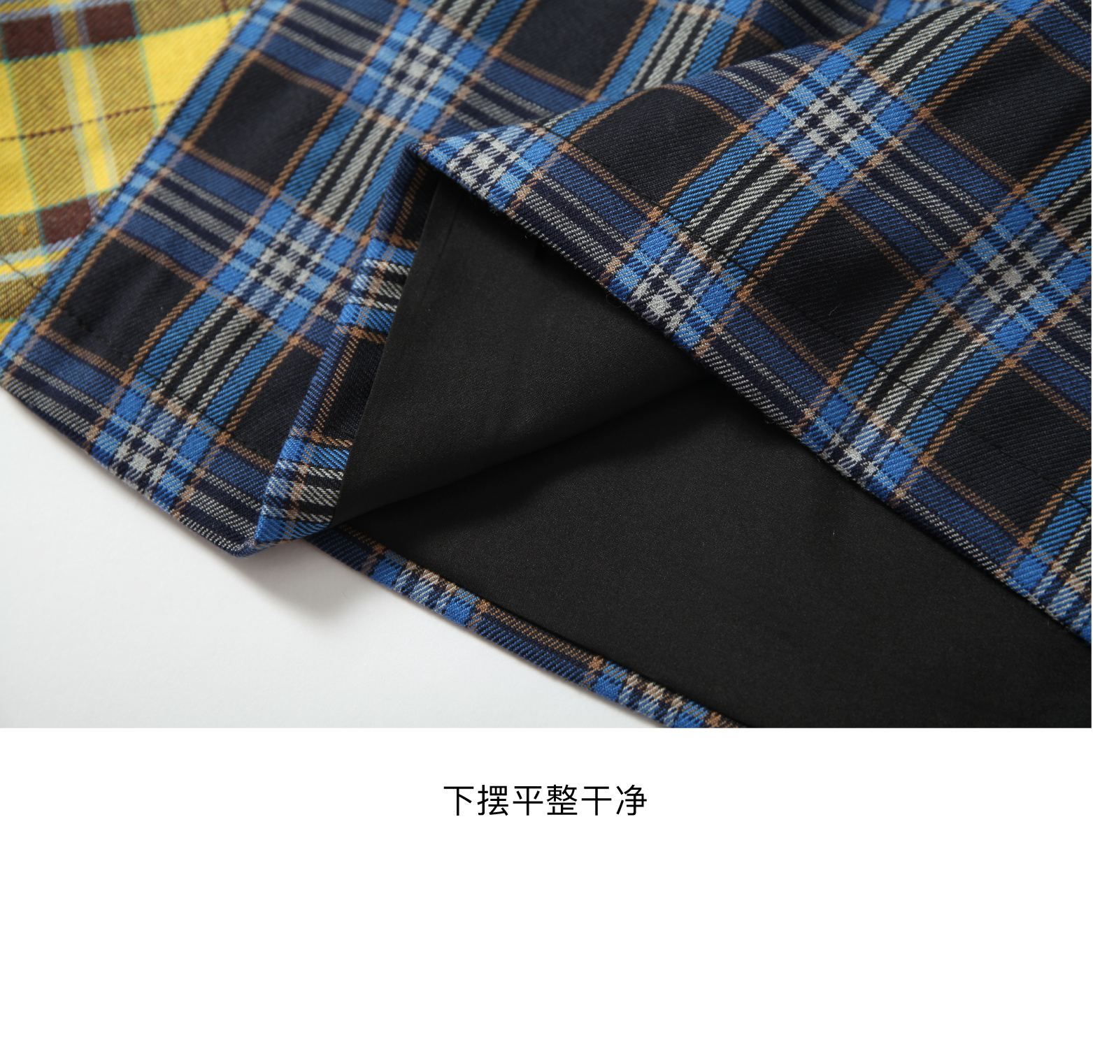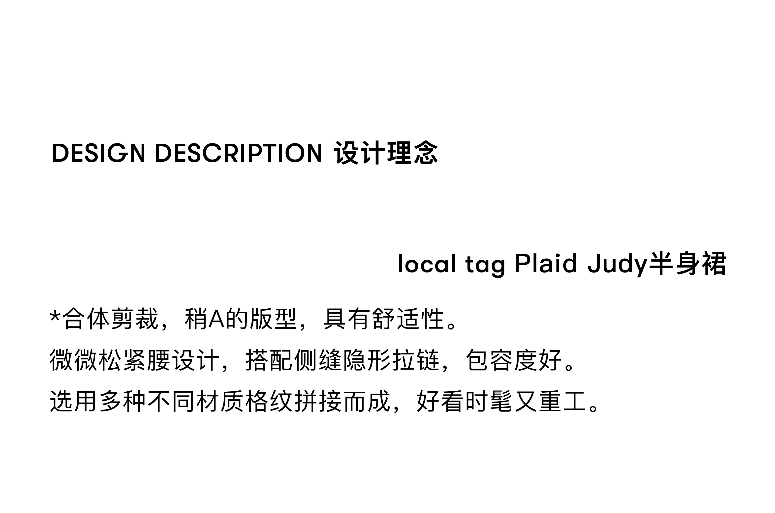 local tag/It24ssk18/格纹面料拼接重工时髦短裙