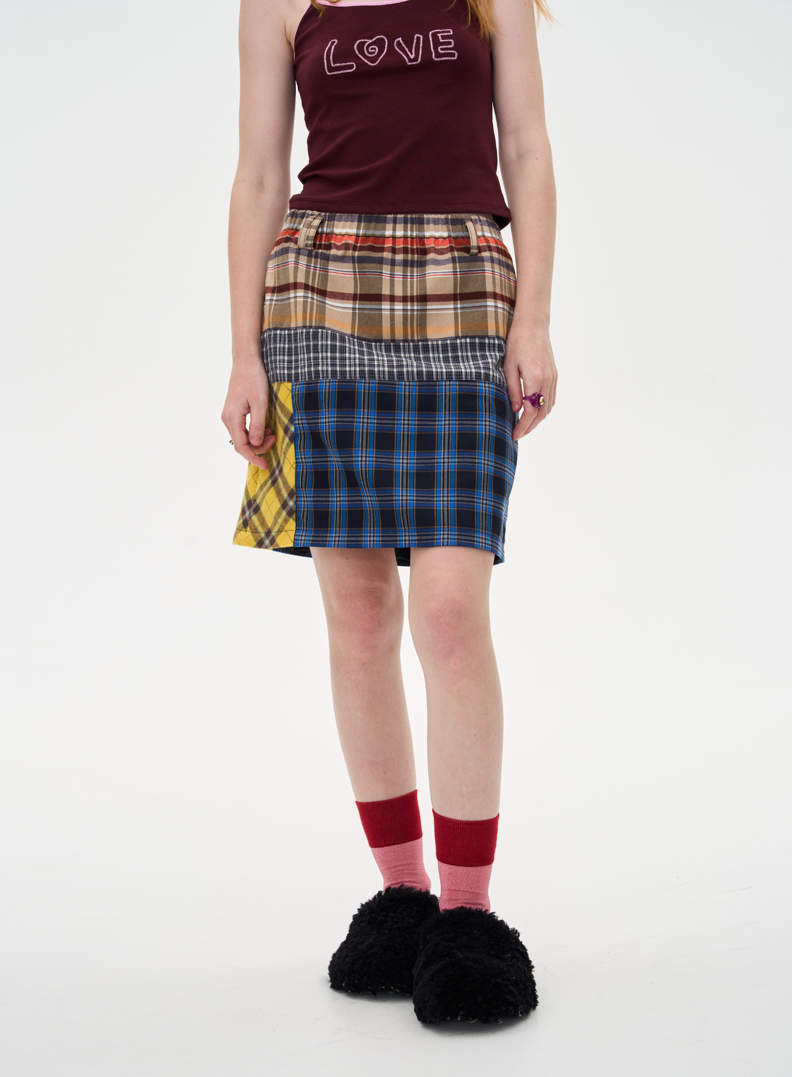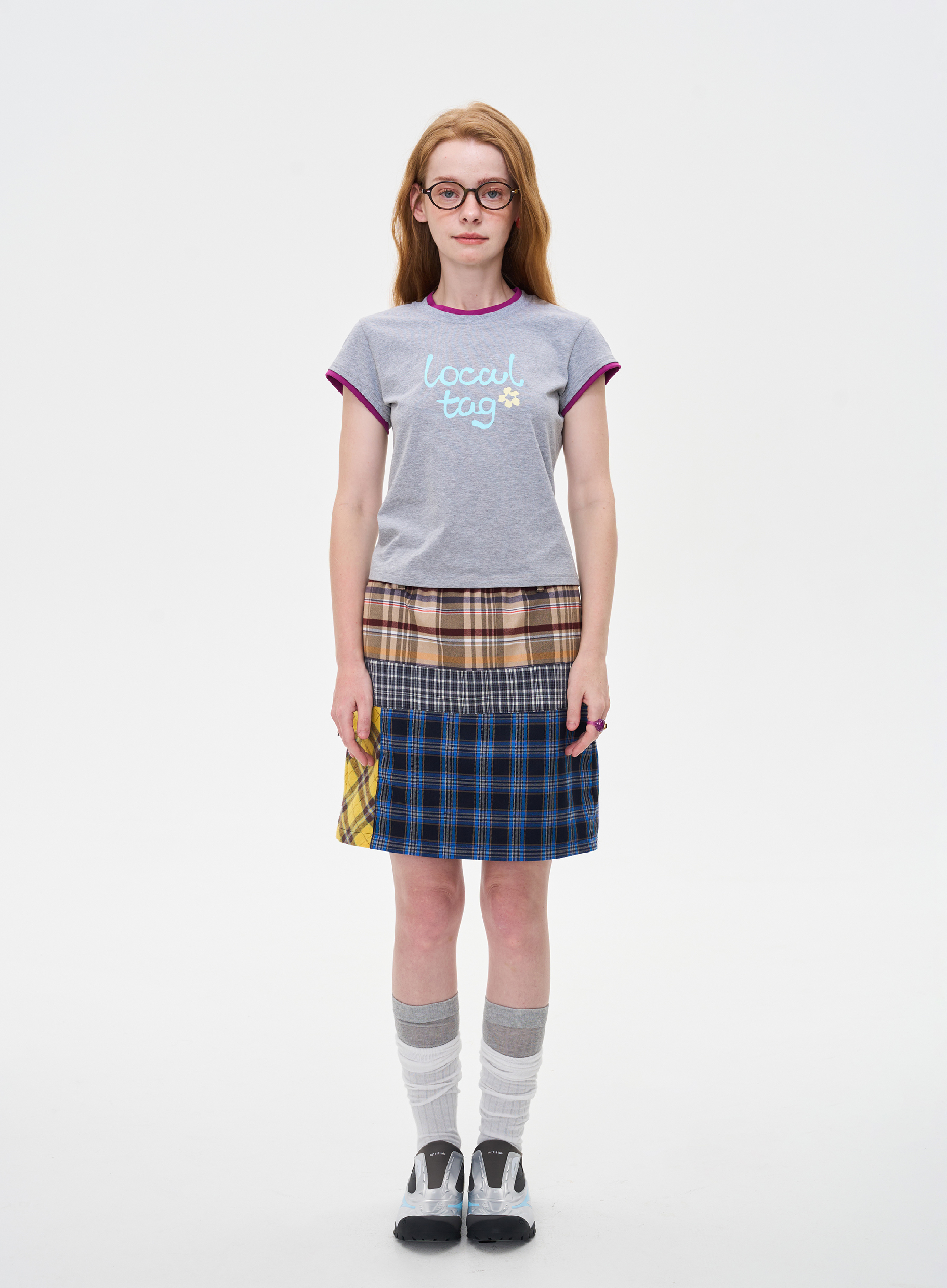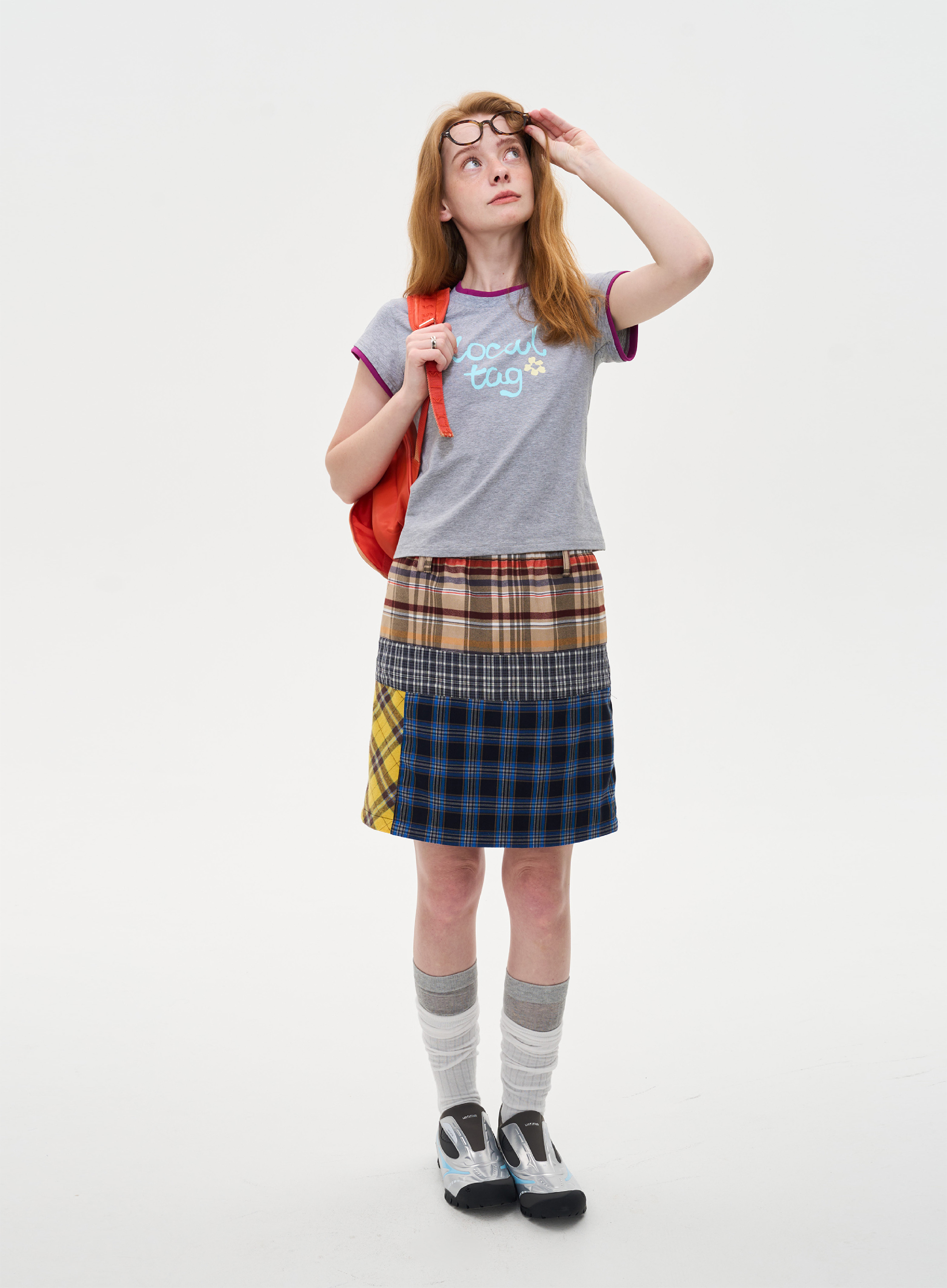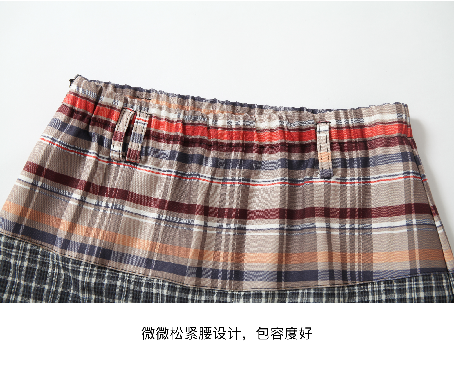 local tag/It24ssk18/格纹面料拼接重工时髦短裙