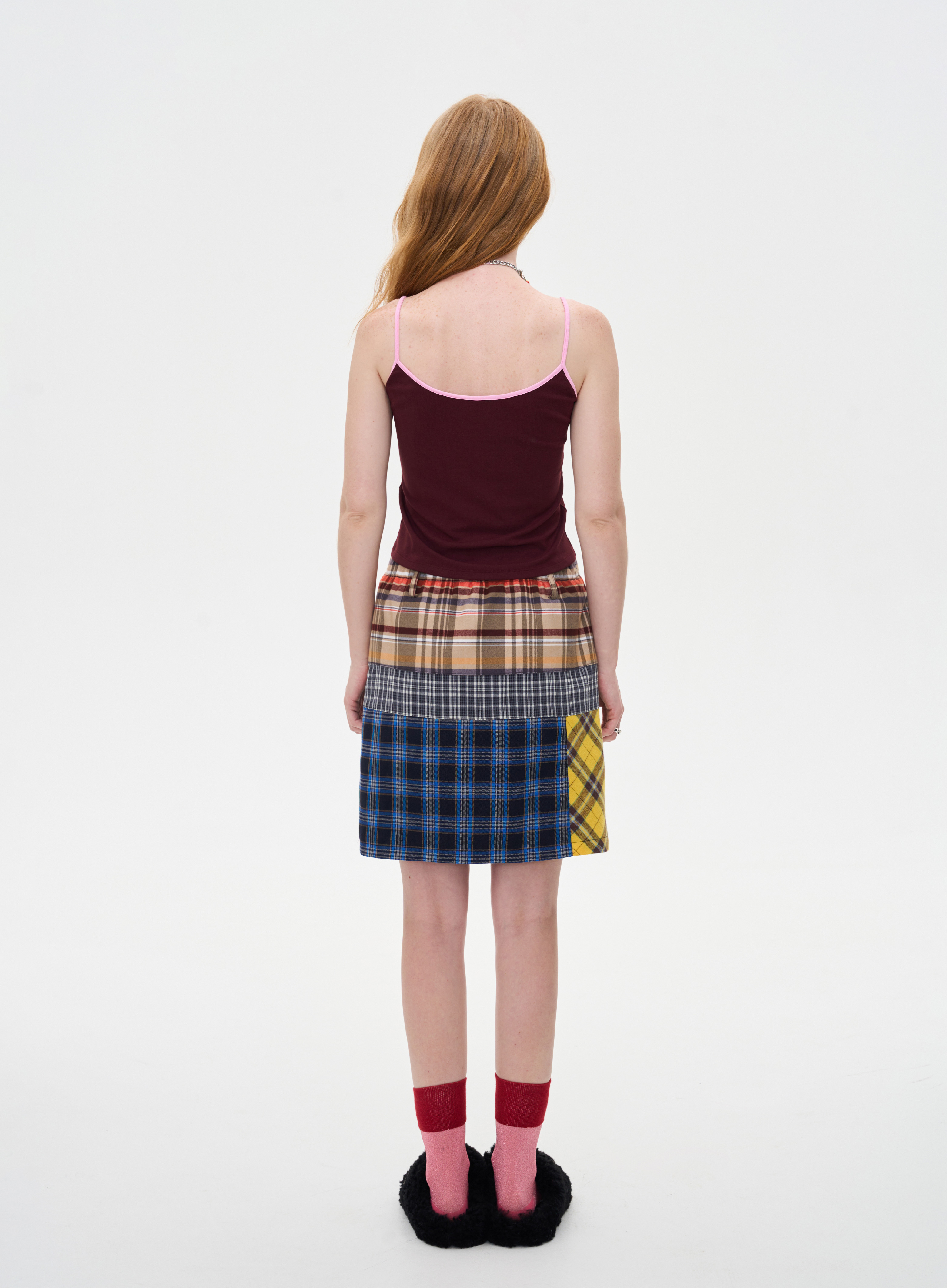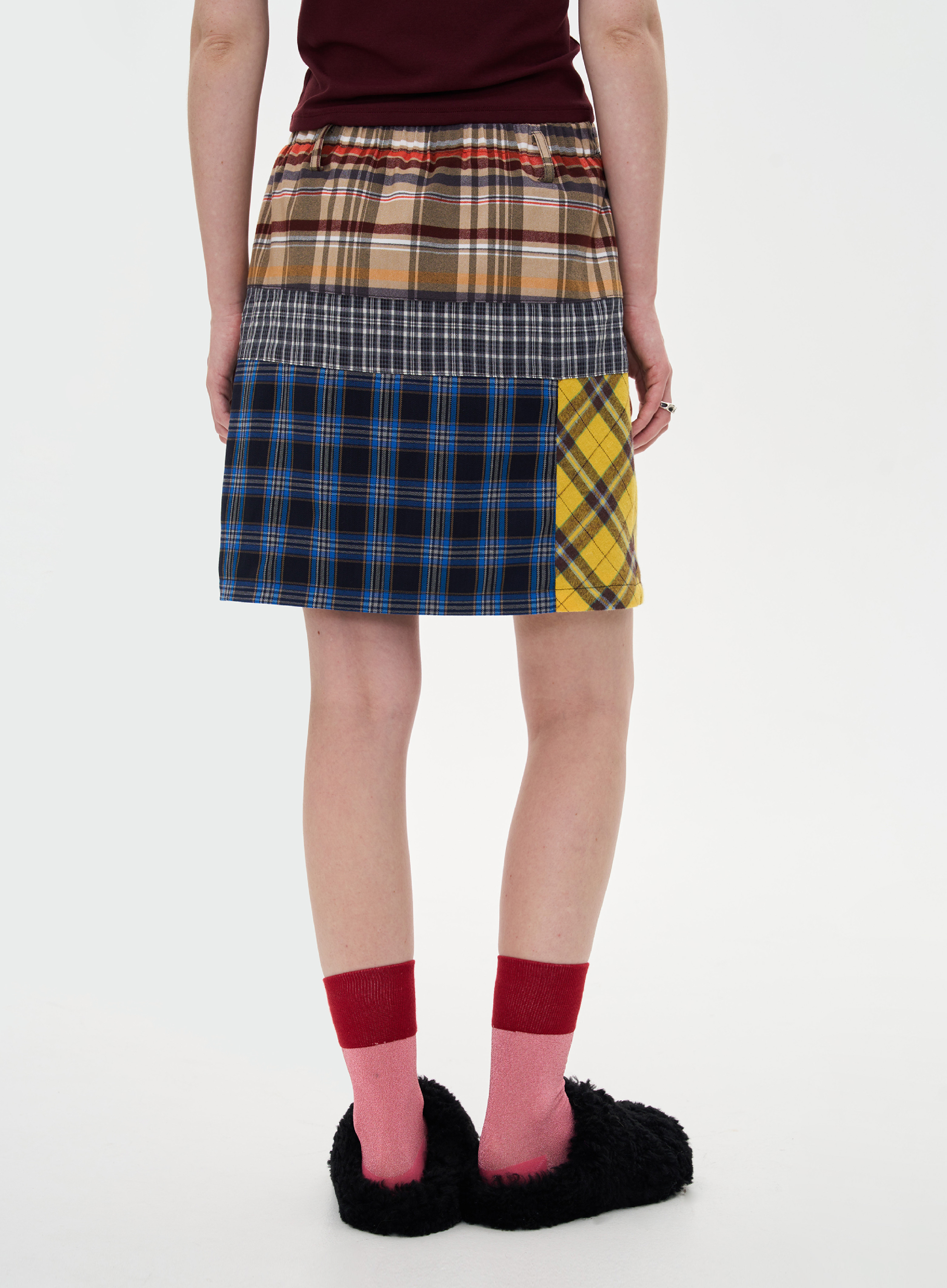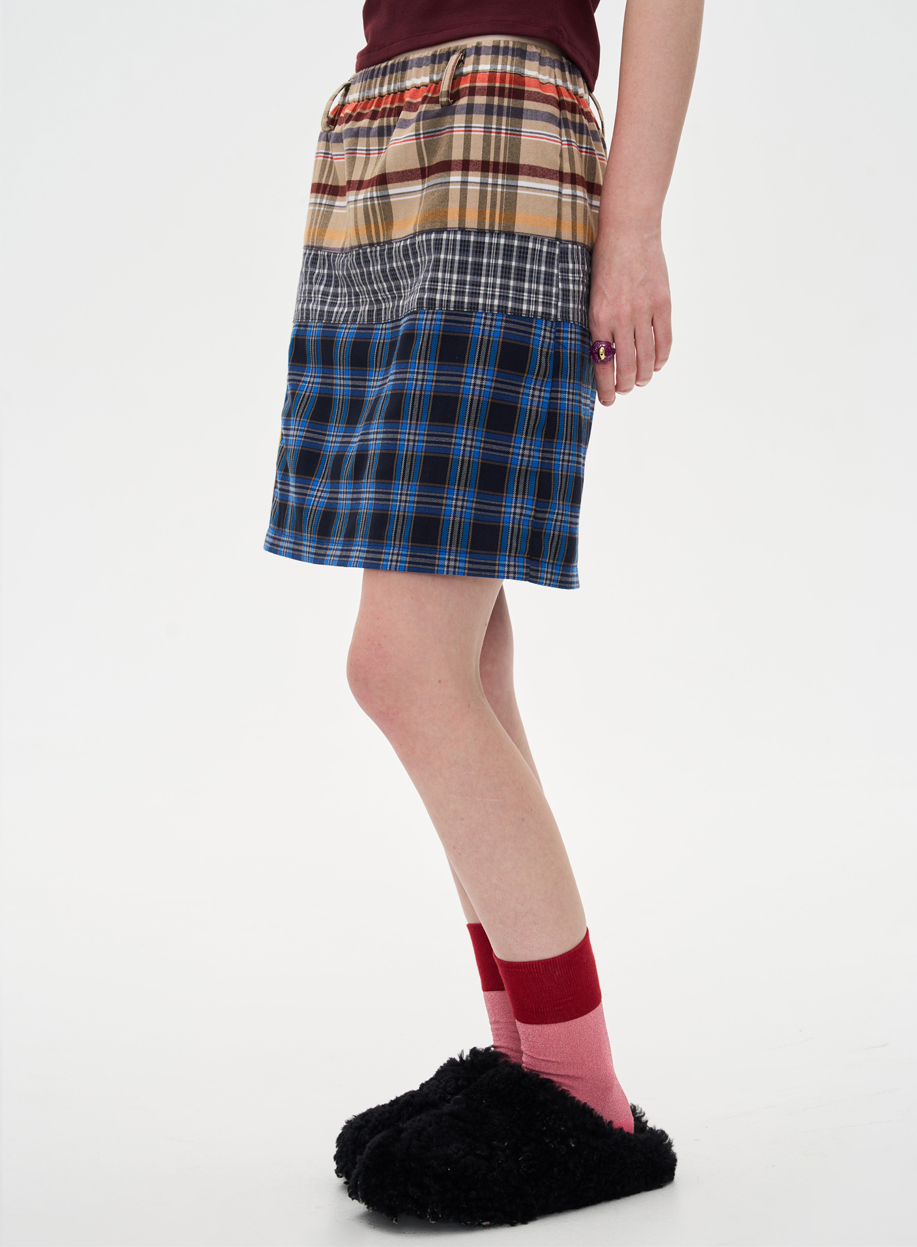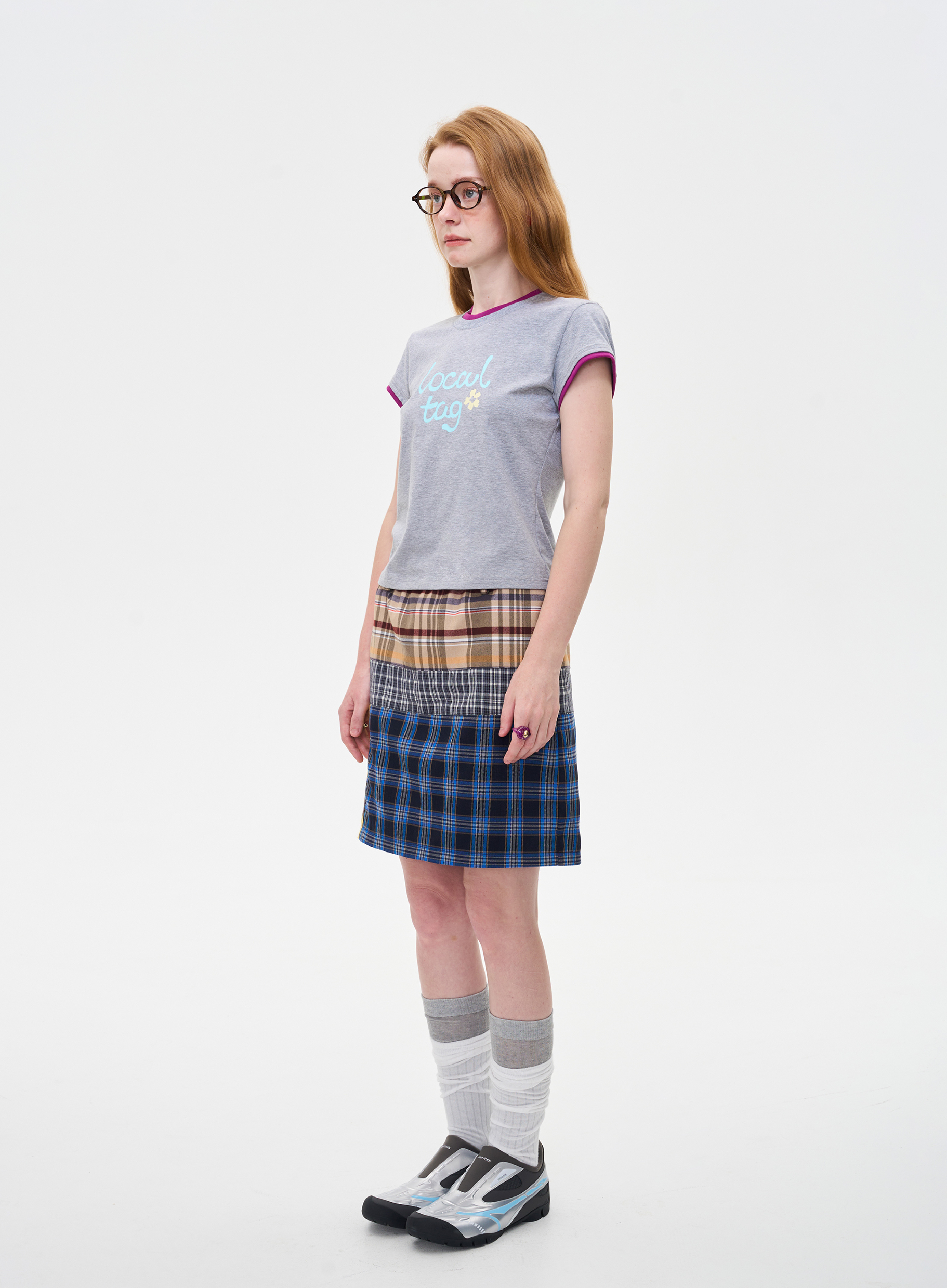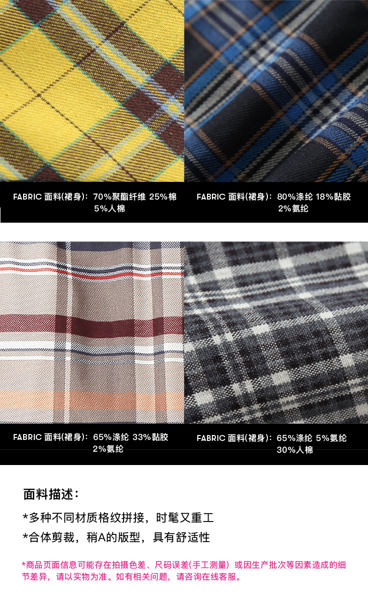 local tag/It24ssk18/格纹面料拼接重工时髦短裙