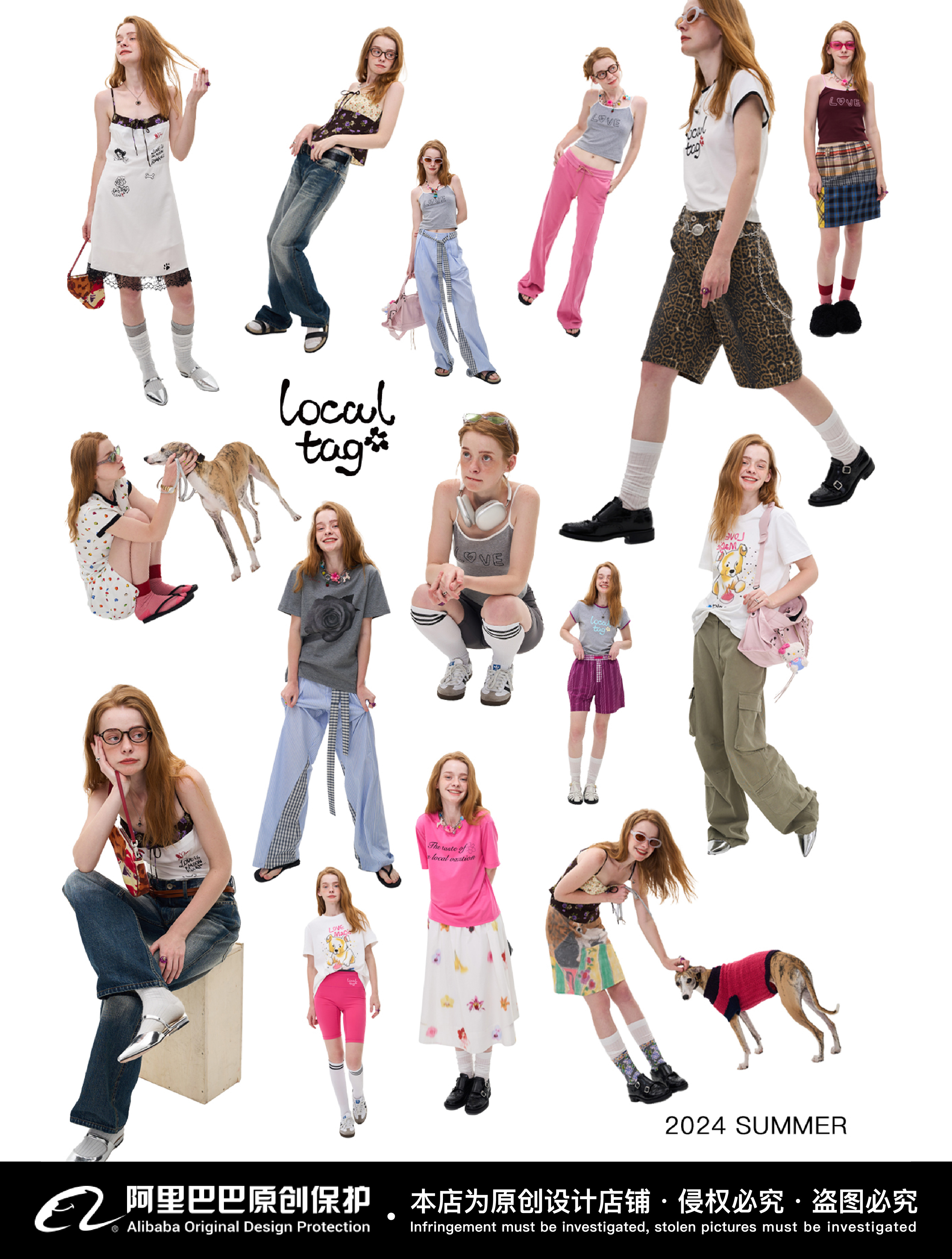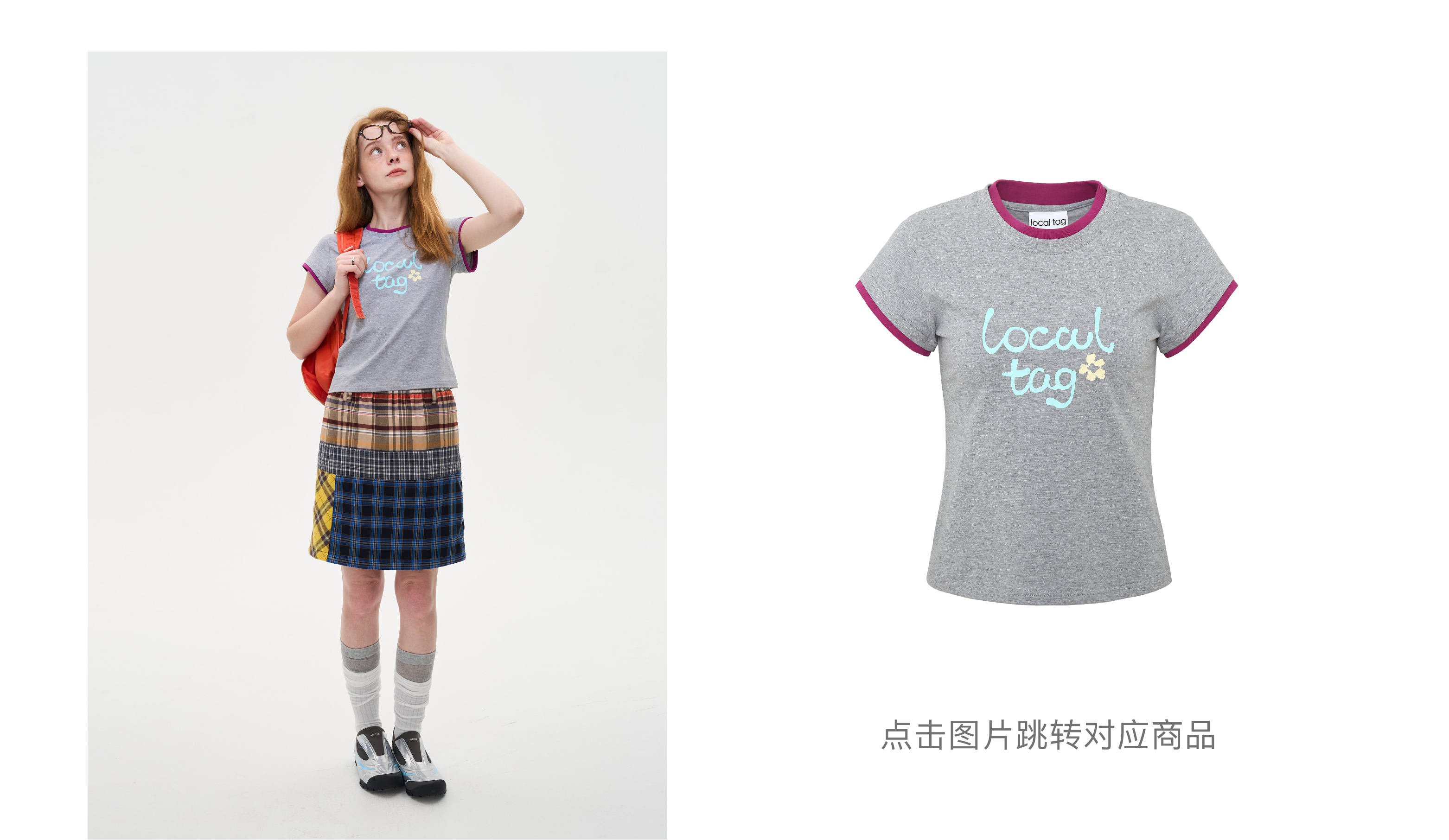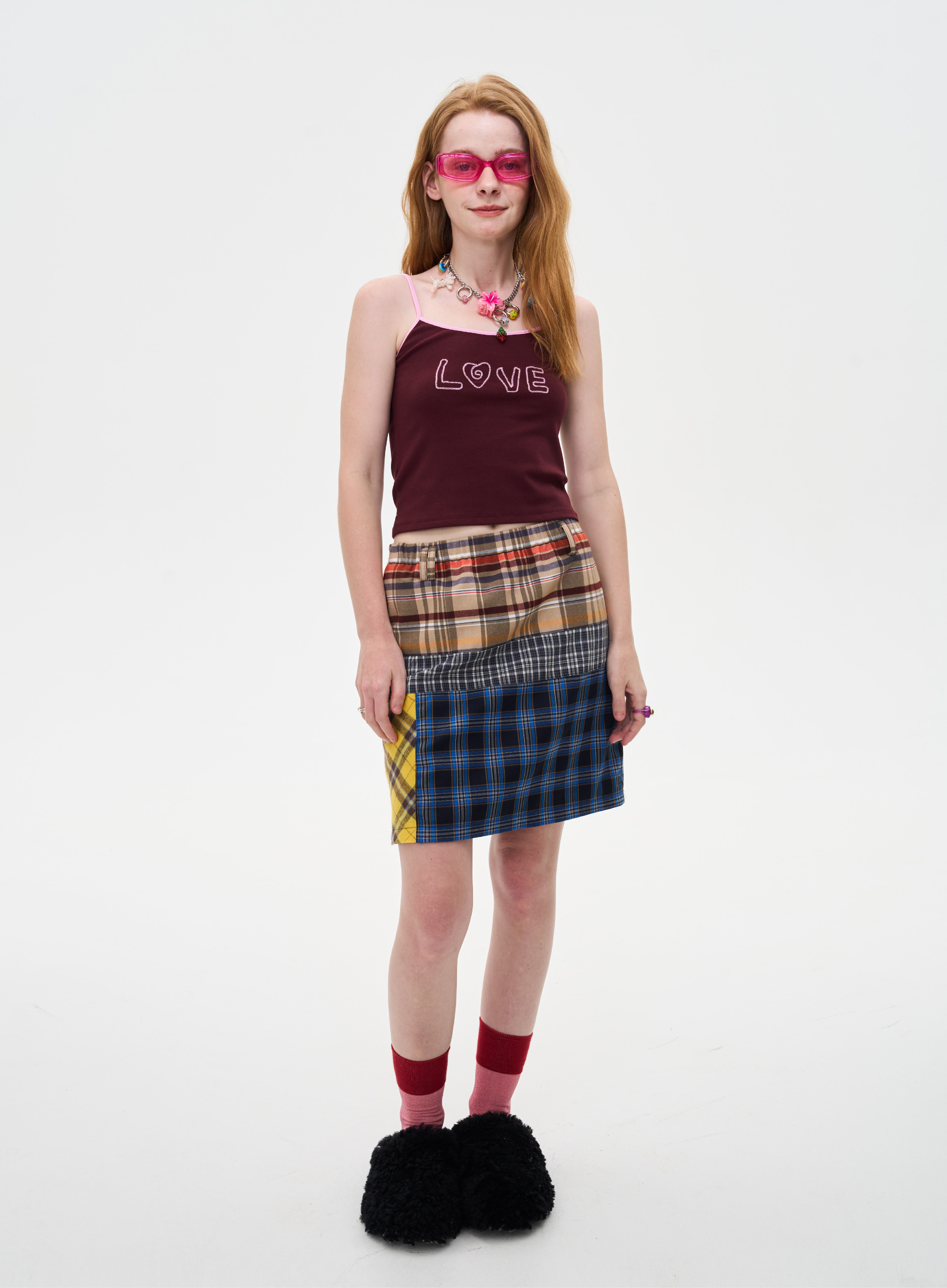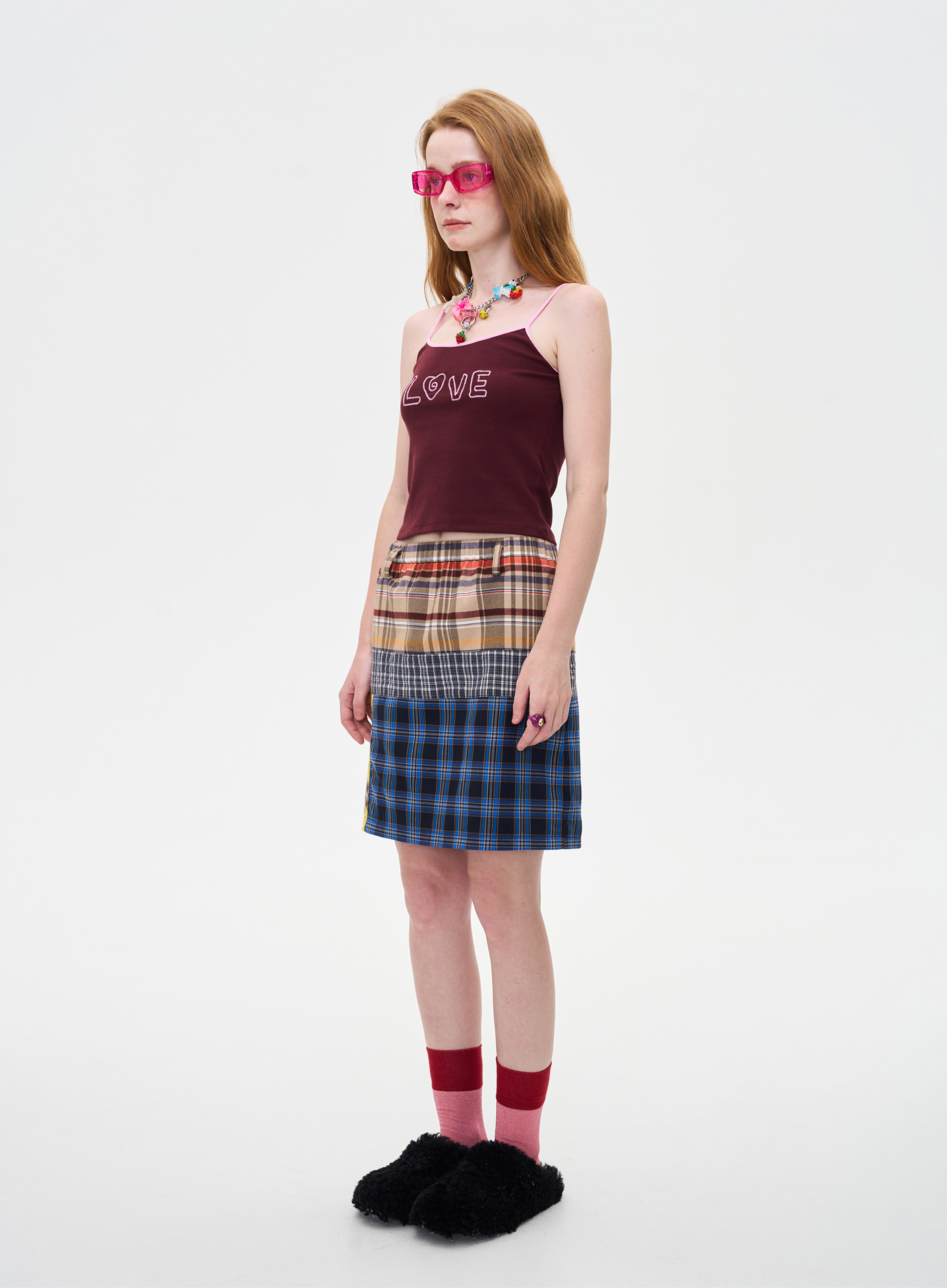 local tag/It24ssk18/格纹面料拼接重工时髦短裙