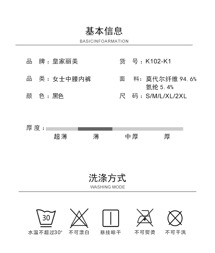 皇家丽美莫代尔女士内裤女蕾丝纯棉裆中腰轻薄舒适透气三角短裤女K102-K1
