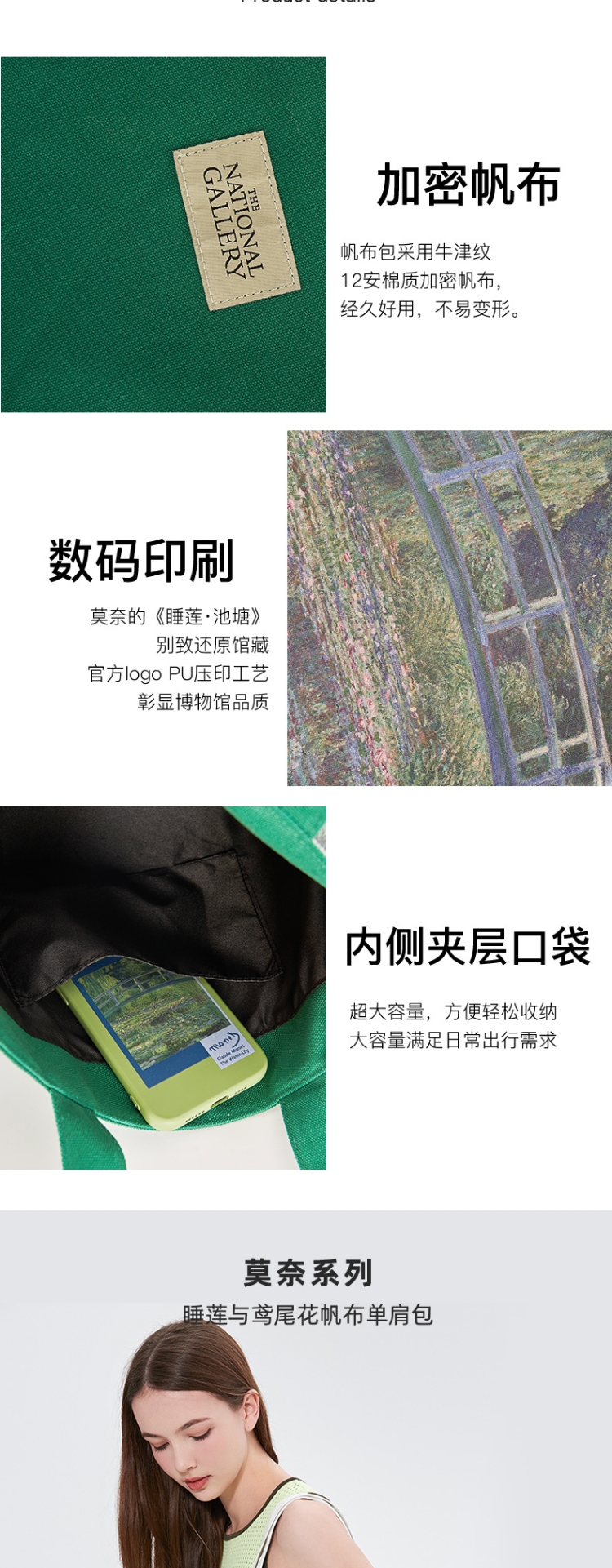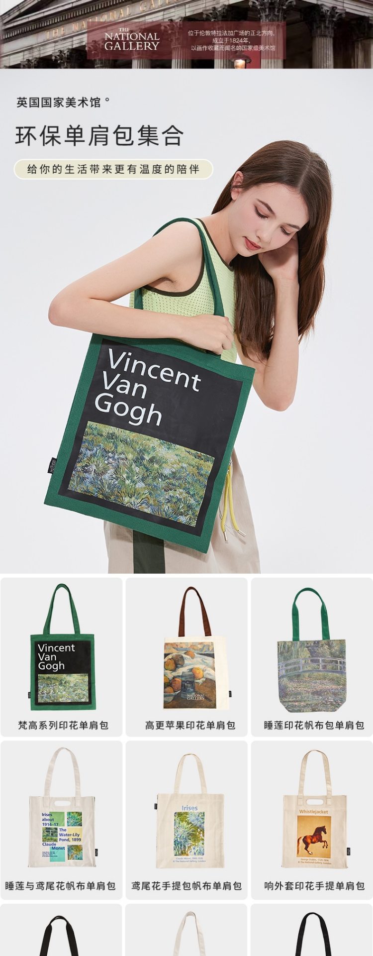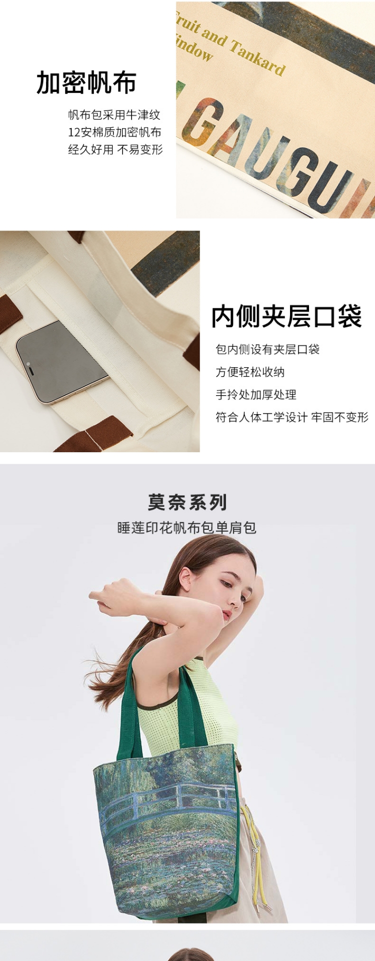 The National Gallery馆藏系列 印象派时尚休闲帆布包单肩包