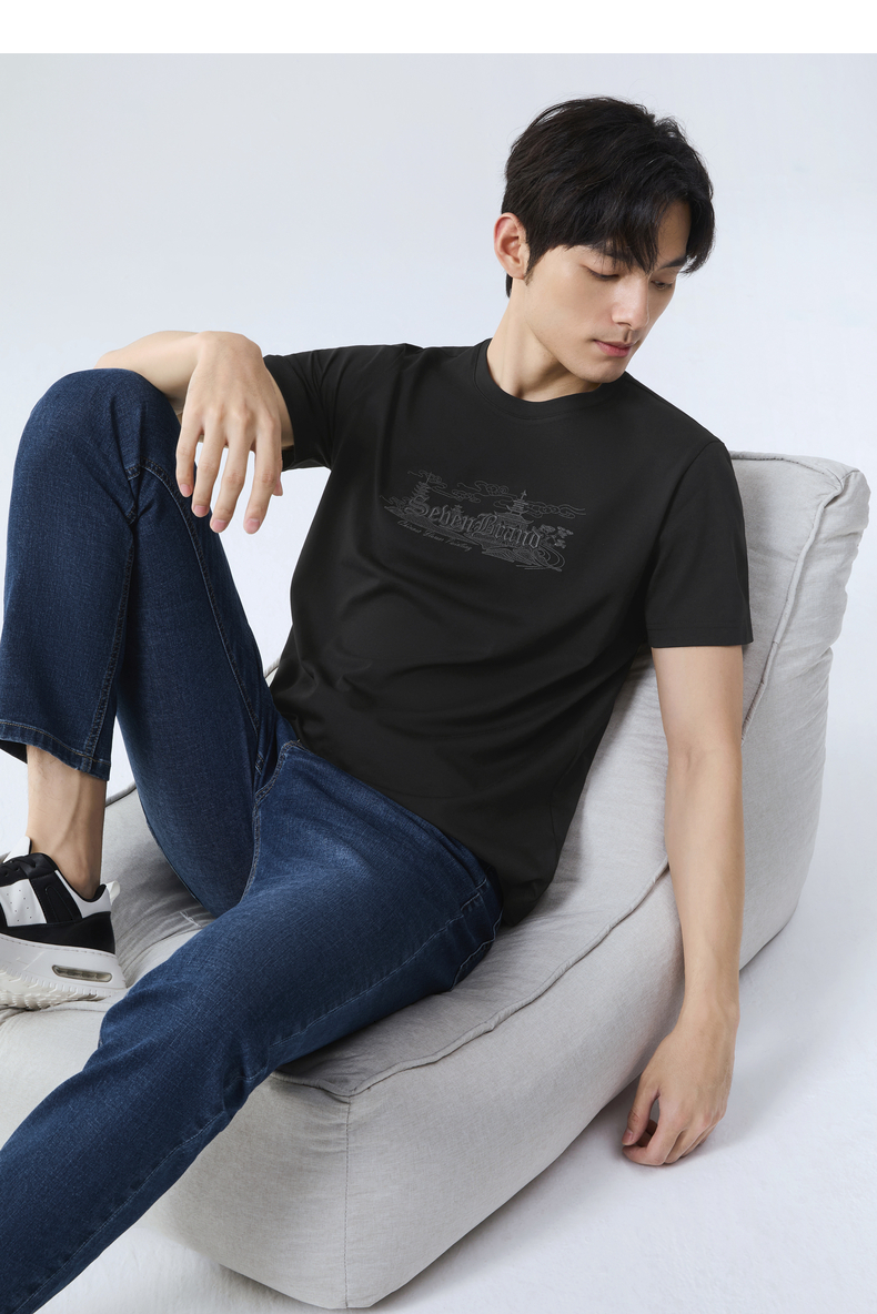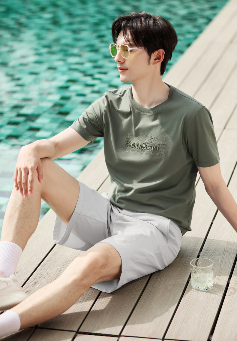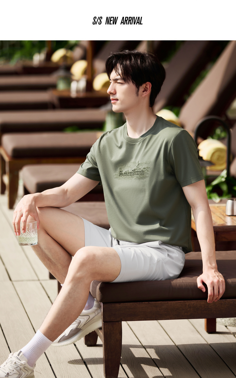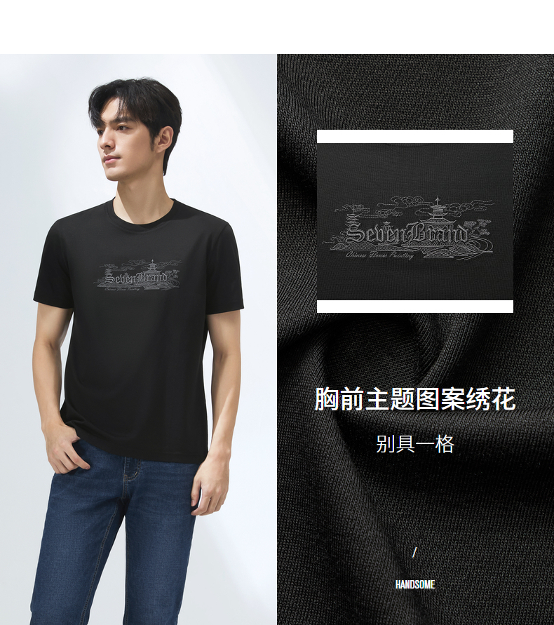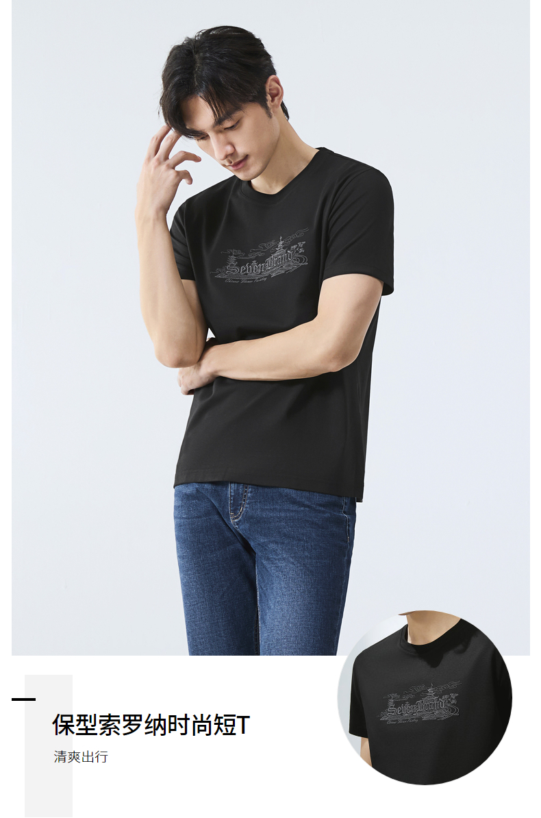 【保型索罗纳】柒牌短袖T恤男夏季新品时尚绣花休闲百搭圆领上衣128T70780