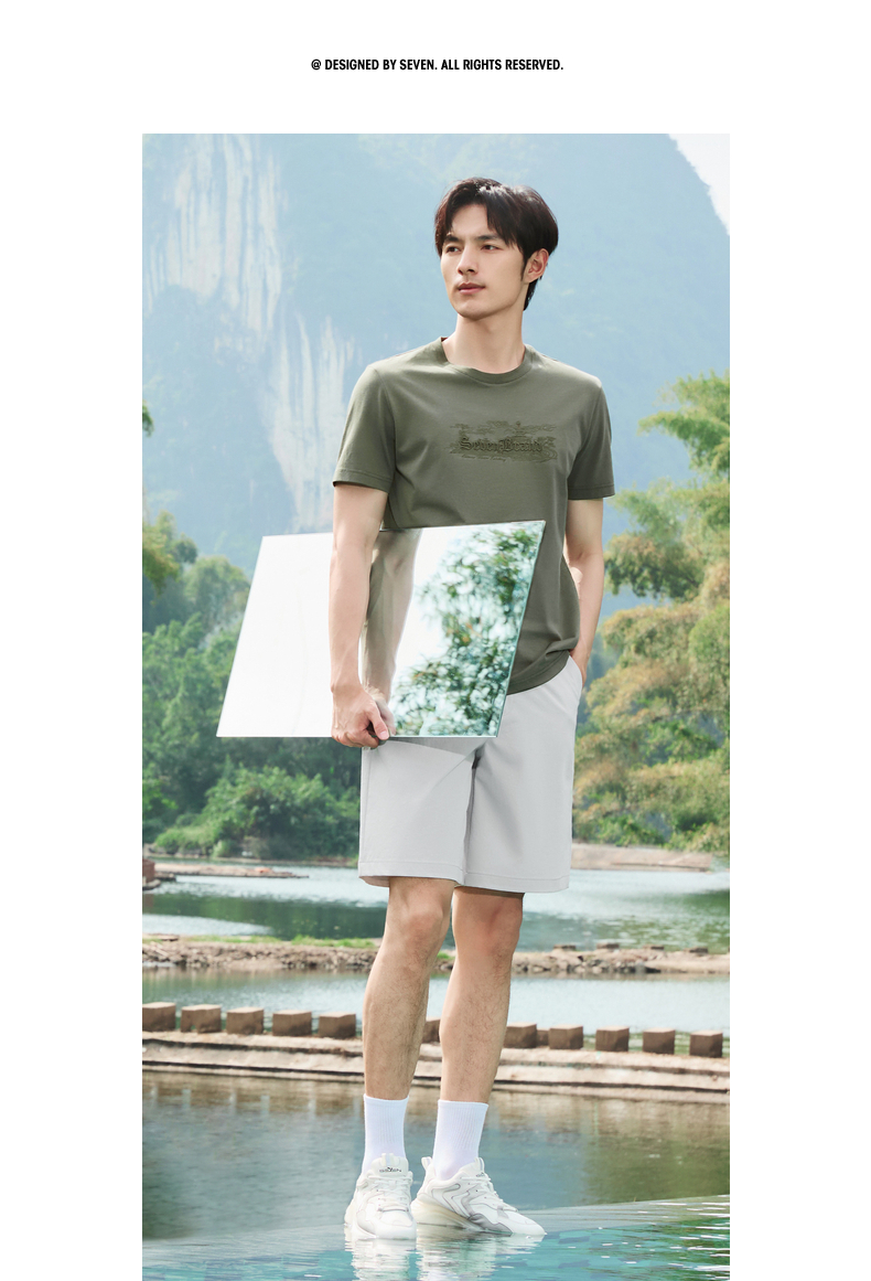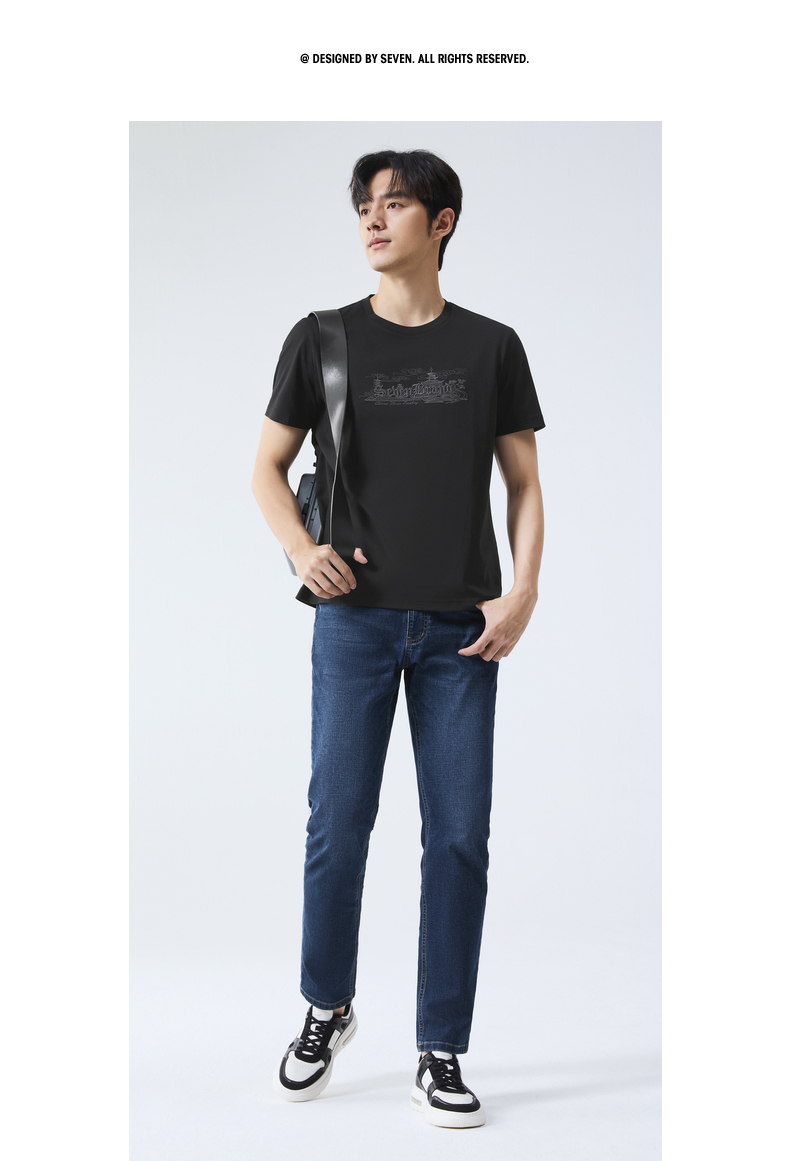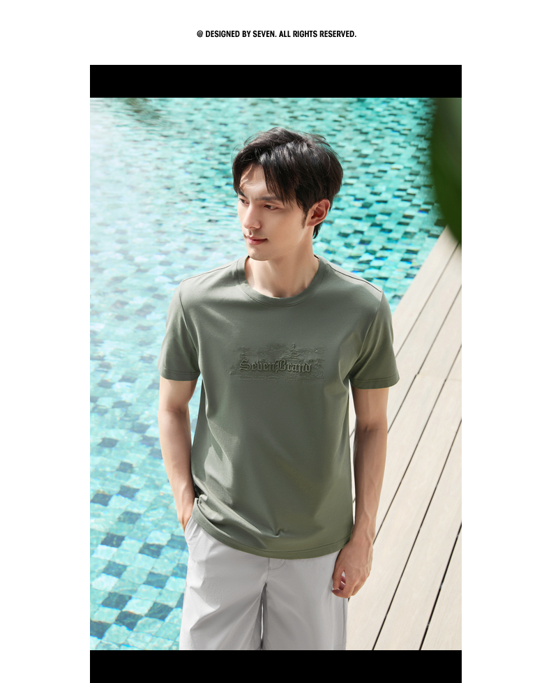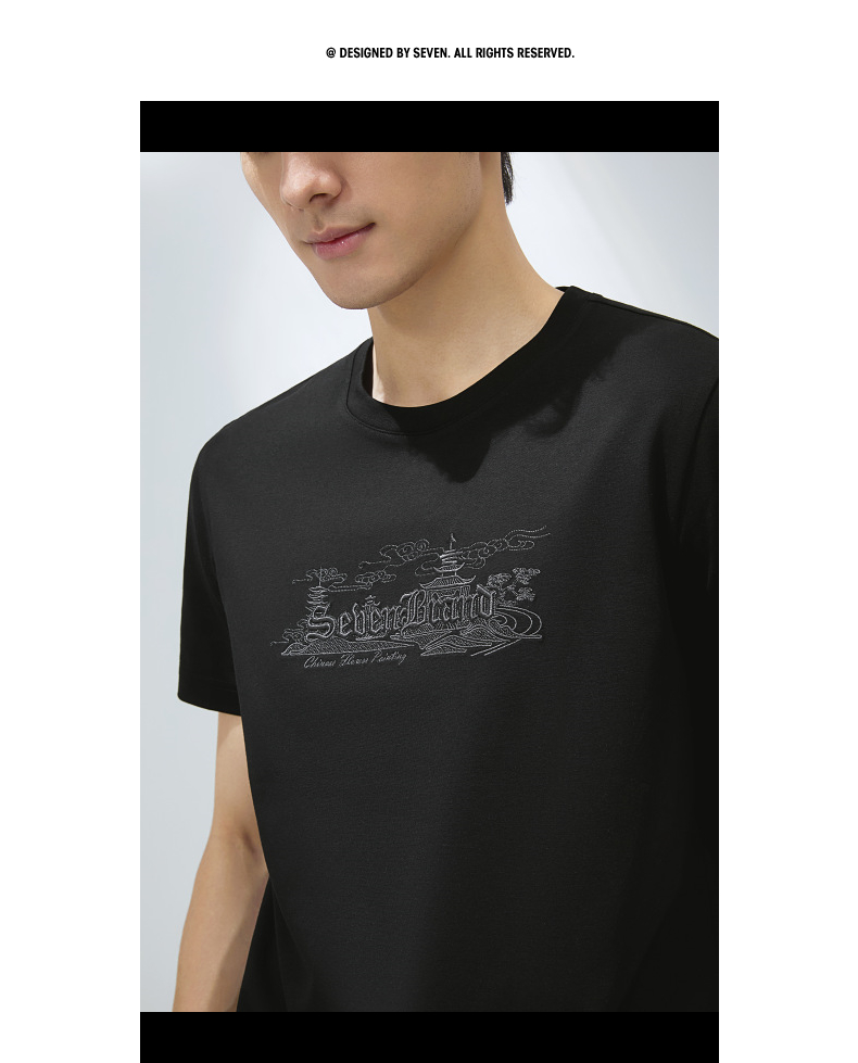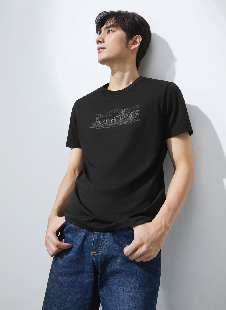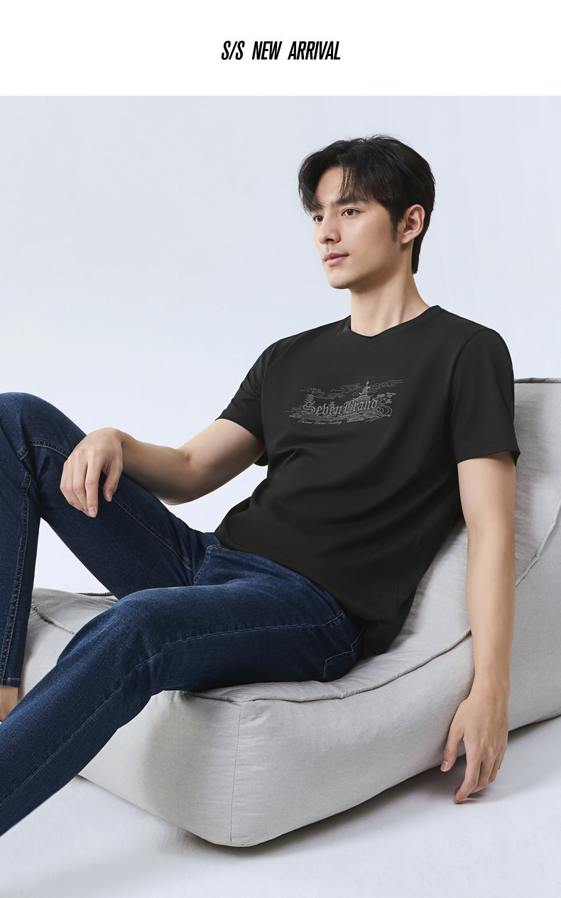 【保型索罗纳】柒牌短袖T恤男夏季新品时尚绣花休闲百搭圆领上衣128T70780