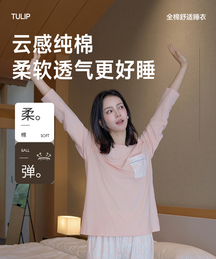 全棉舒适亲肤睡衣(圆领)