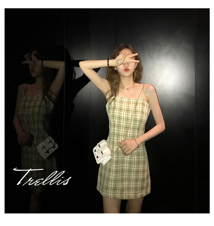 2022春夏季新款韩版牛油果绿色连衣裙女chic温柔吊带裙短款仙女