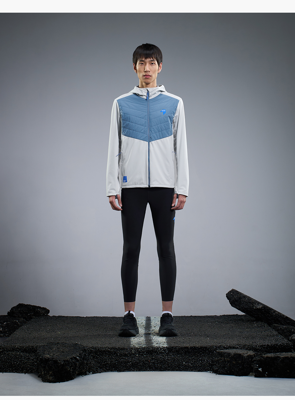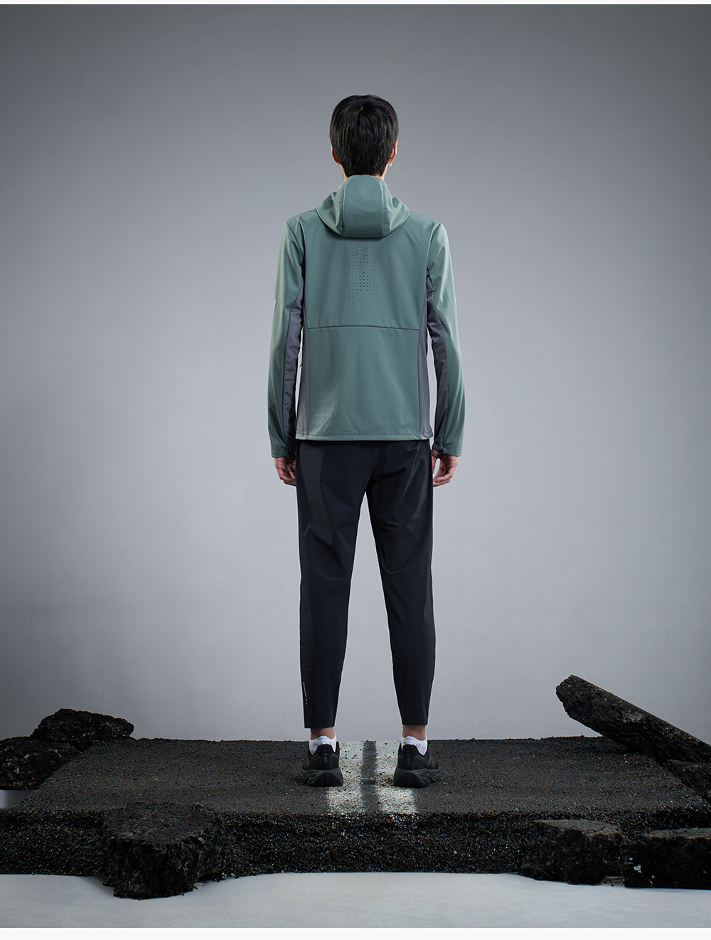 内道拼接带帽软壳男士防风透气马拉松训练比赛跑步外套