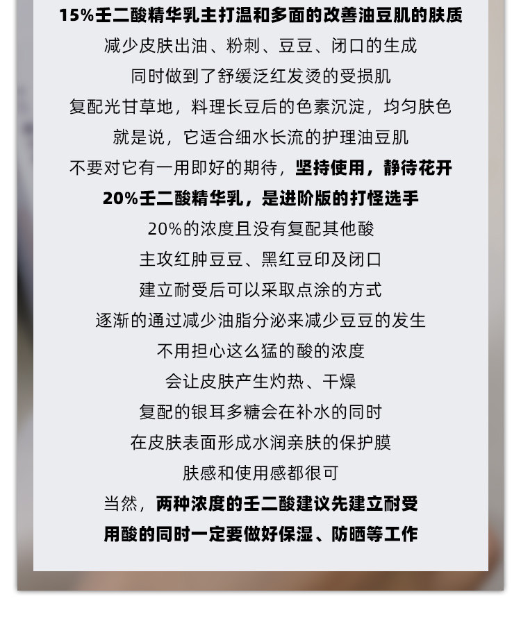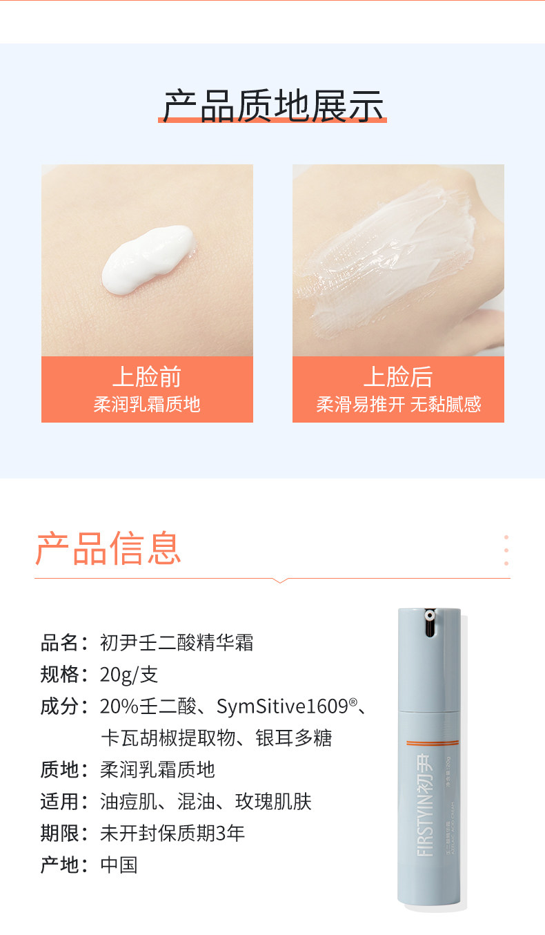 初尹20%壬二酸光甘草定精华乳霜15% 温和祛痘提亮控油敏感肌