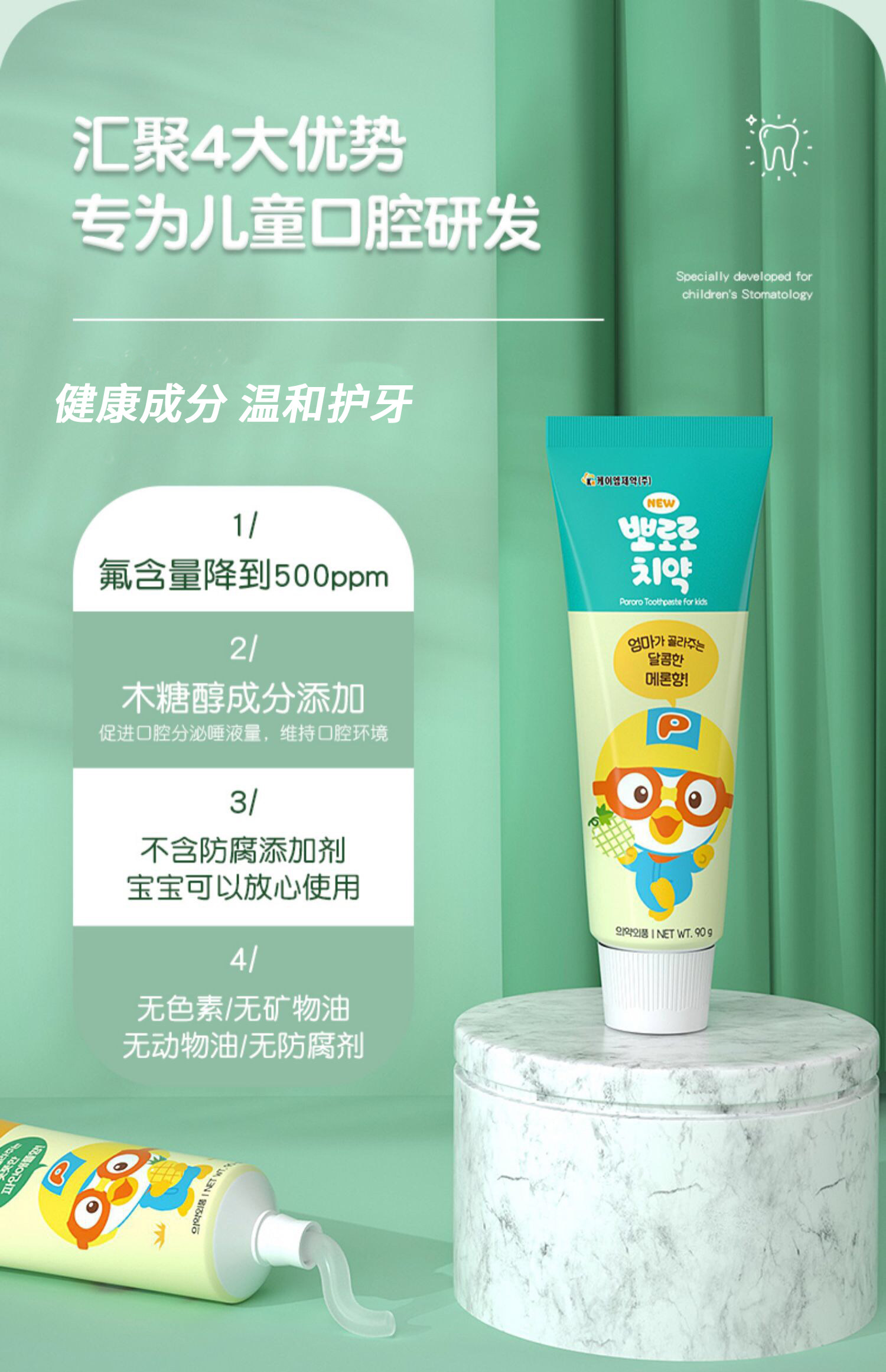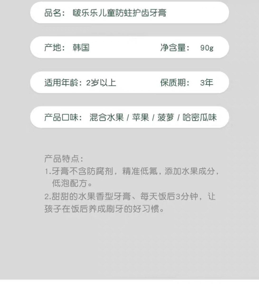 【国内现货】【中文包装】啵乐乐儿童牙膏新包装90g*4支 3岁+ 混合水果味