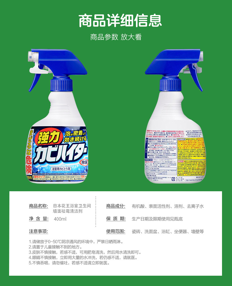 日本花王浴室清洁剂400ml/117640 防霉去霉斑除霉去渍