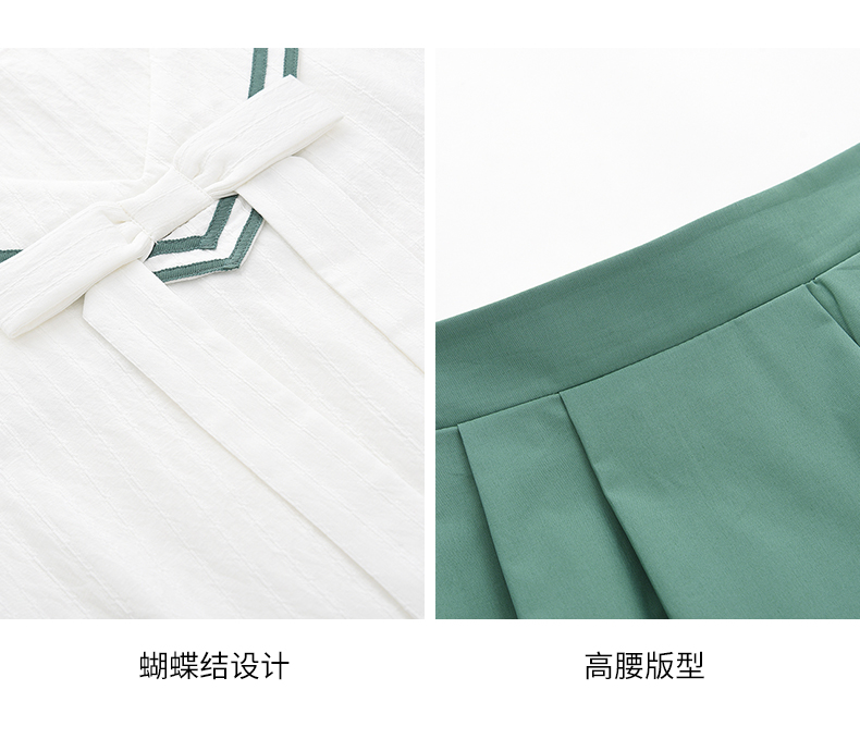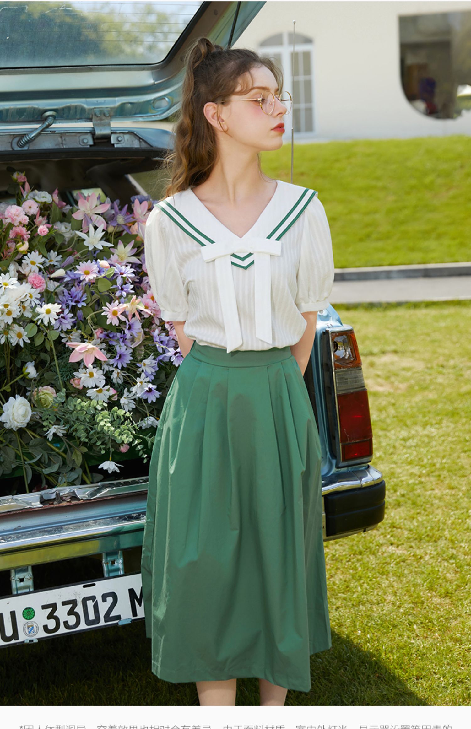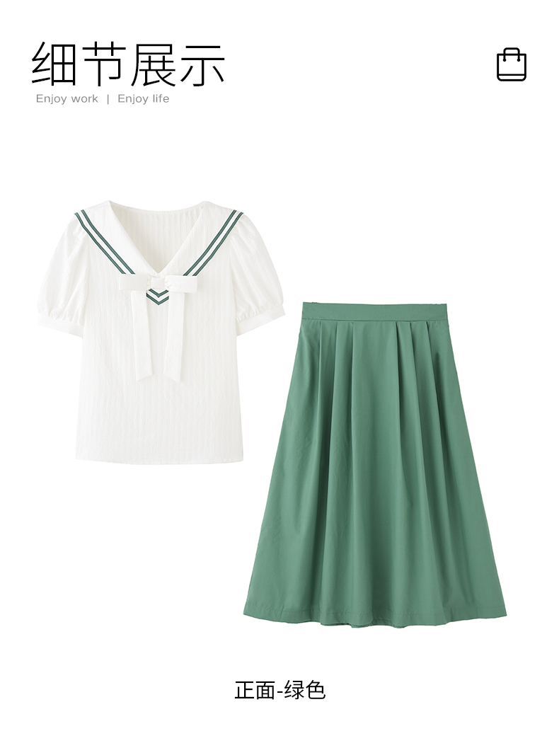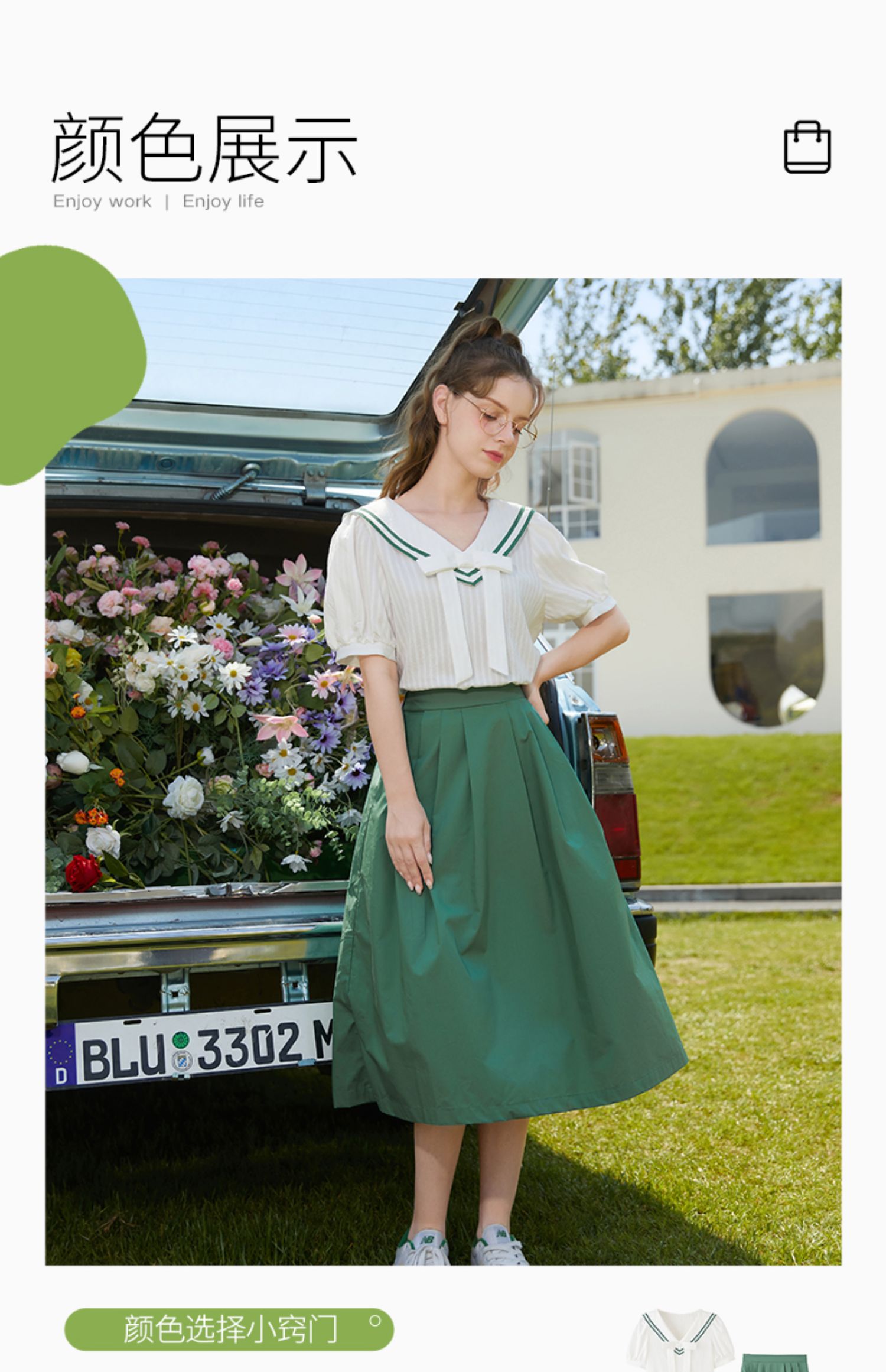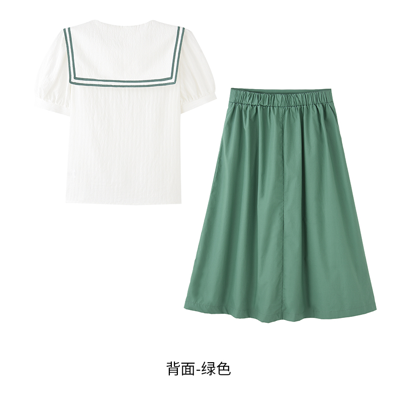 少女海军领V领短袖衬衫+A版半身裙套装2023新款夏装学院风洋气裙