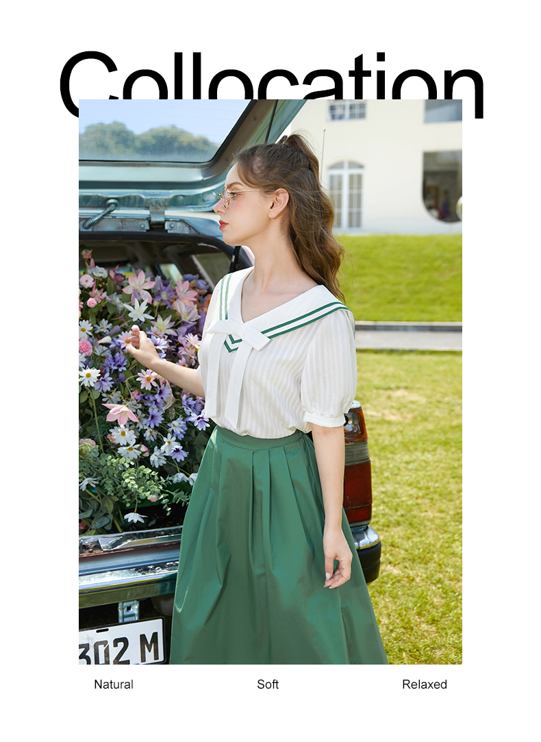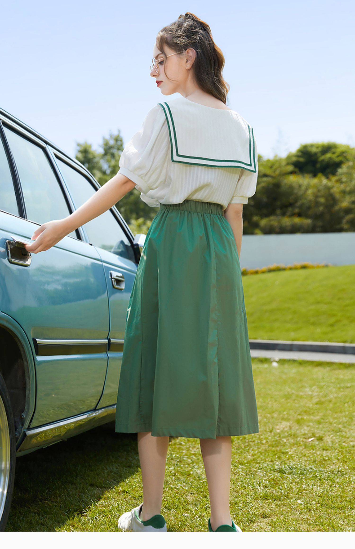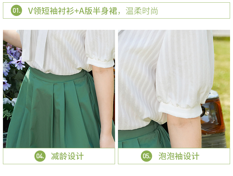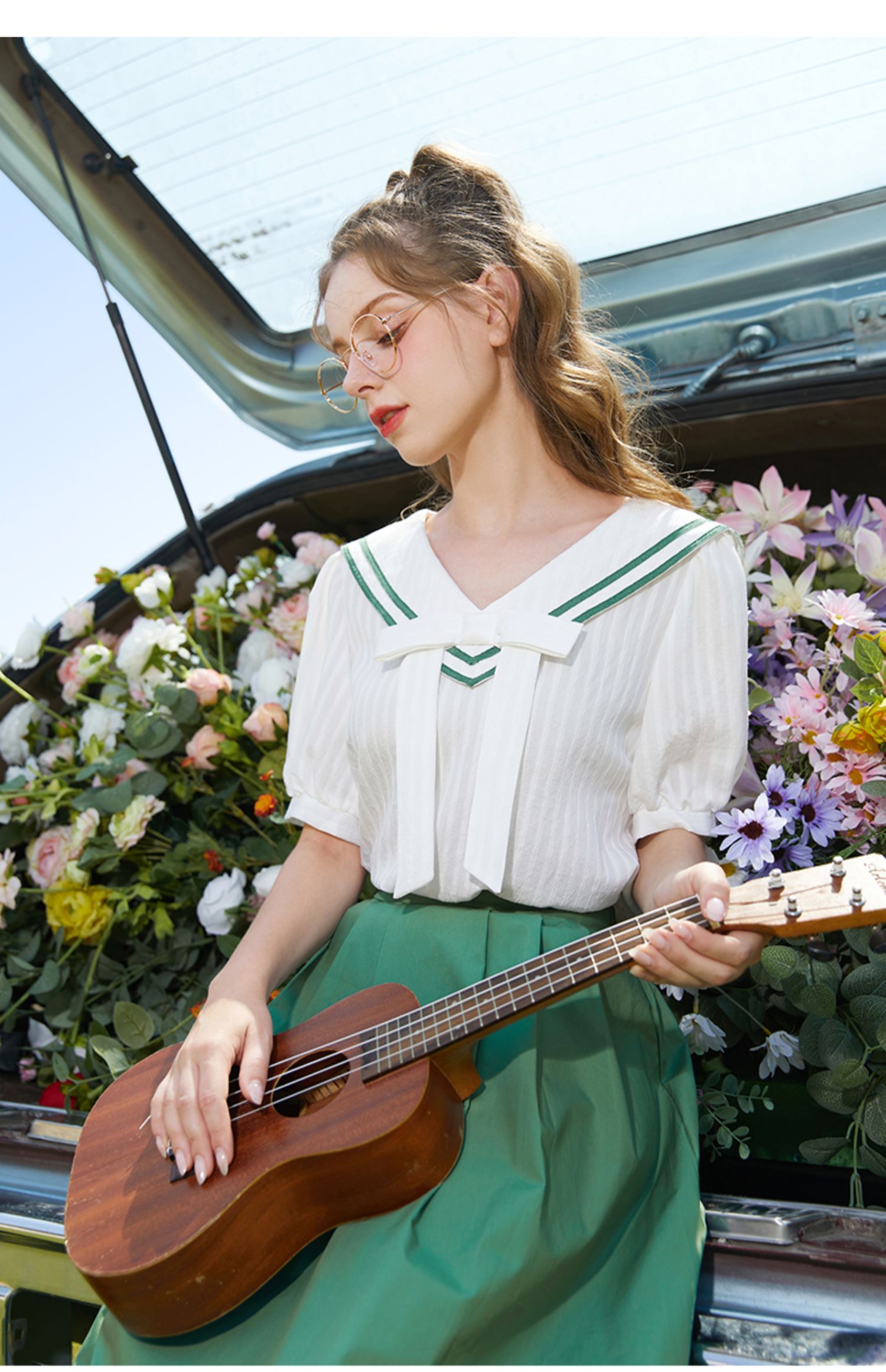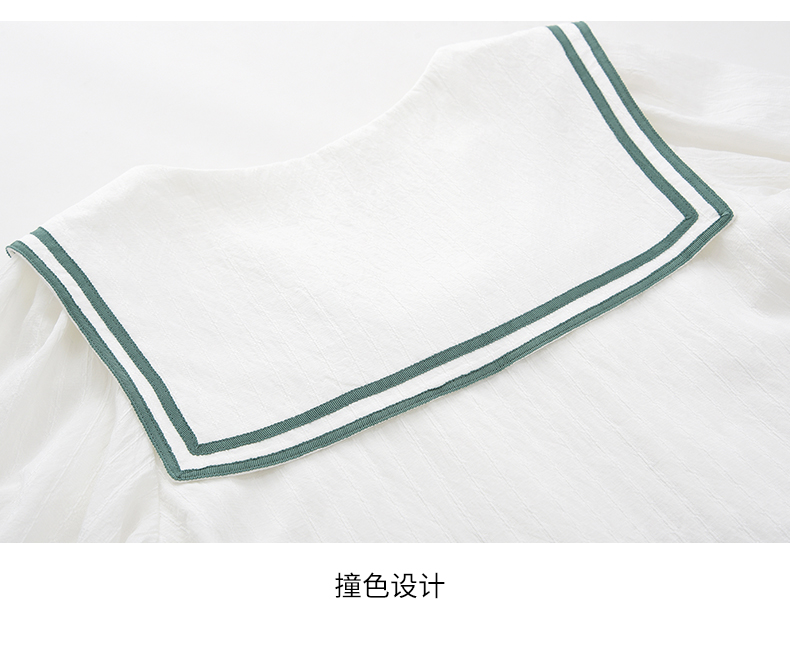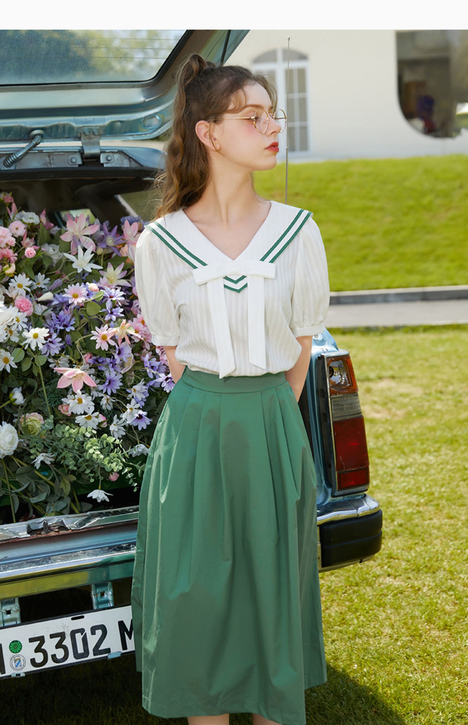 少女海军领V领短袖衬衫+A版半身裙套装2023新款夏装学院风洋气裙