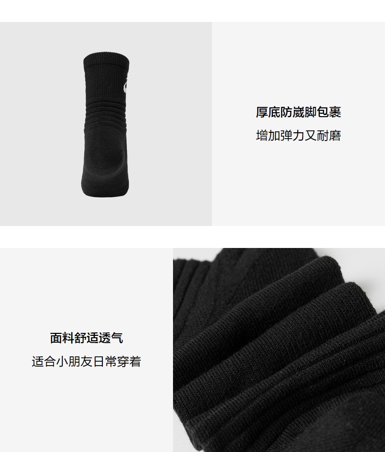 【三双装】ASICS/亚瑟士儿童四季新款干爽透气运动剪裁男女童袜子