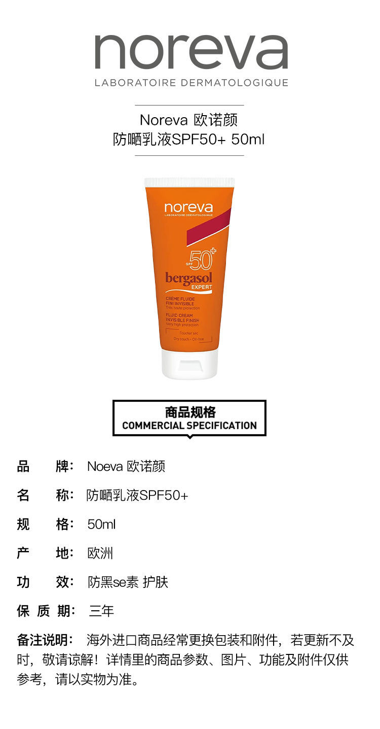【预售 急单慎拍】Noreva欧诺颜防嗮乳液50ml SPF50+