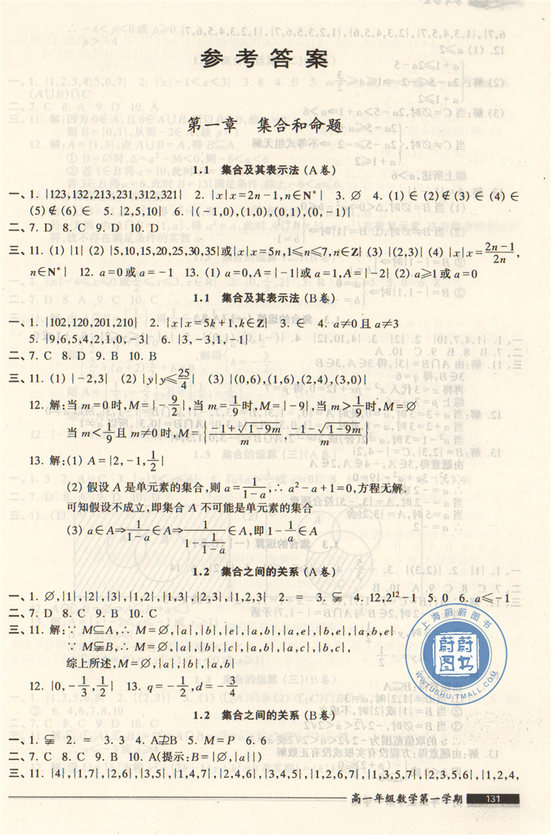 金牌一课一练 数学 试用本 高一年级第一学期/高1年级上 上海高中教材教辅 我能考第一