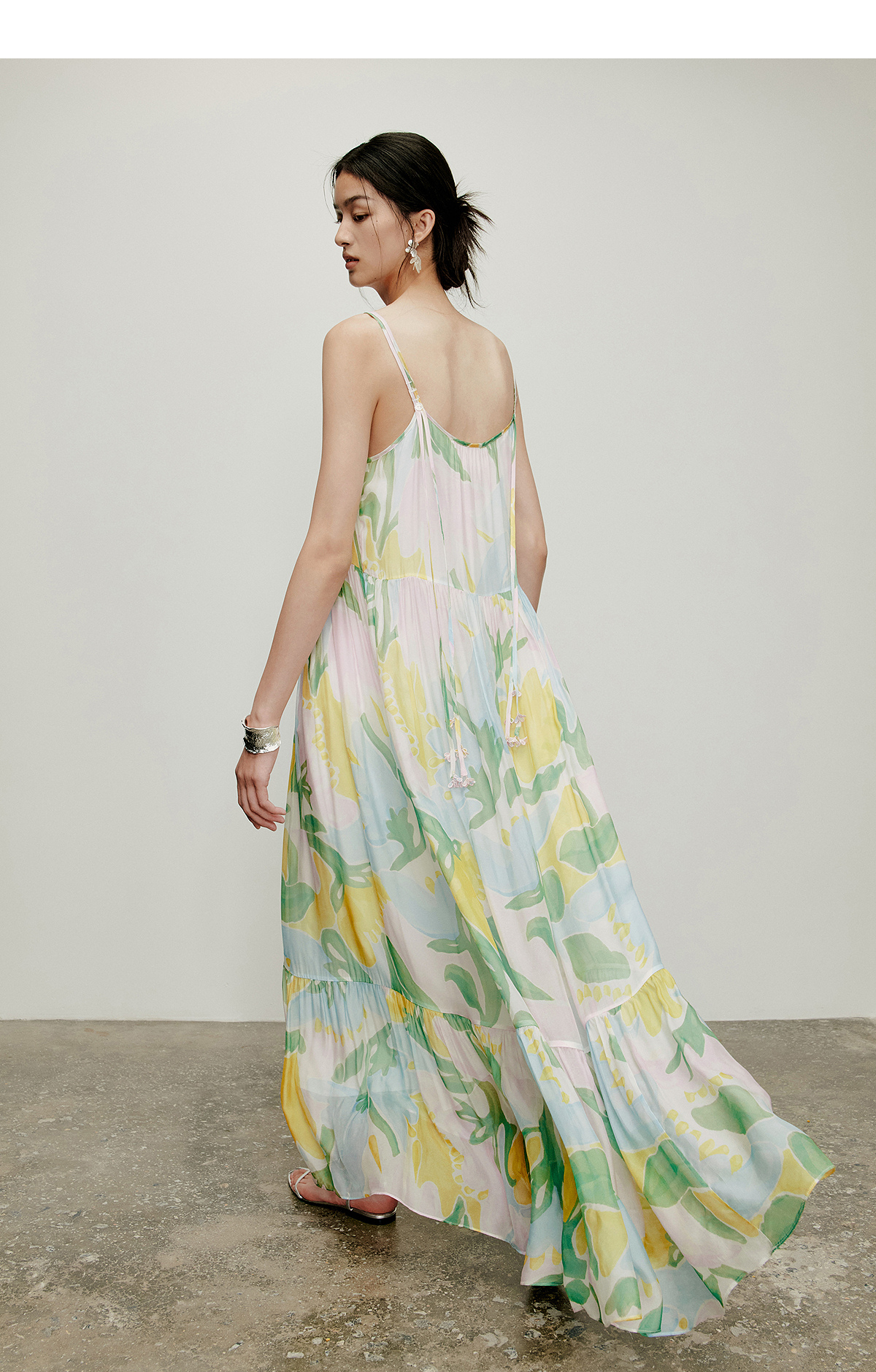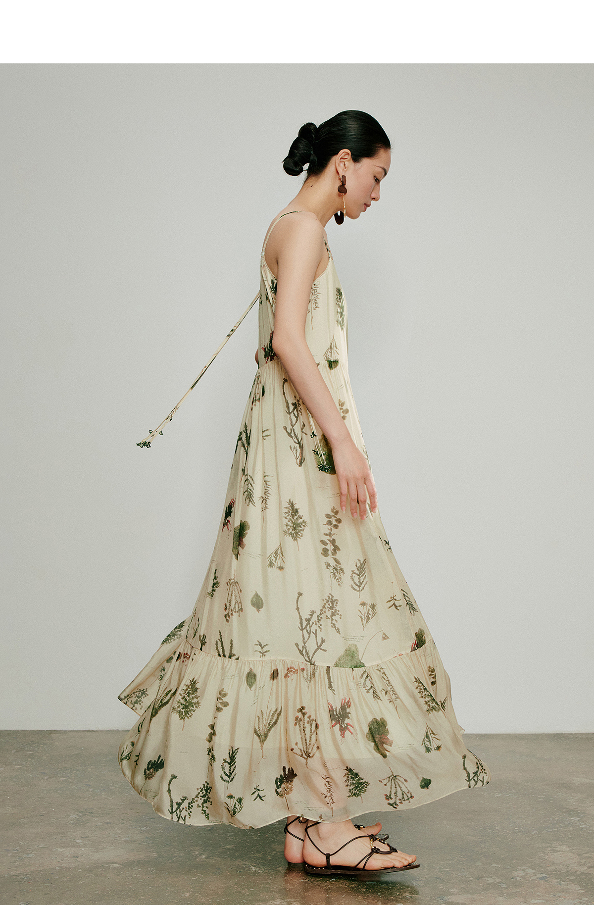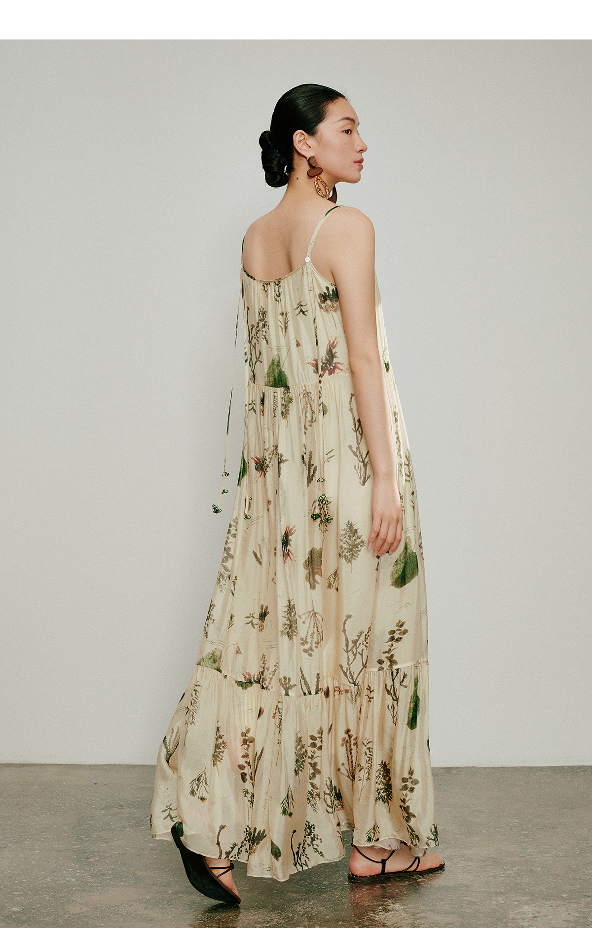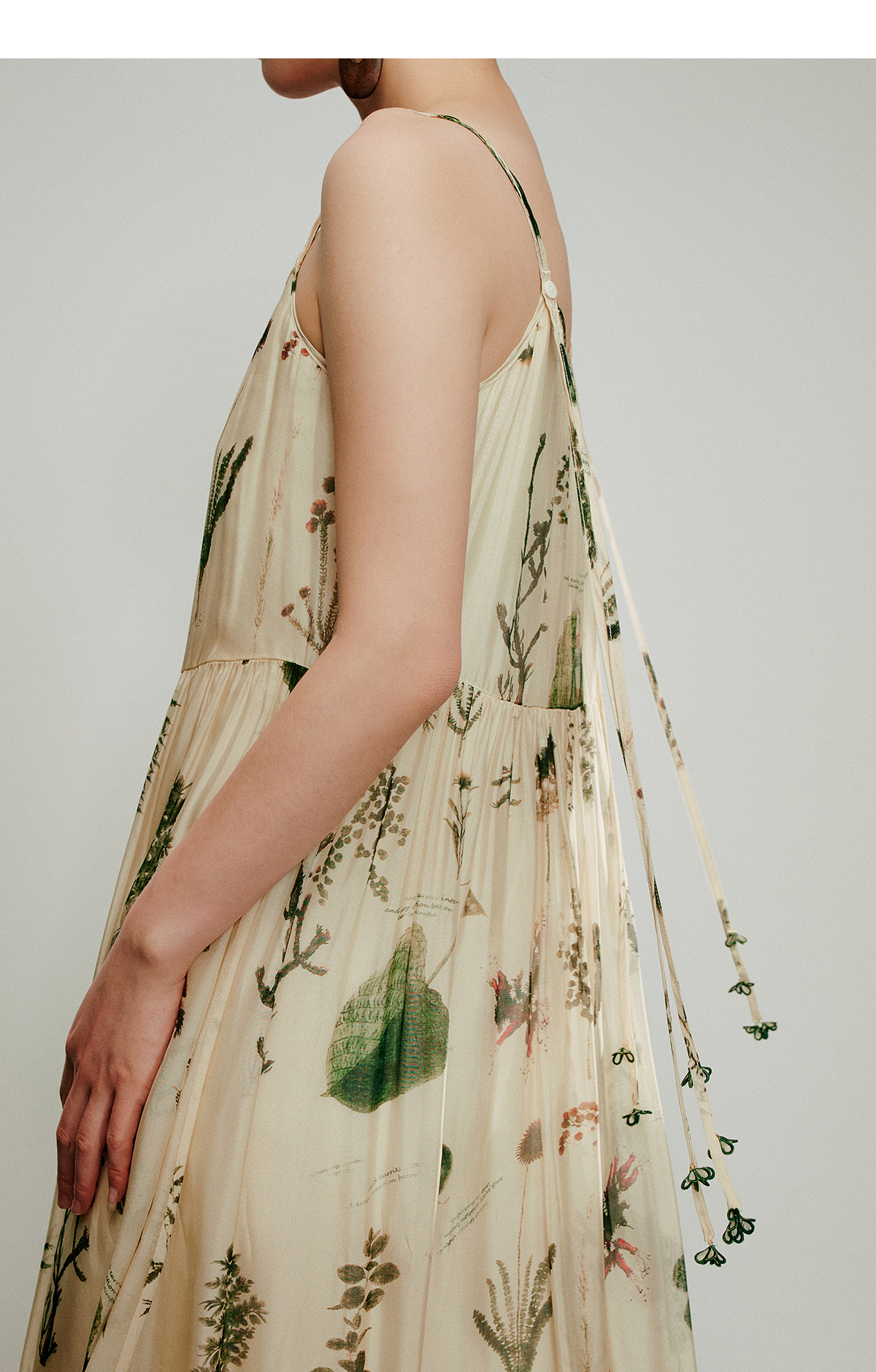 【林栖设计小店】手工系带|百搭多色温柔印花2026夏新款宽松吊带连衣裙1962187