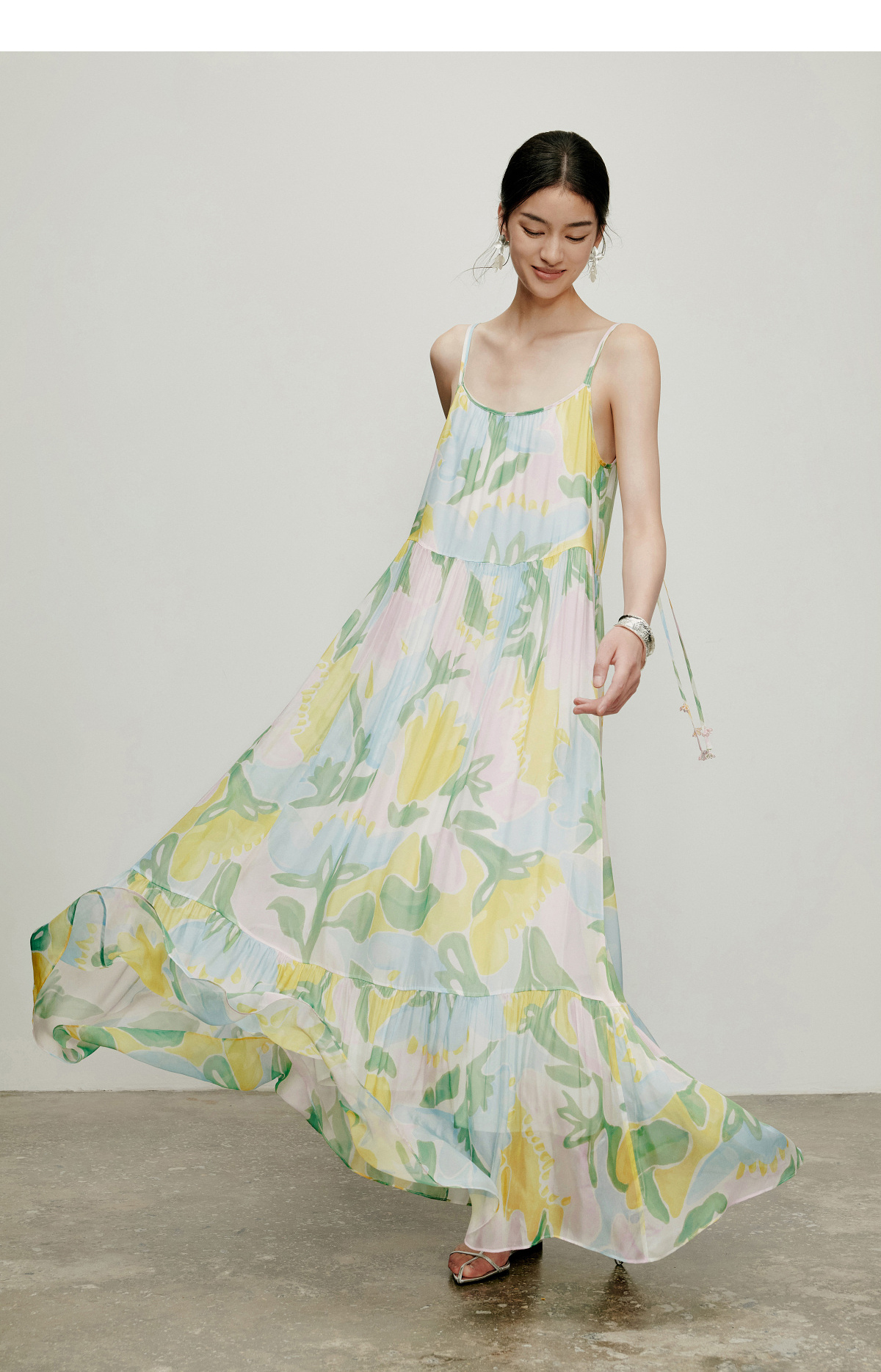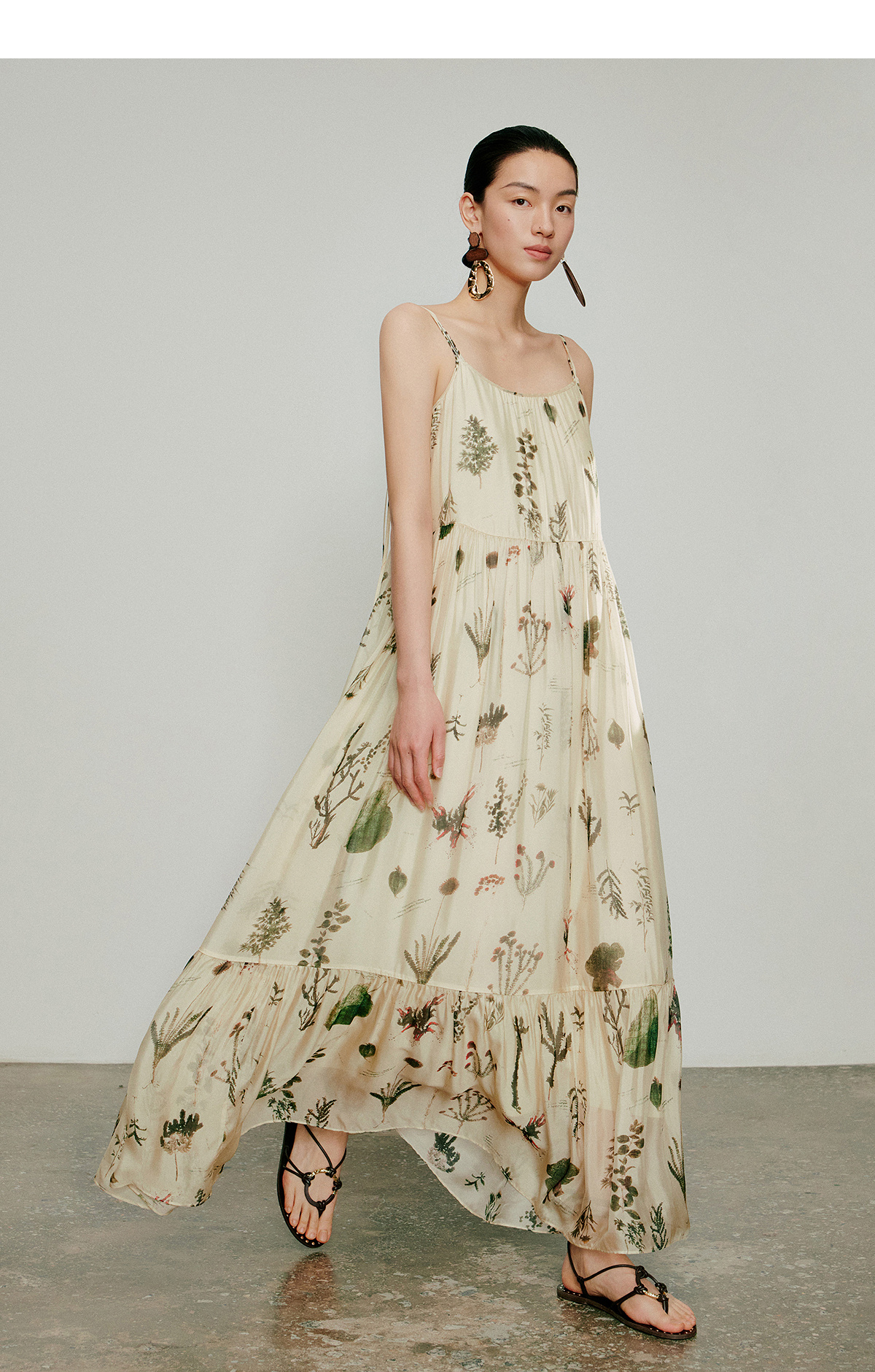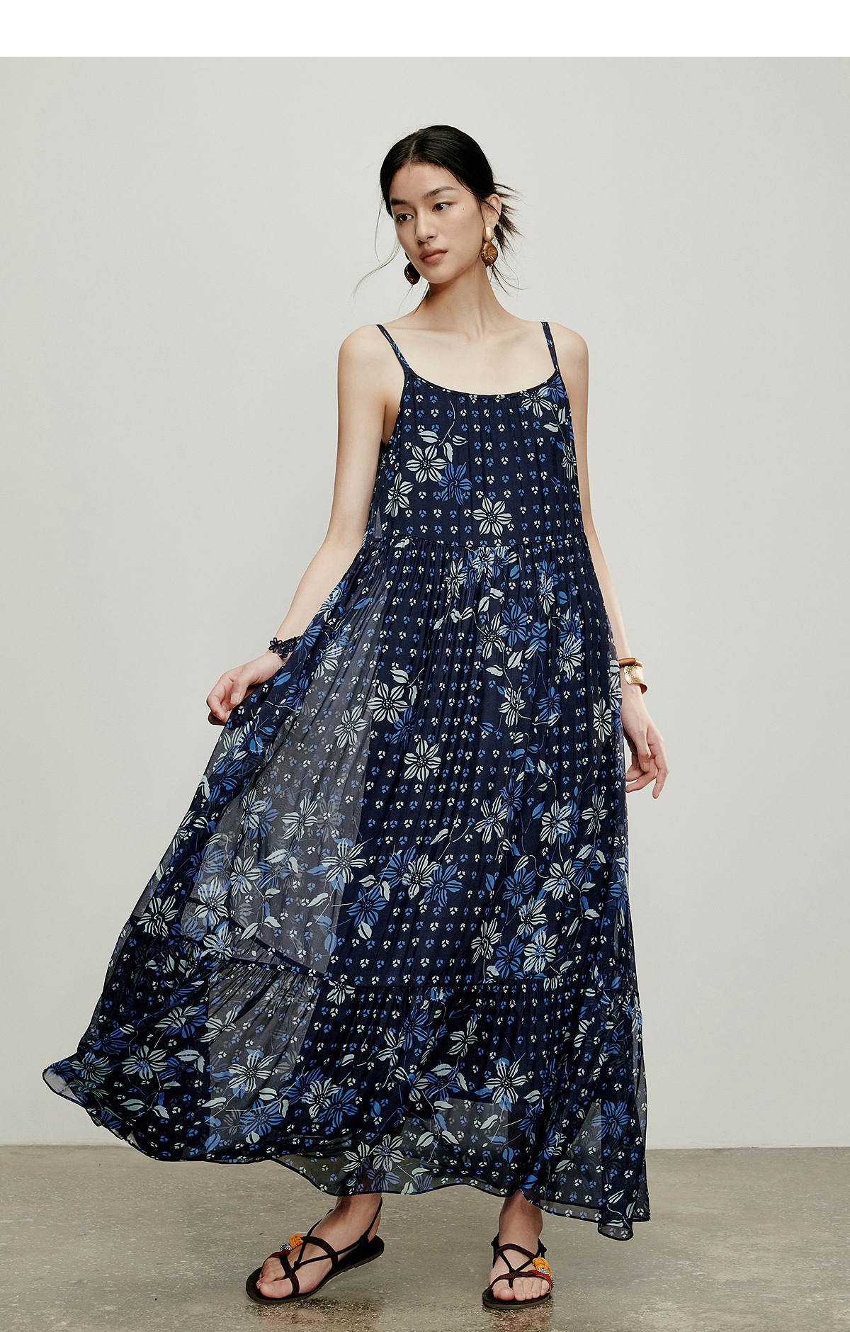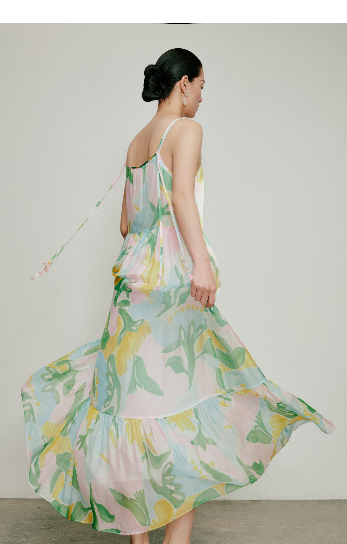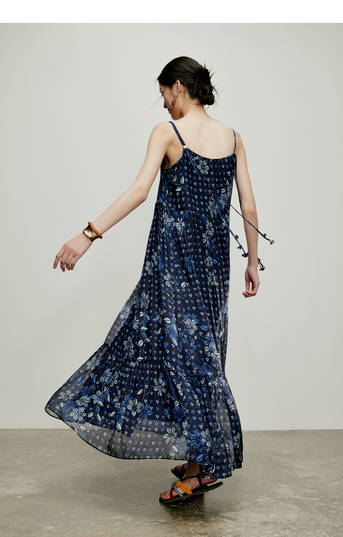 【林栖设计小店】手工系带|百搭多色温柔印花2026夏新款宽松吊带连衣裙1962187