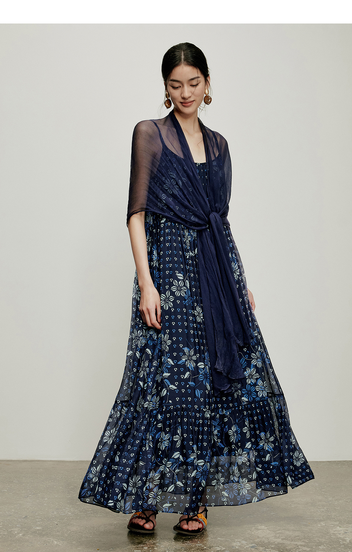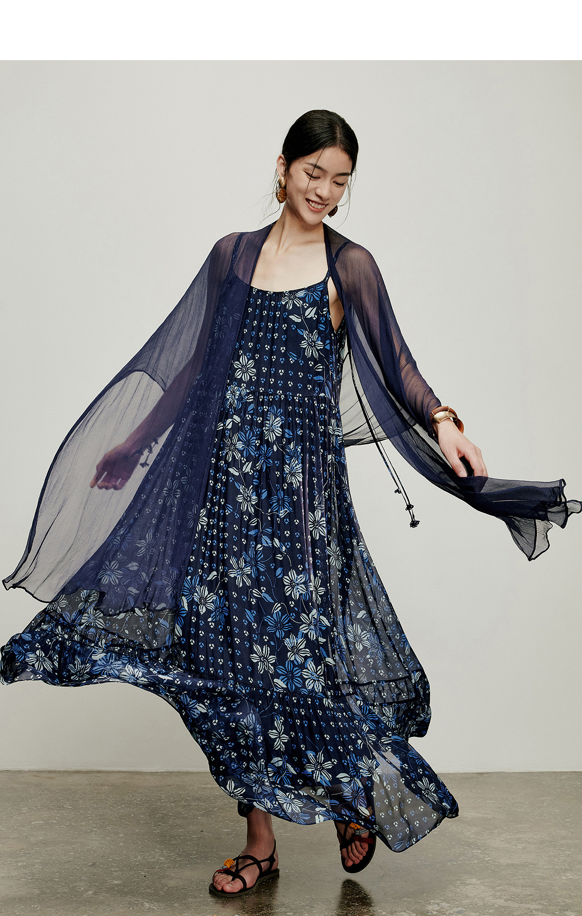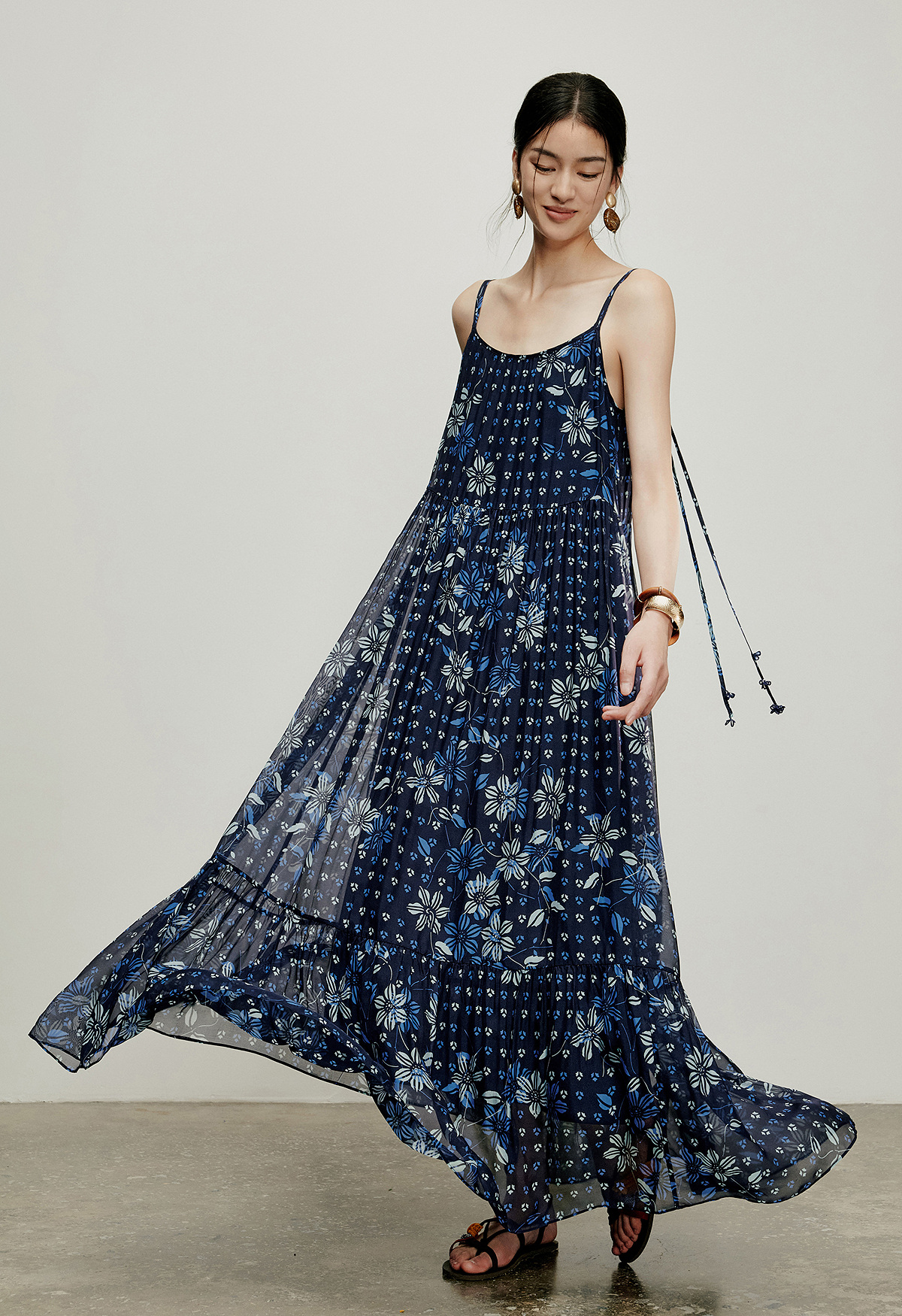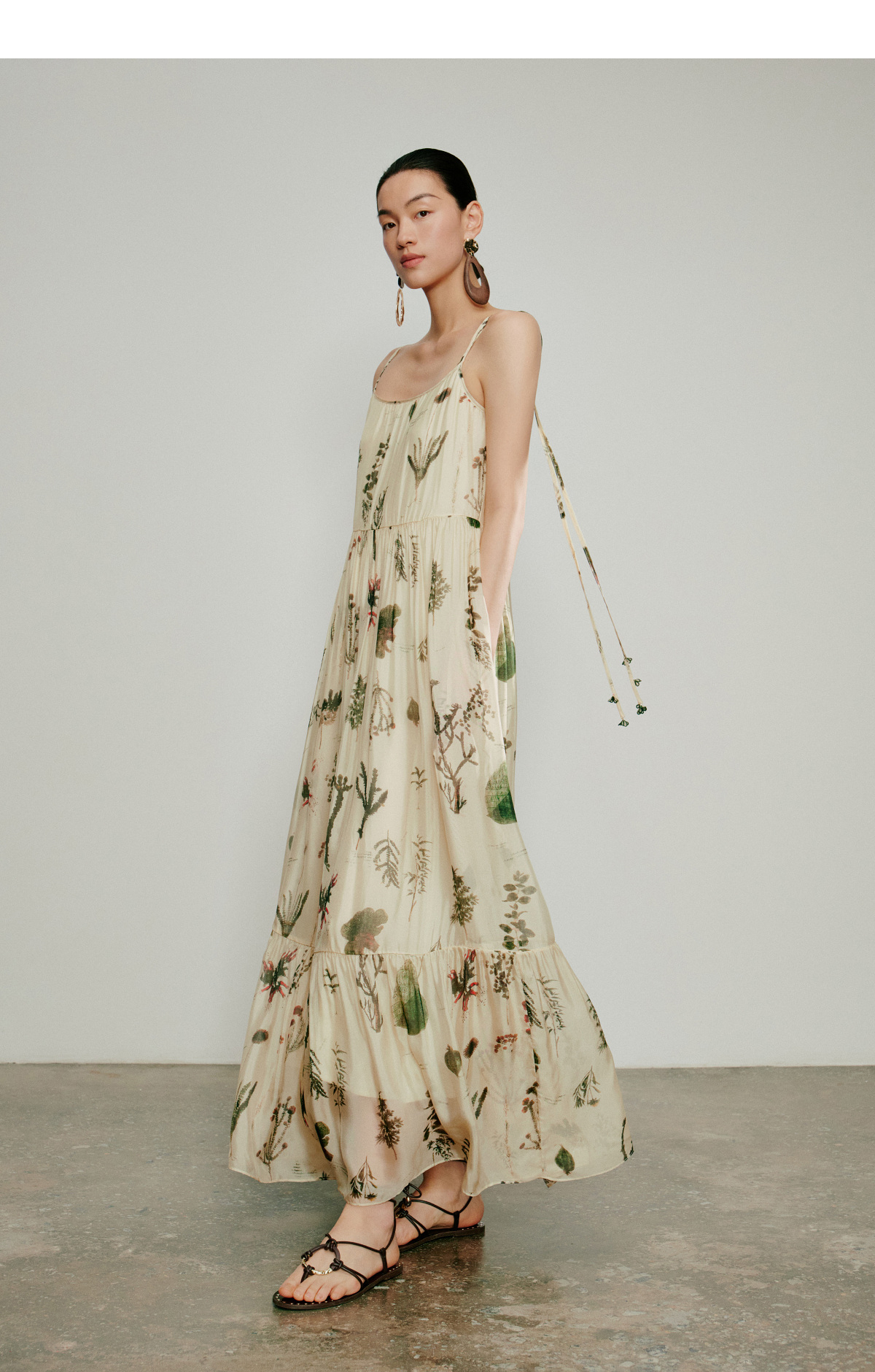 【林栖设计小店】手工系带|百搭多色温柔印花2026夏新款宽松吊带连衣裙1962187