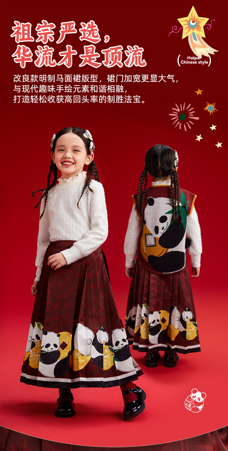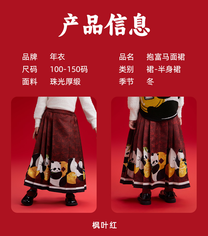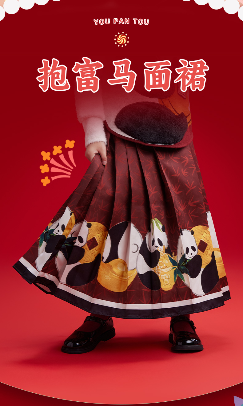 年衣童装女童马面裙新款儿童秋冬半身裙中式唐装汉服拜年服抱富马面裙
