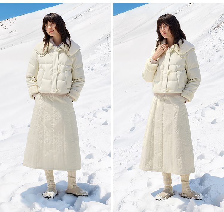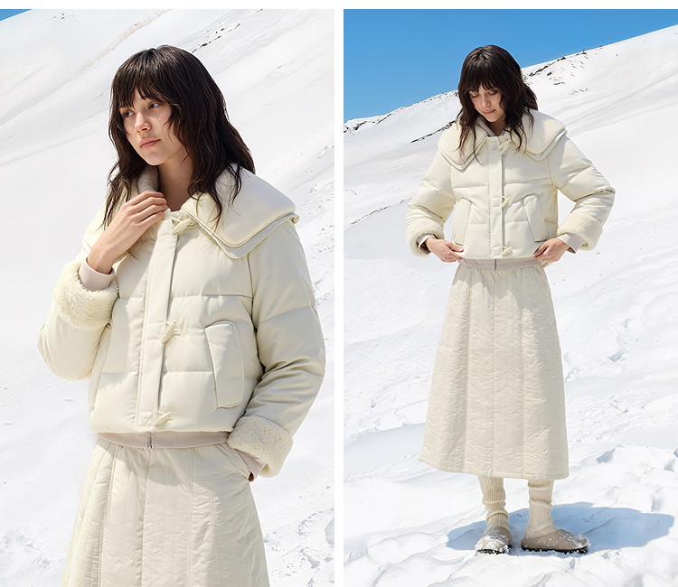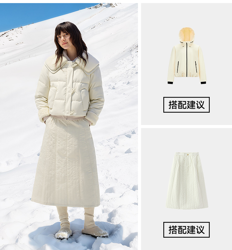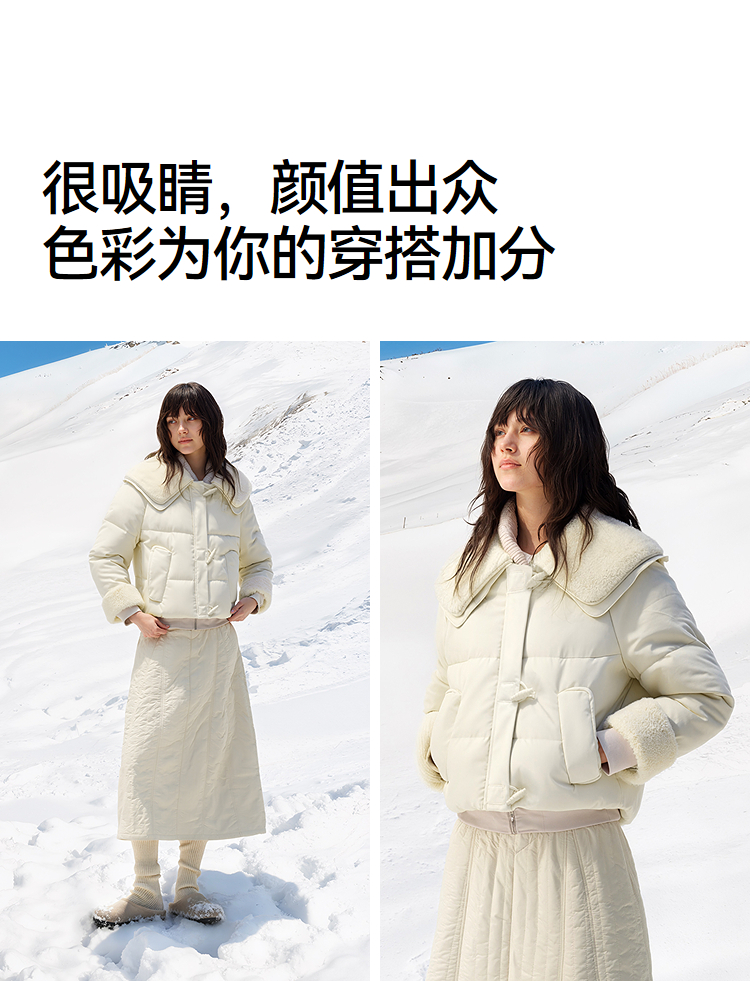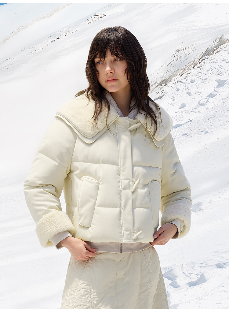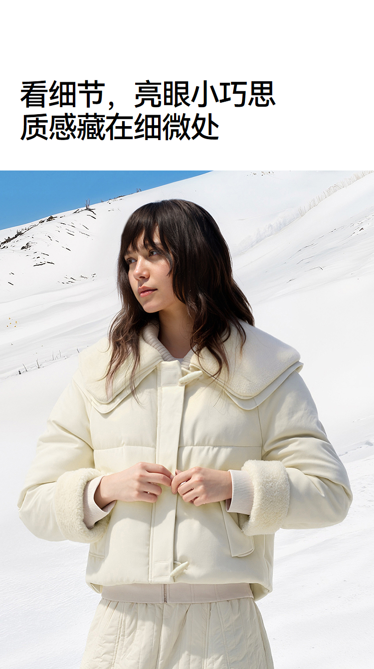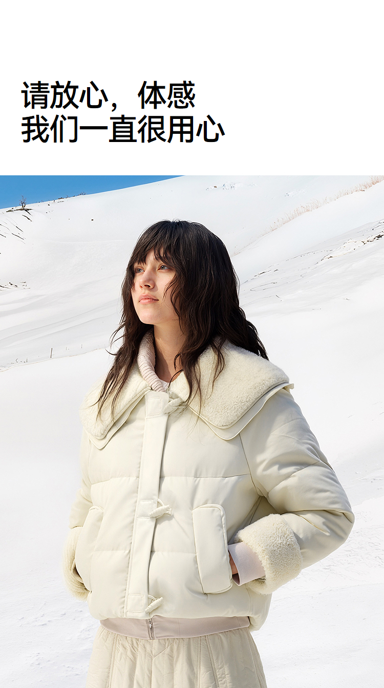 森马羽绒服女冬季拼接毛领大翻领80绒子宽松2025新款温柔甜美上衣