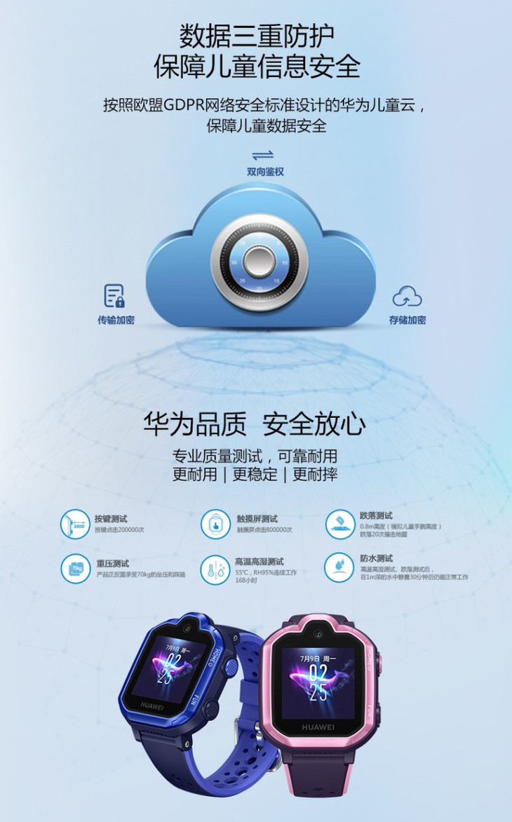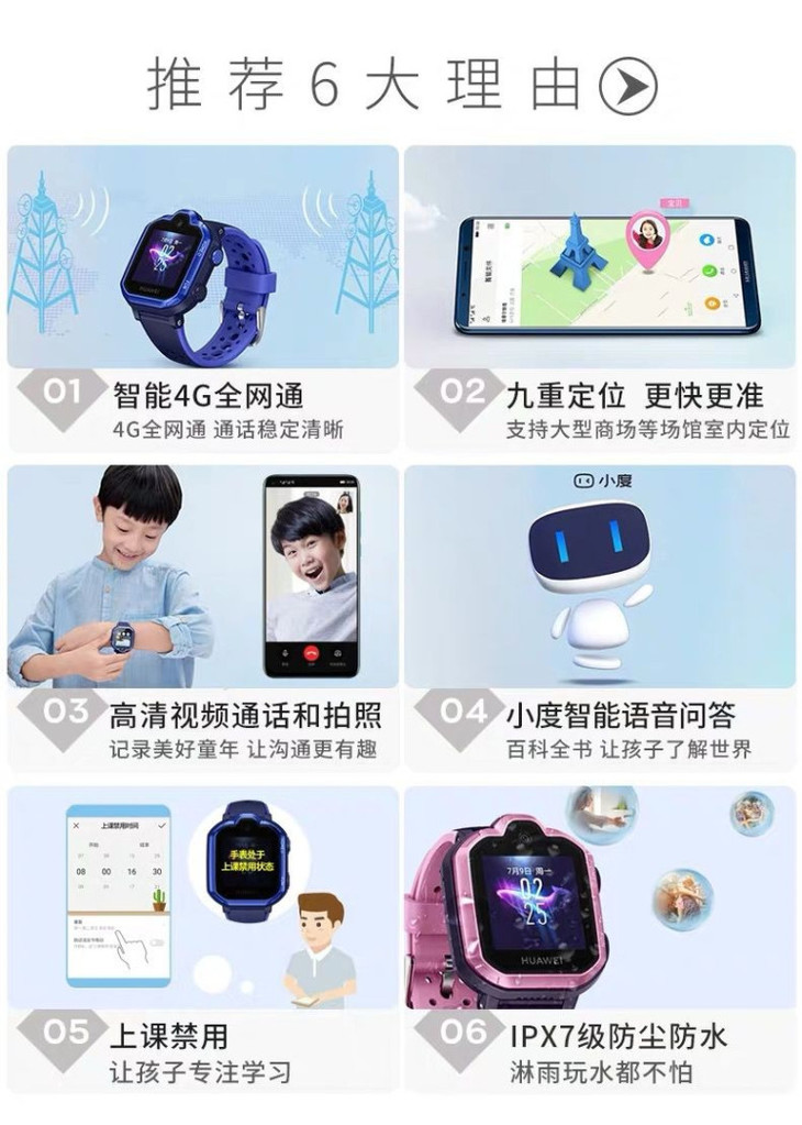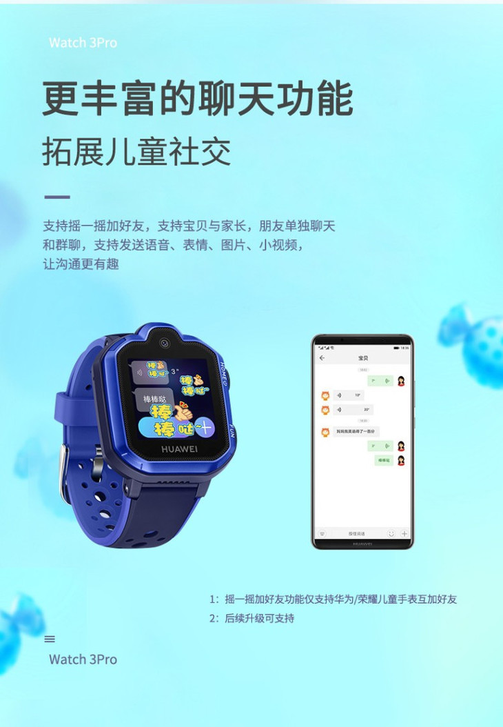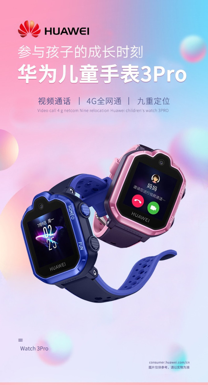 华为手表智能手表 儿童电话手表 3Pro极光蓝(4G全网通 视频通话 九重定位 小度语音助手 学生儿童男孩女孩)