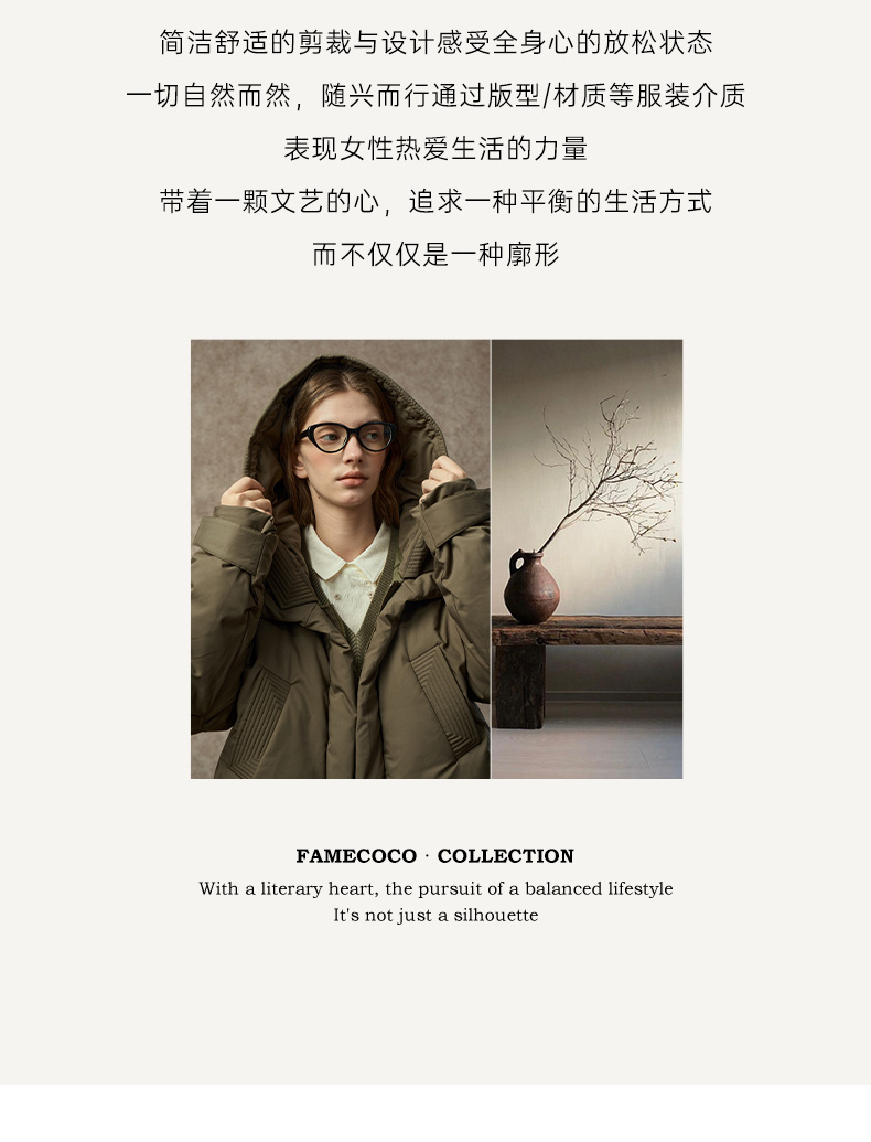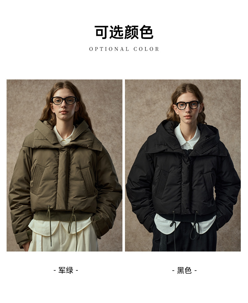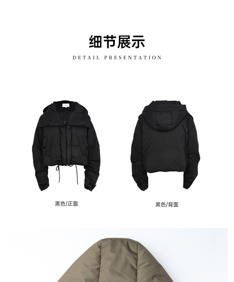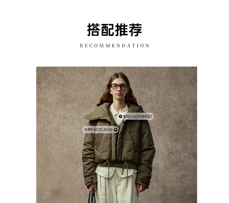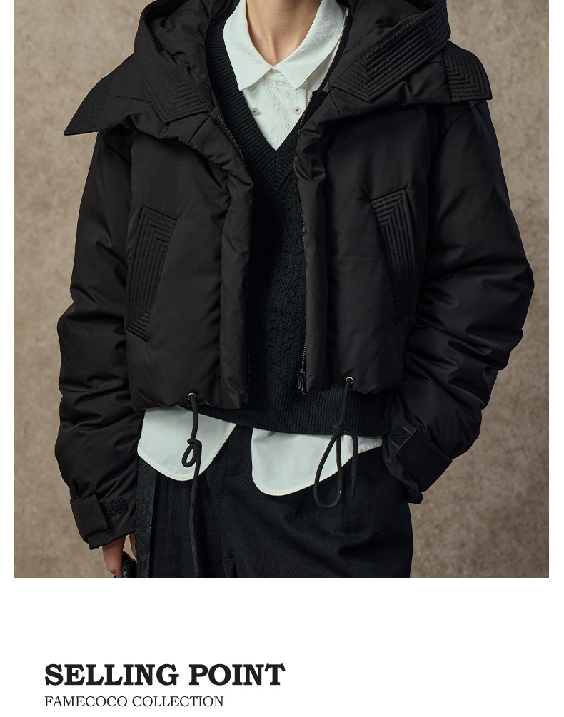 Famecoco范可儿时尚大翻领连帽短款羽绒服简约高级感FAC8AJ003