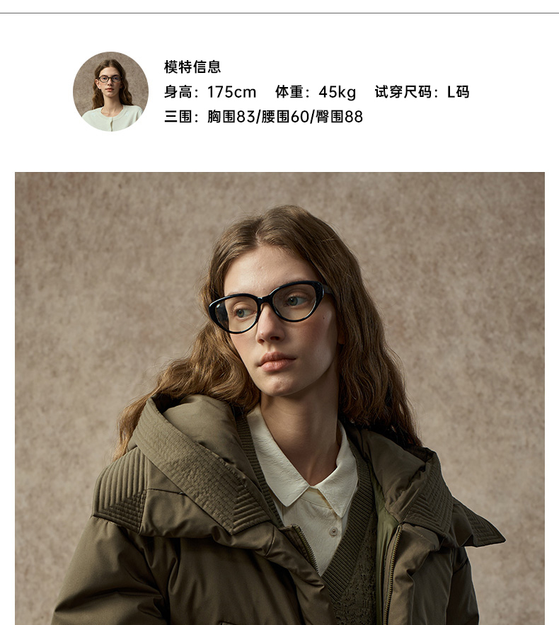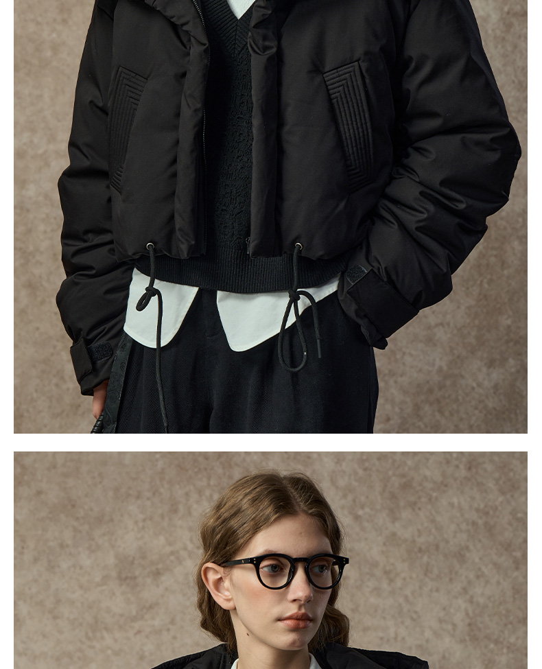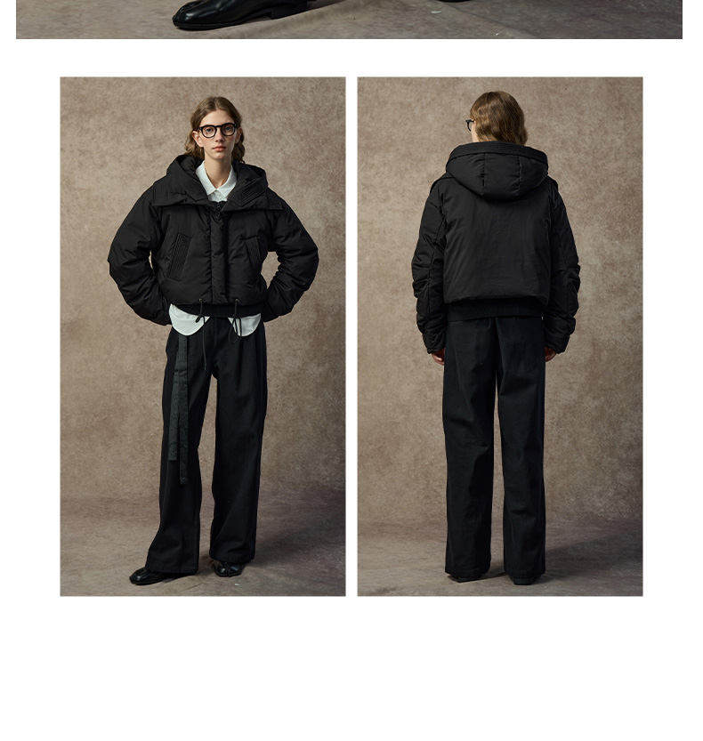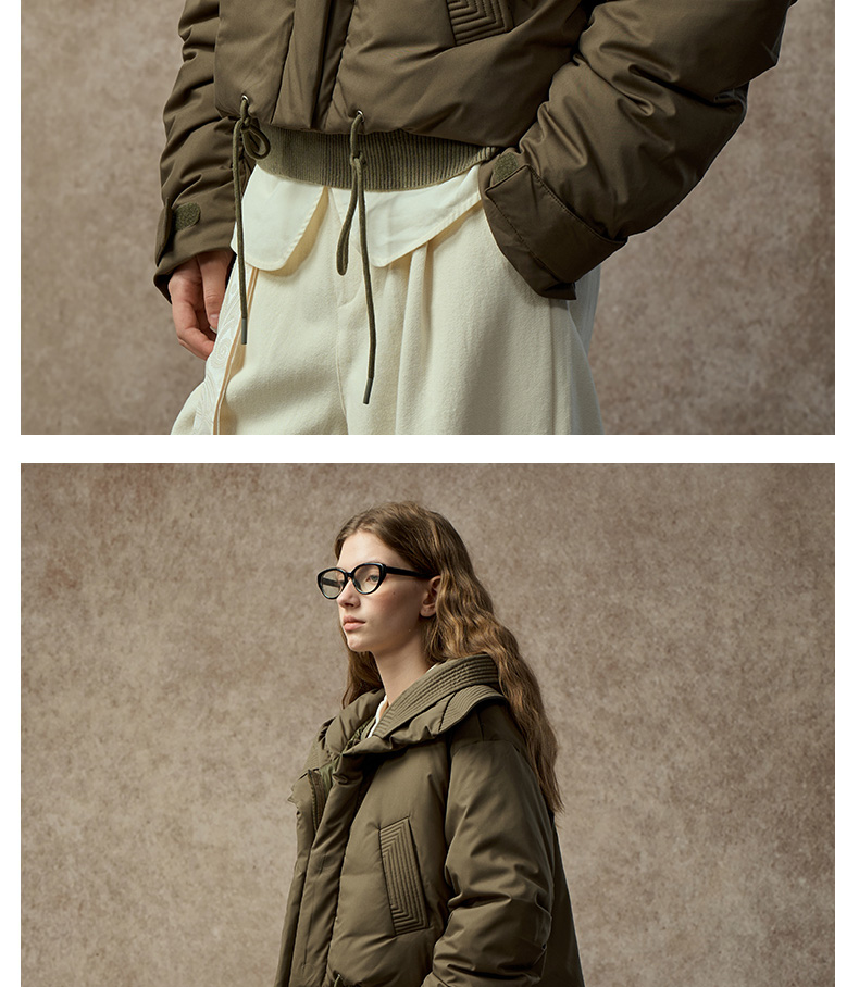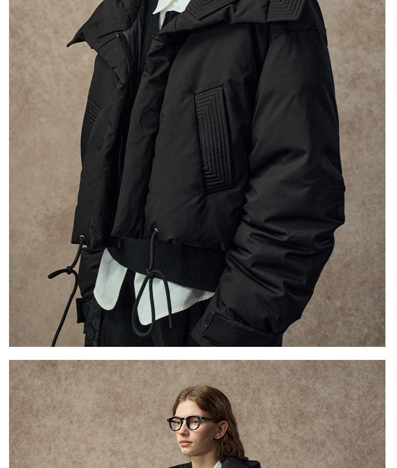 Famecoco范可儿时尚大翻领连帽短款羽绒服简约高级感FAC8AJ003