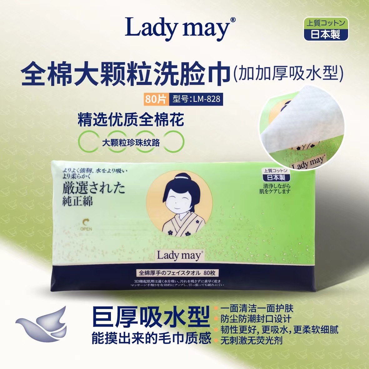 【Lady May全棉大颗粒超厚质感型洗脸巾3包装(80抽/包)