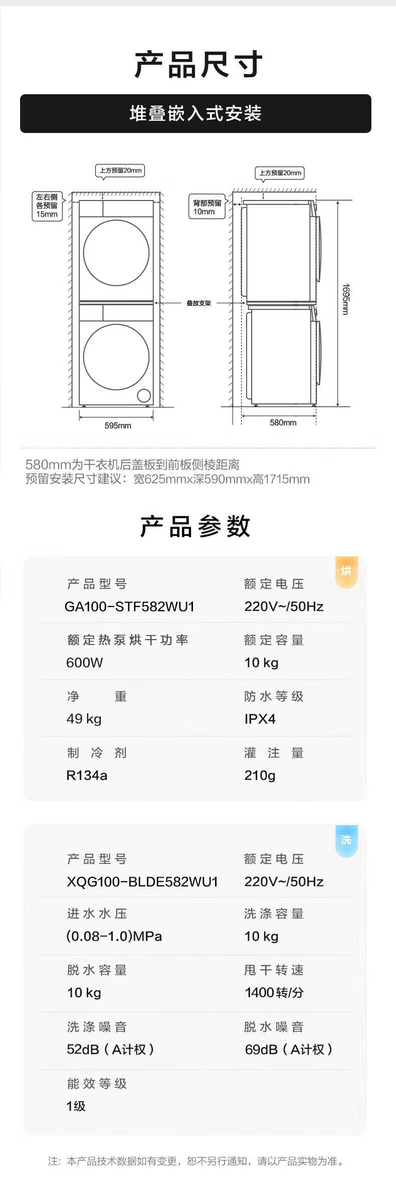 海尔(Haier)洗烘套装 XQG100-BLDE582WU1+GA100-STF582WU1