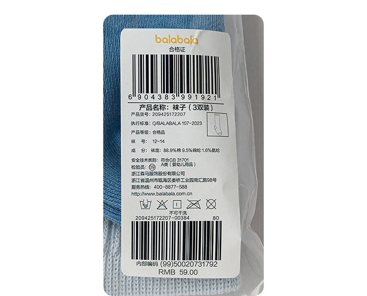 巴拉巴拉balaOne宝宝袜子冬保暖袜婴幼儿长袜子防着凉无骨三双装