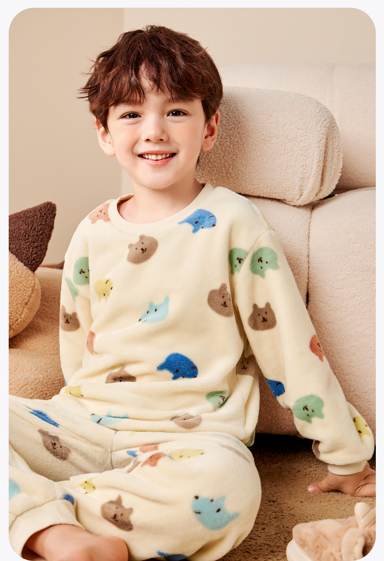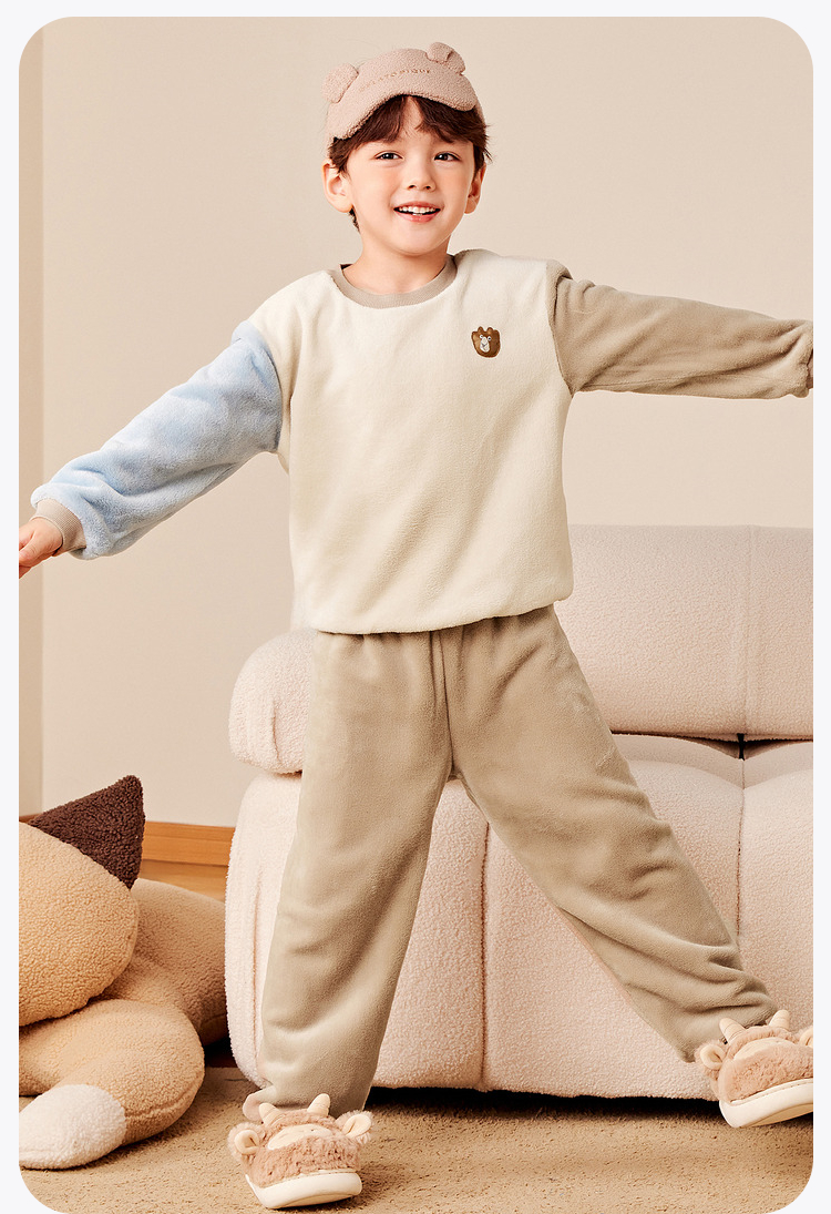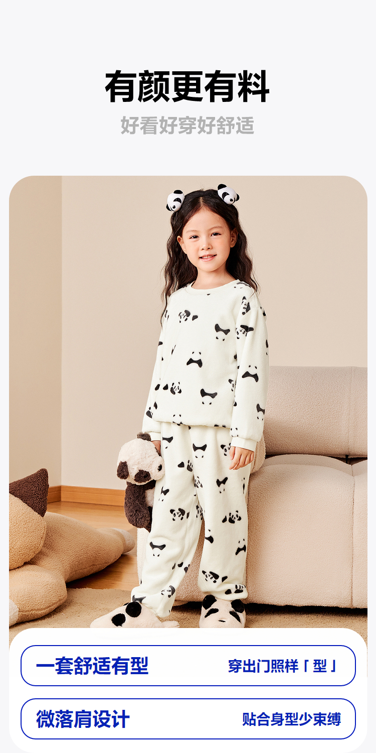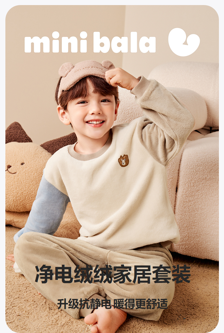 【净电绒】迷你巴拉冬季儿童双面绒家居服宝宝保暖厚款睡衣