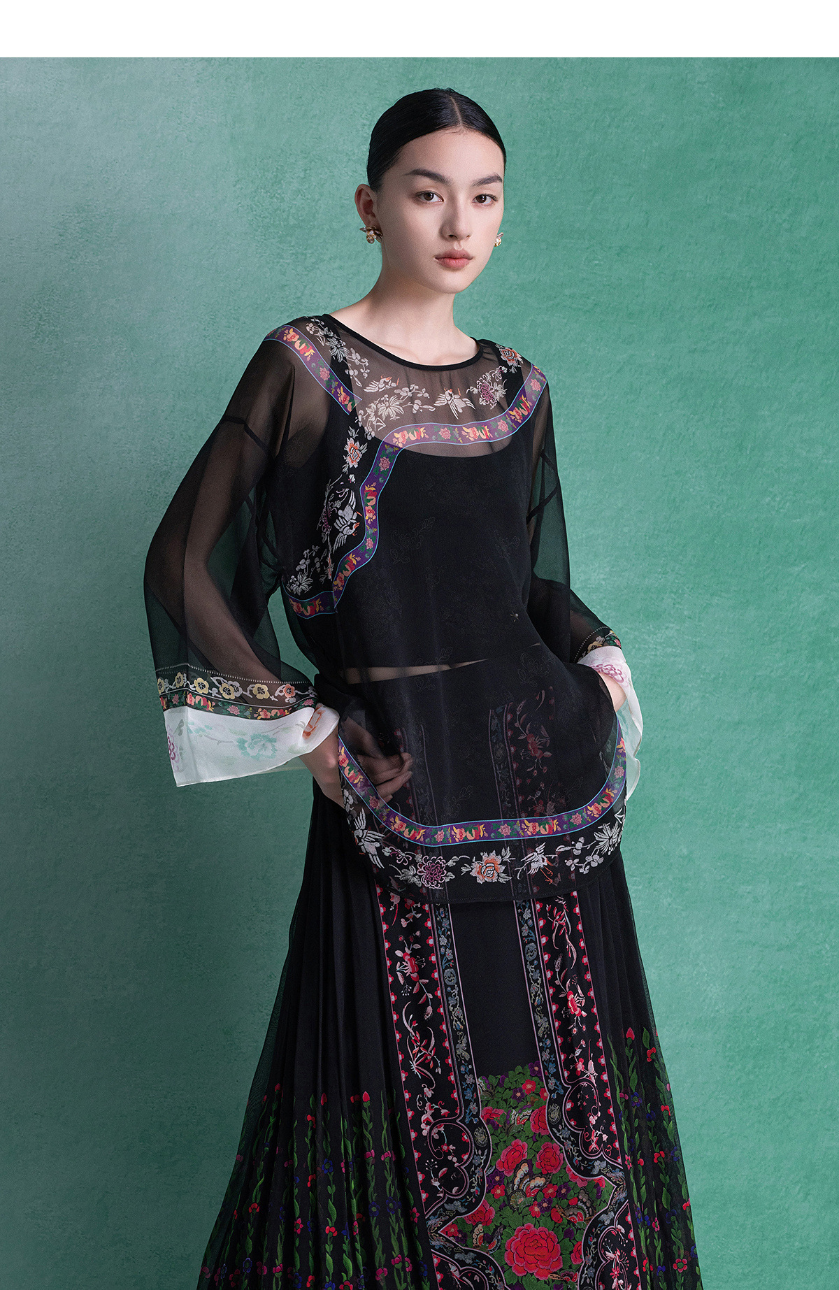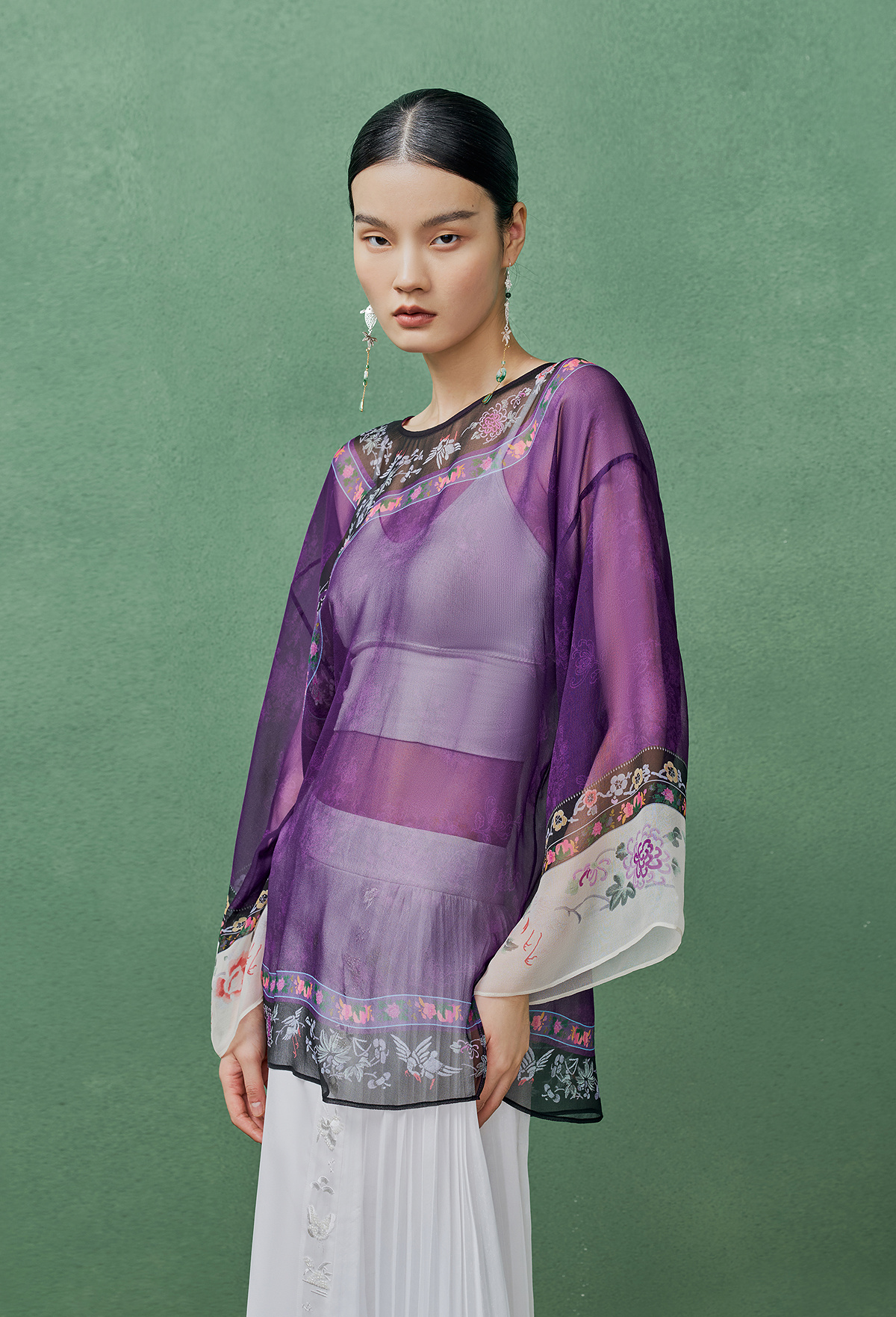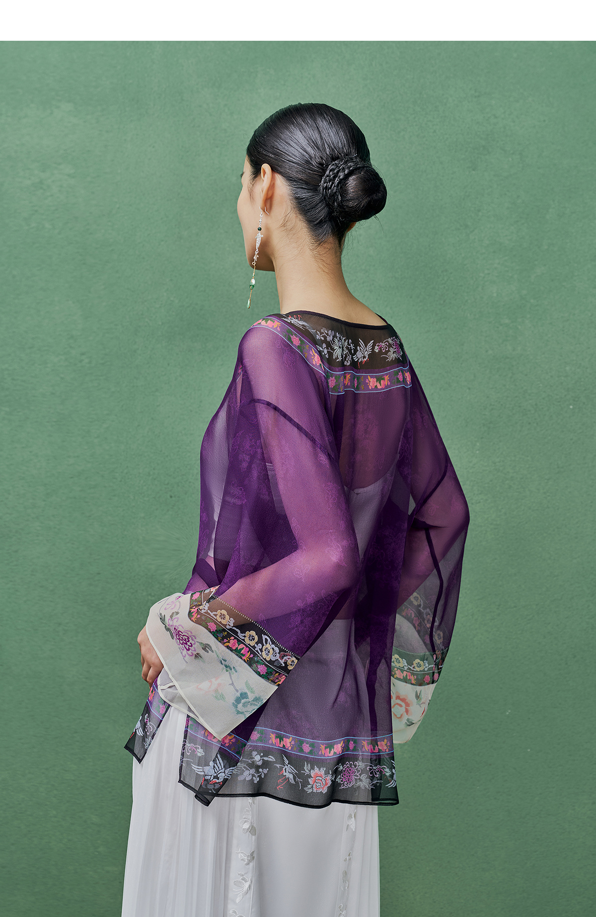 【林栖设计小店】真丝印花衬衣新中式轻凉改良氅衣宽松复古2025夏季新品上衣女1952147
