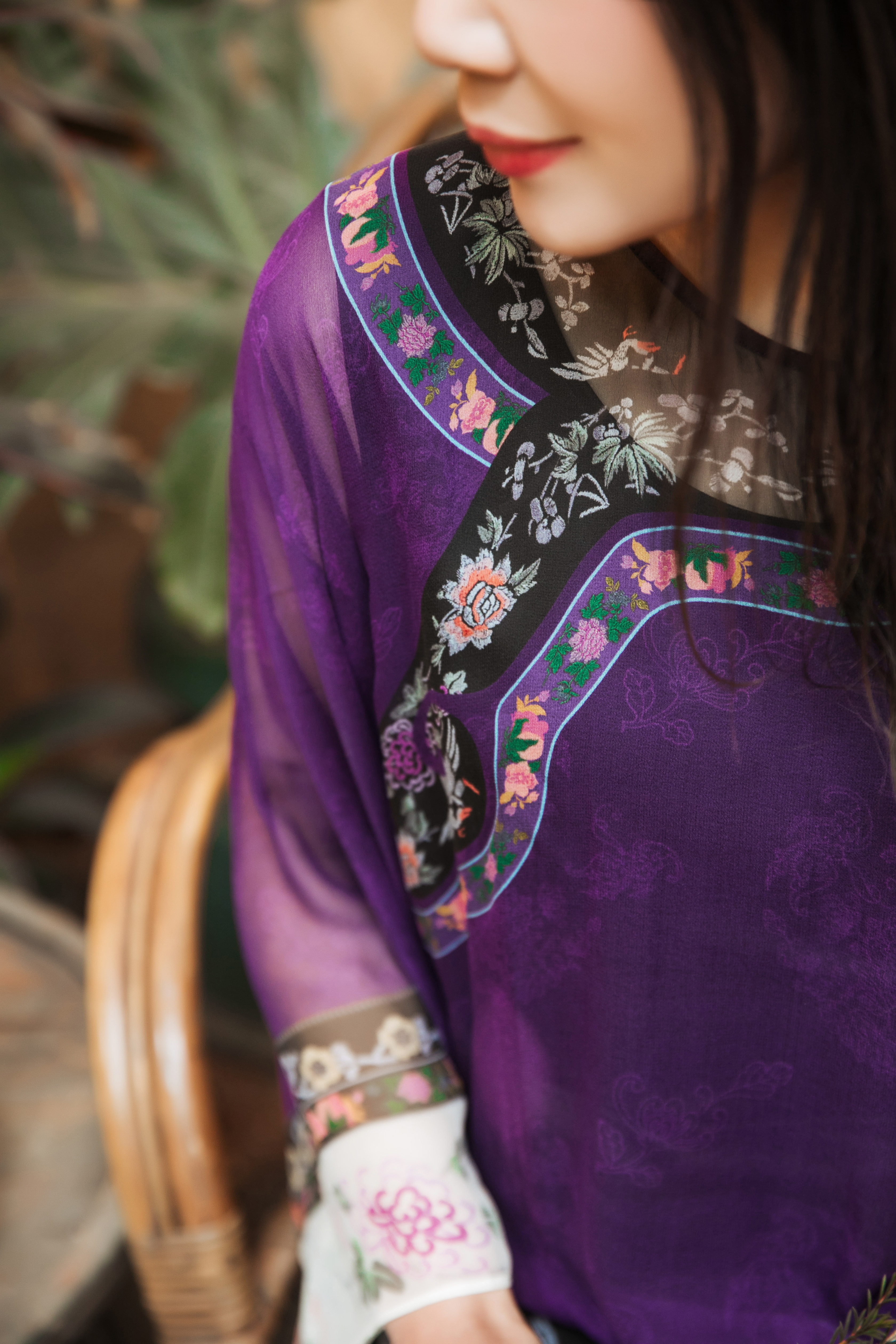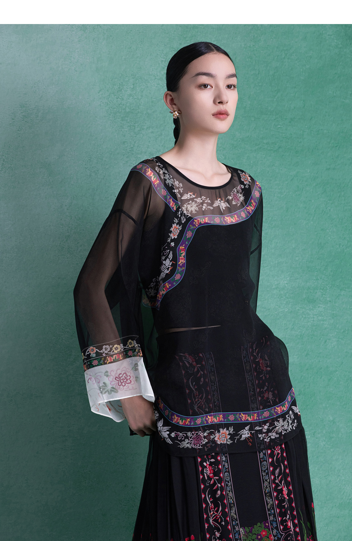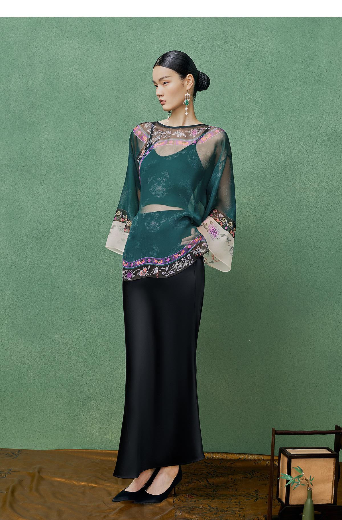 【林栖设计小店】真丝印花衬衣新中式轻凉改良氅衣宽松复古2025夏季新品上衣女1952147