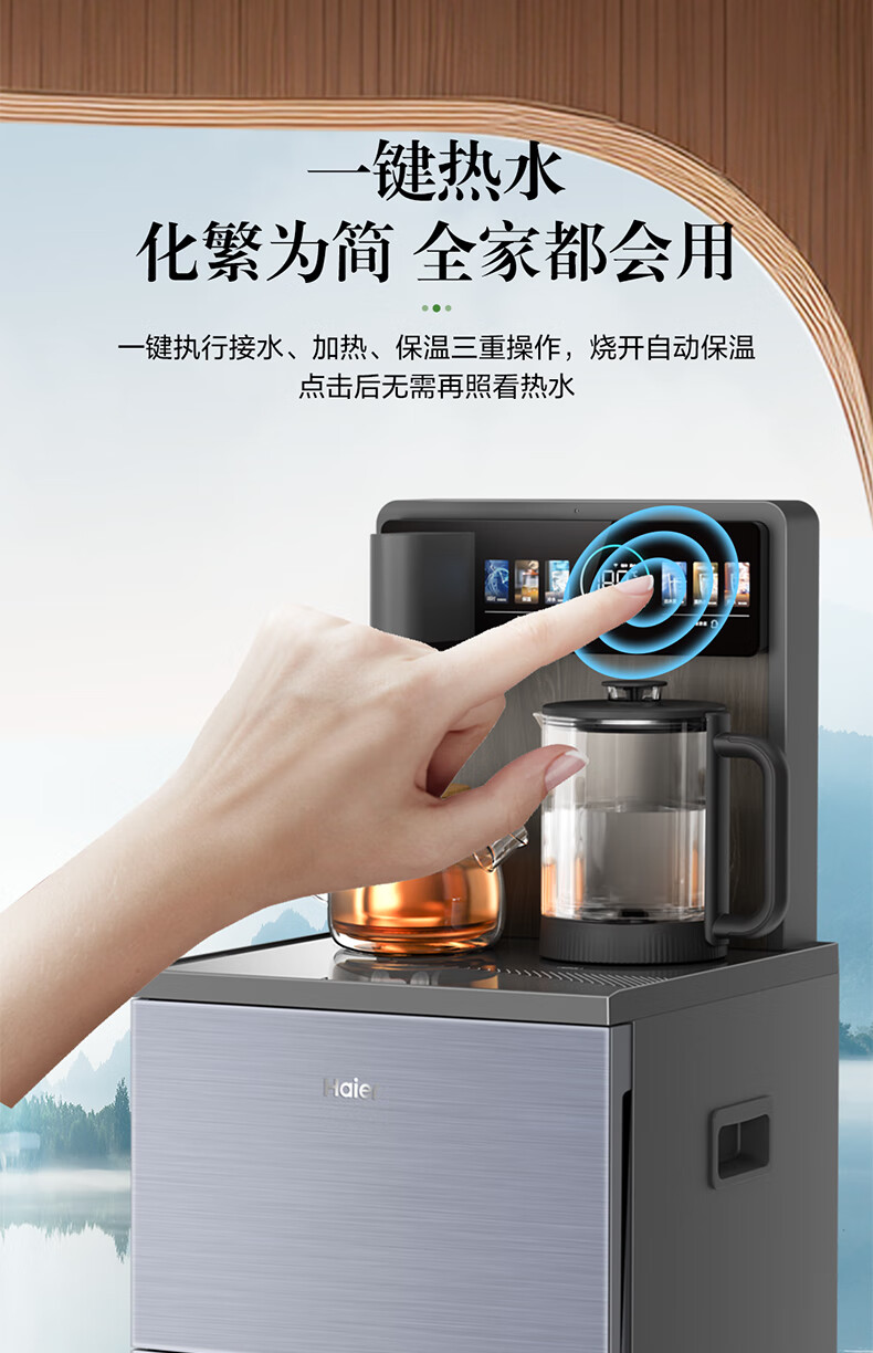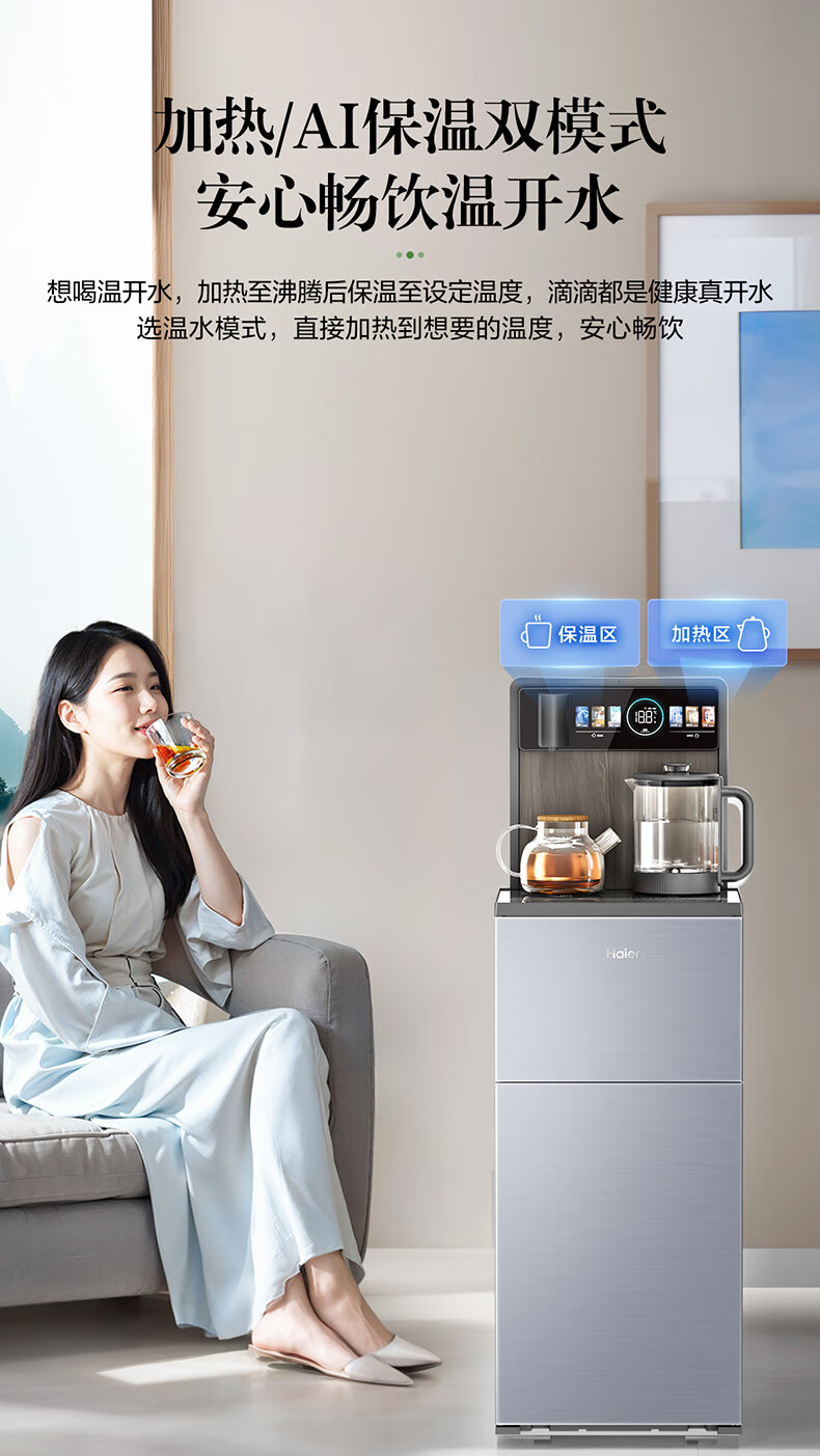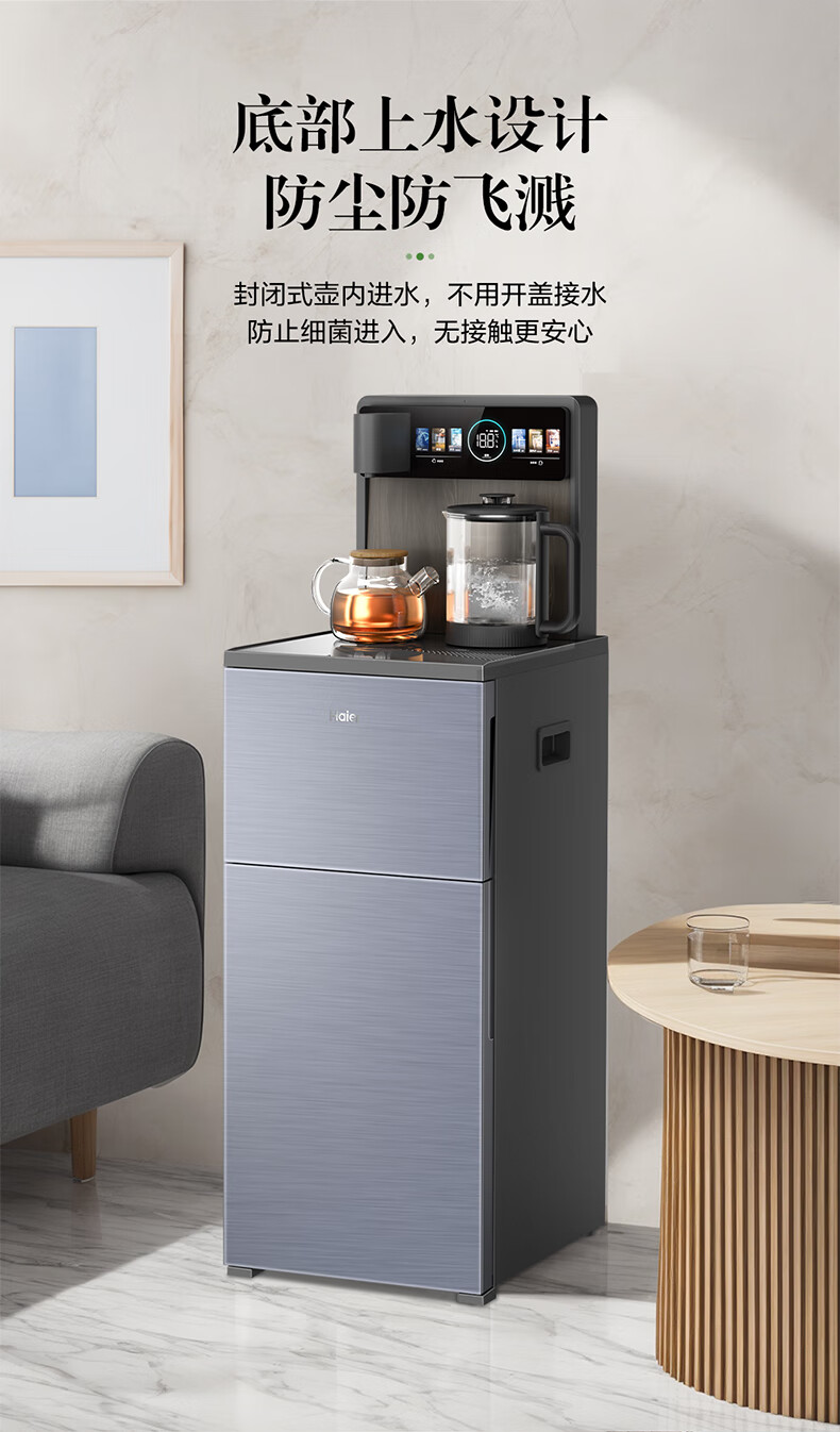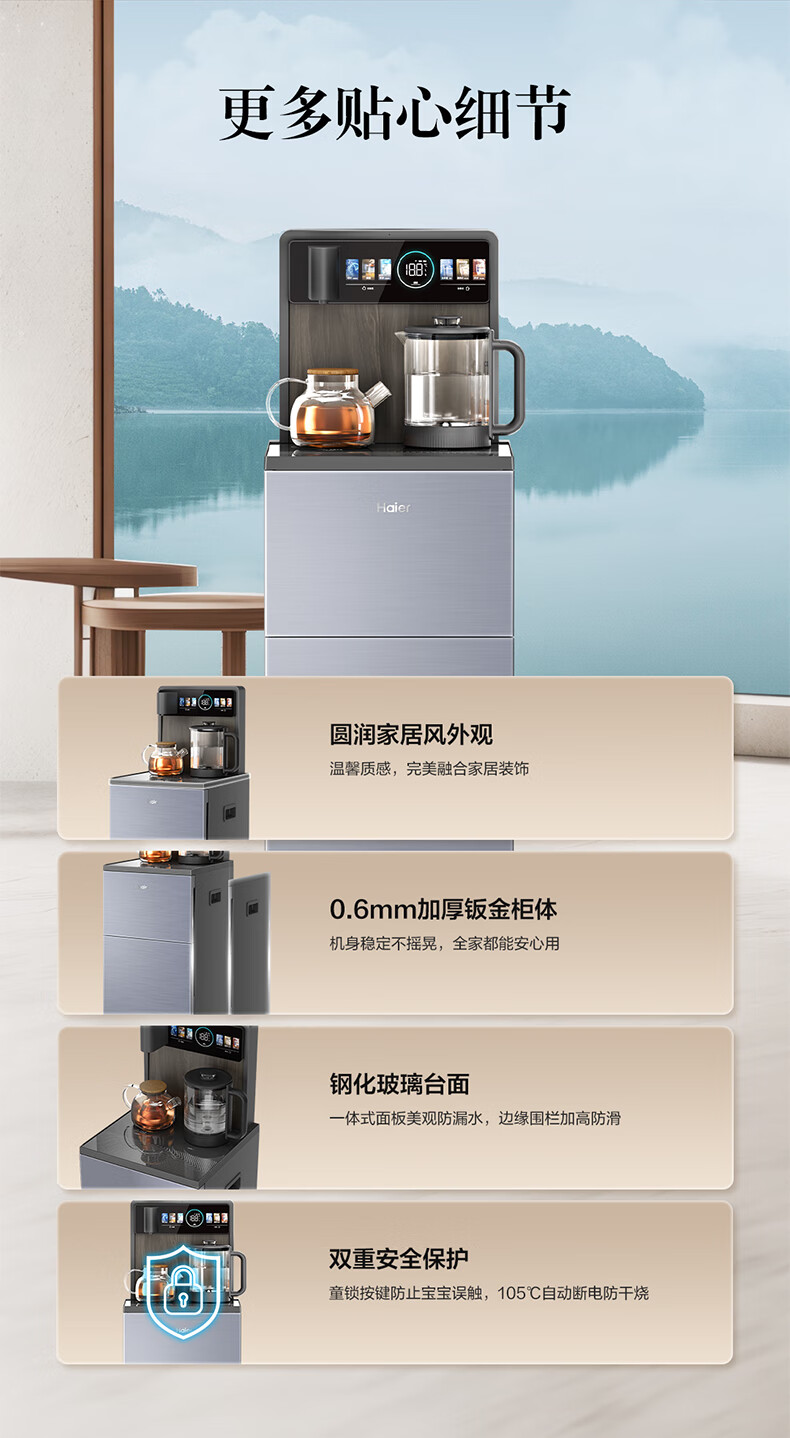 海尔(Haier)茗饮茶吧机 家用饮水机 底部上水可调温 防干烧彩显触屏双出水 高端冷热款Z63D