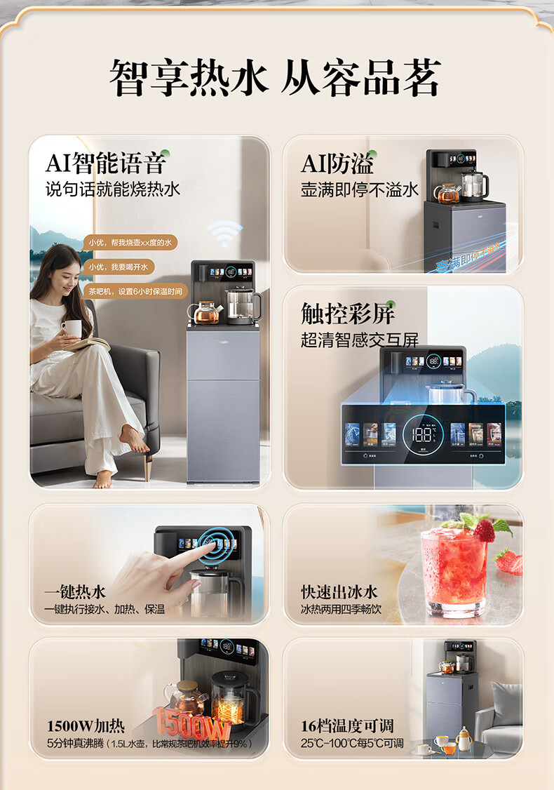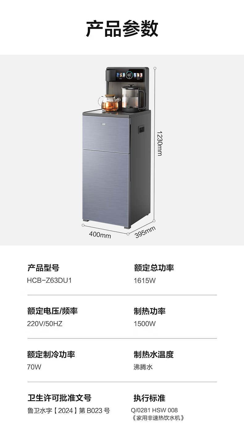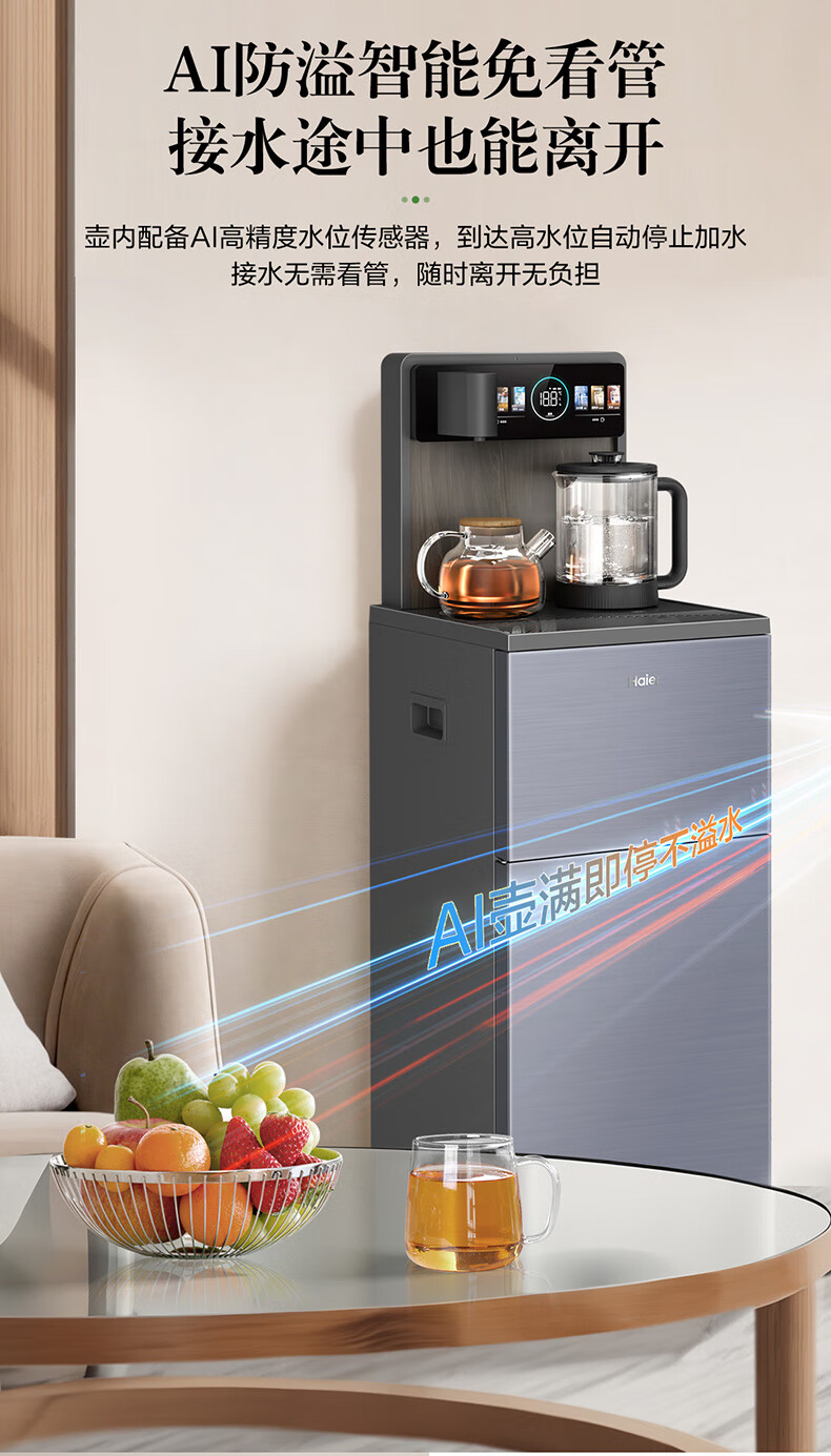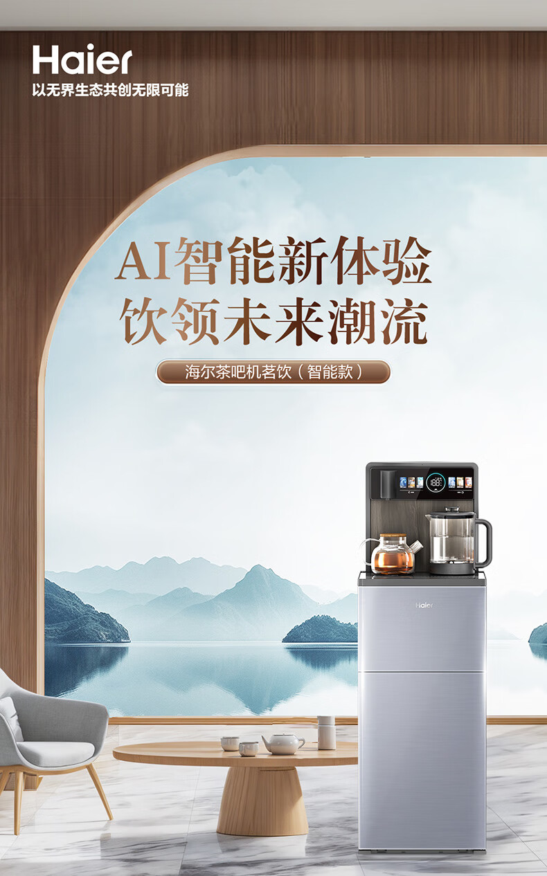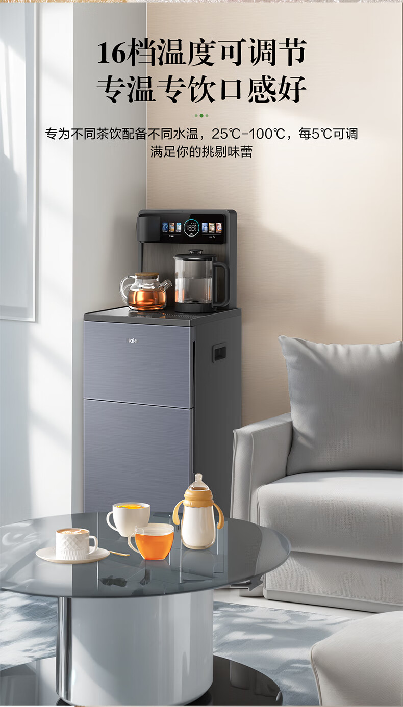 海尔(Haier)茗饮茶吧机 家用饮水机 底部上水可调温 防干烧彩显触屏双出水 高端冷热款Z63D