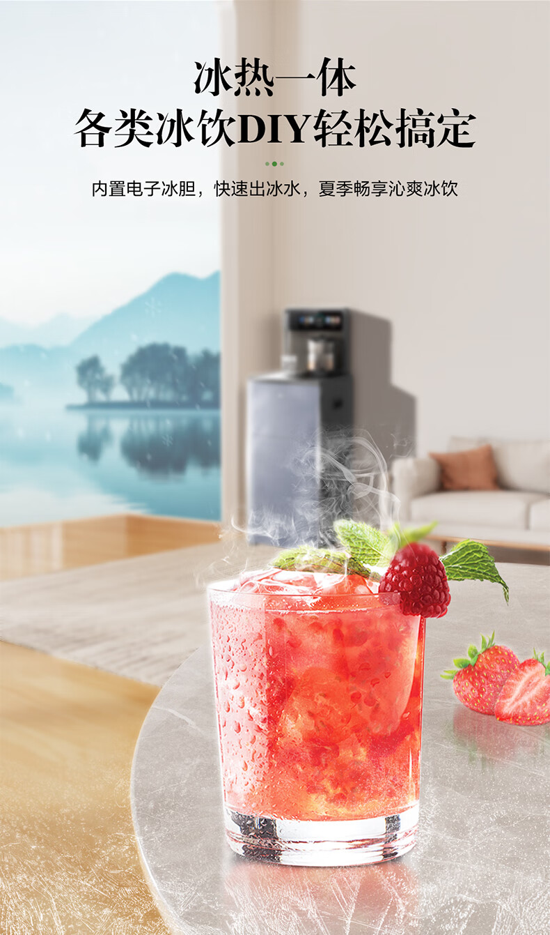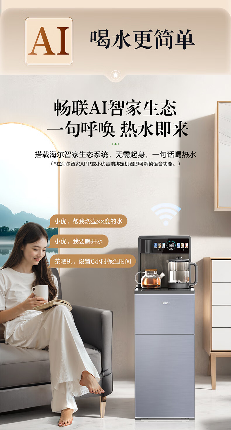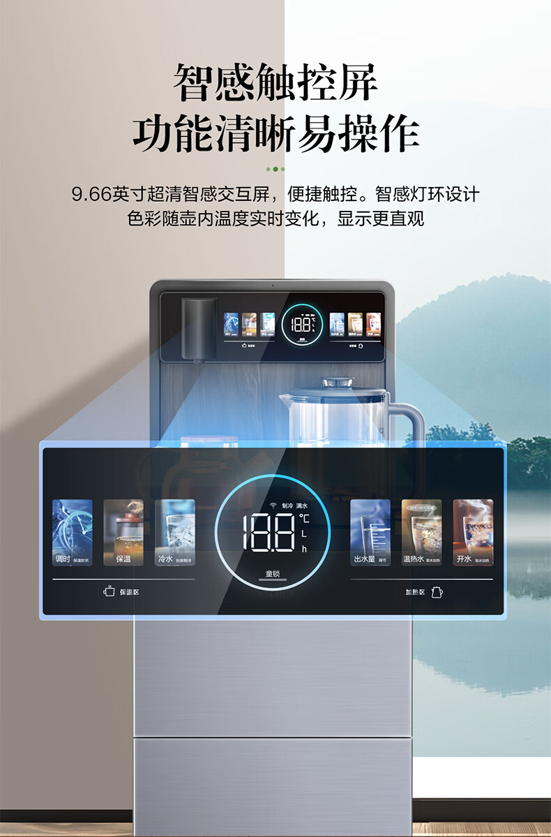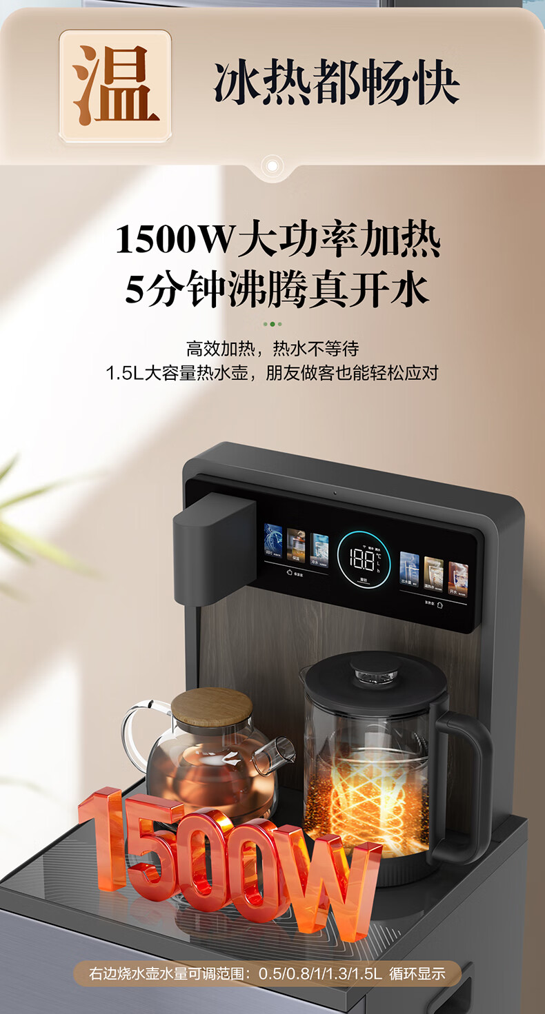 海尔(Haier)茗饮茶吧机 家用饮水机 底部上水可调温 防干烧彩显触屏双出水 高端冷热款Z63D
